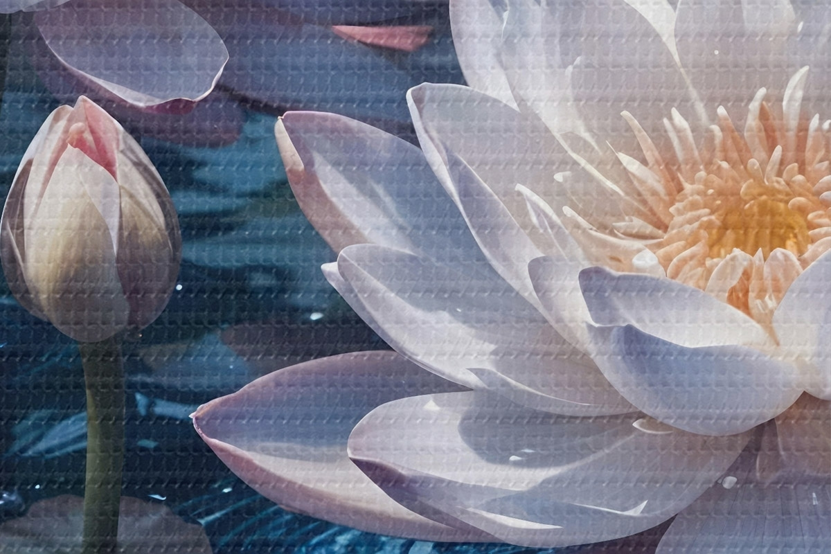 Nuotrauka Balti lotoso žiedai plūduriuoja ramiame tvenkinyje su lelijų pagalvėlėmis Nr r42225