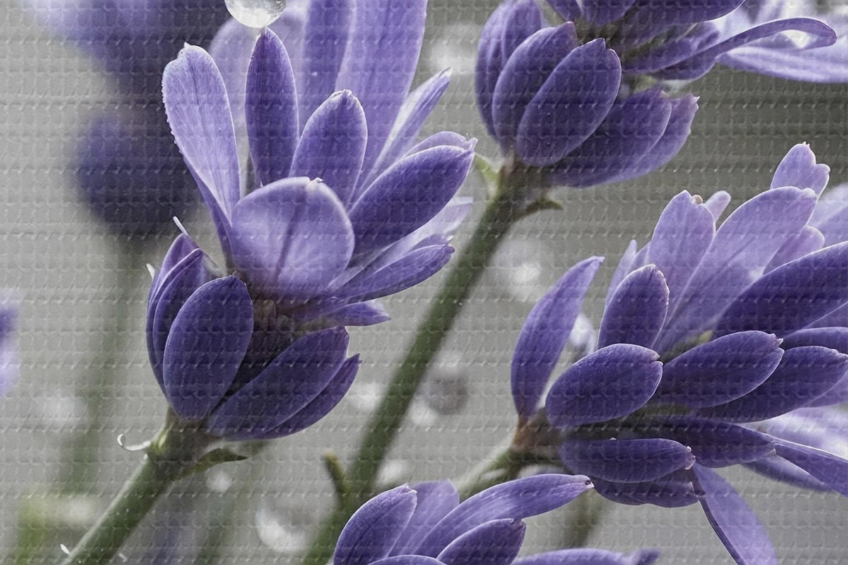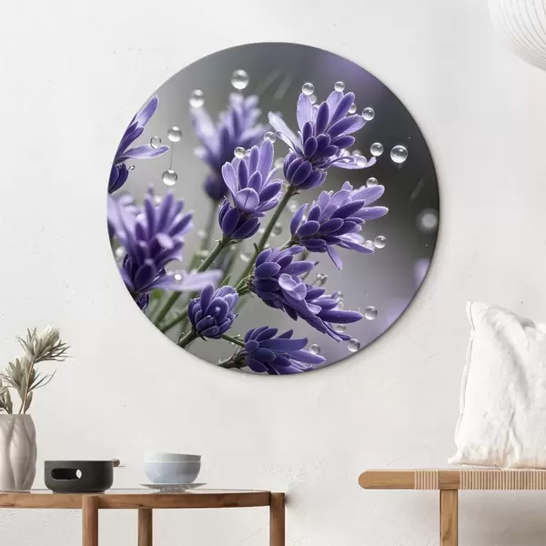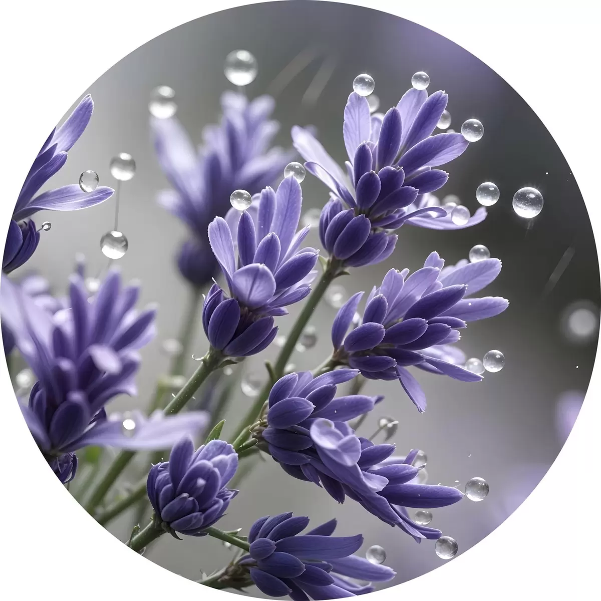 Nuotrauka Violetinės levandų gėlės su vandens lašeliais ant žiedlapių neryškiame fone Nr r42229