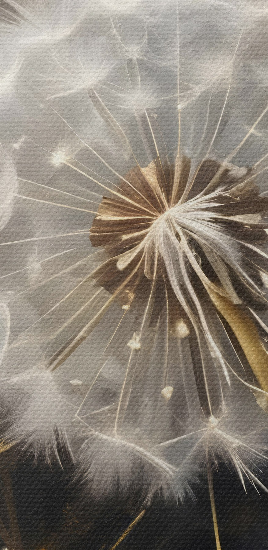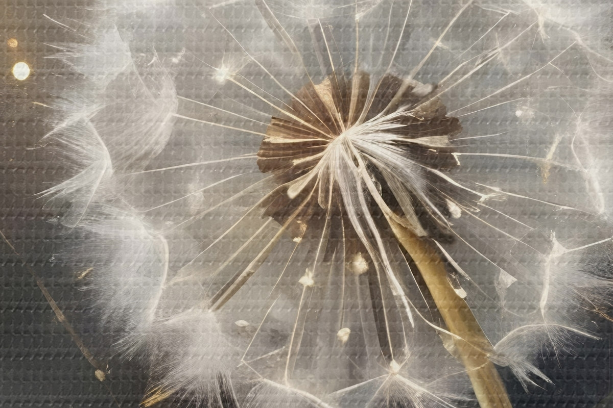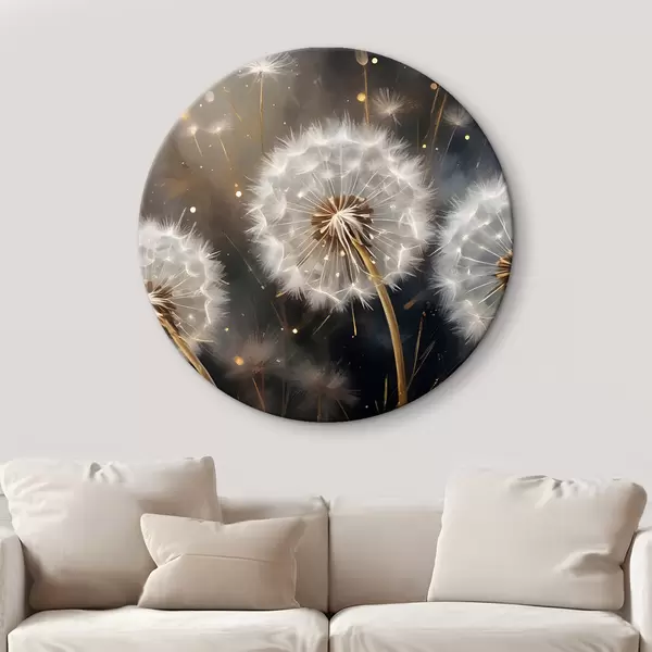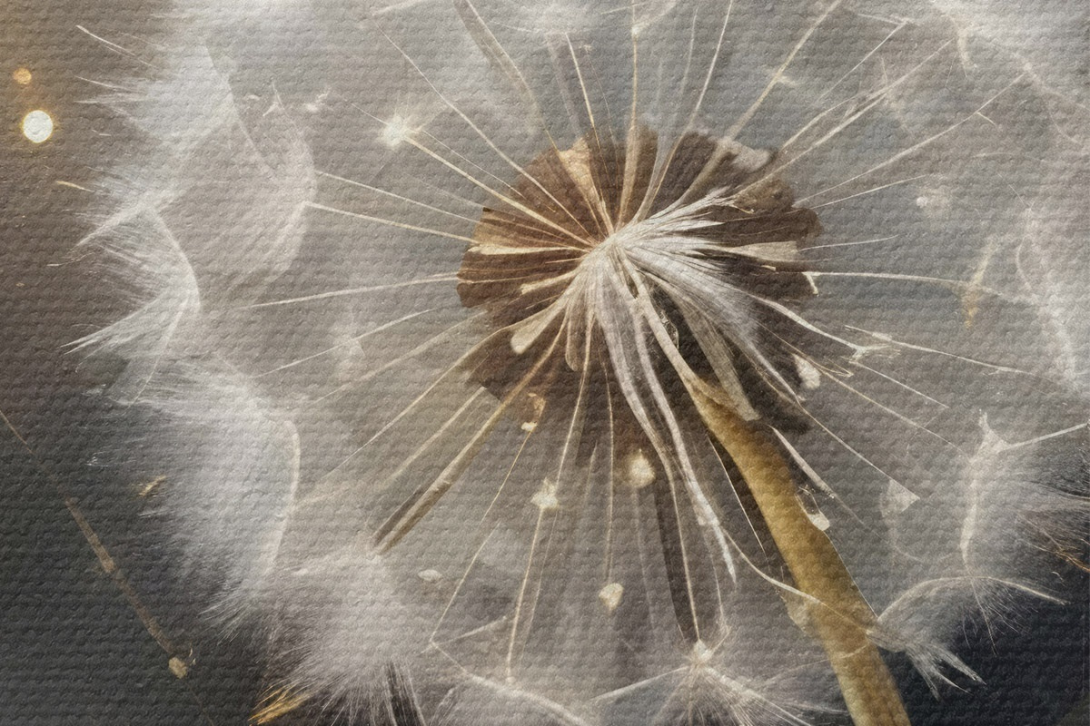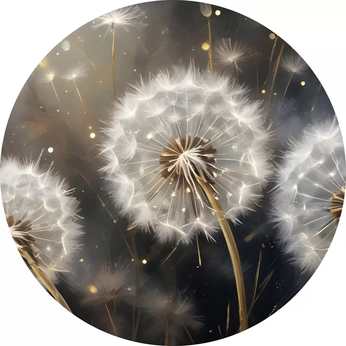 Nuotrauka Kiaulpienių žiedai su puriomis baltomis sėklų galvutėmis tamsiame fone sukuria magišką atmosferą Nr r42235