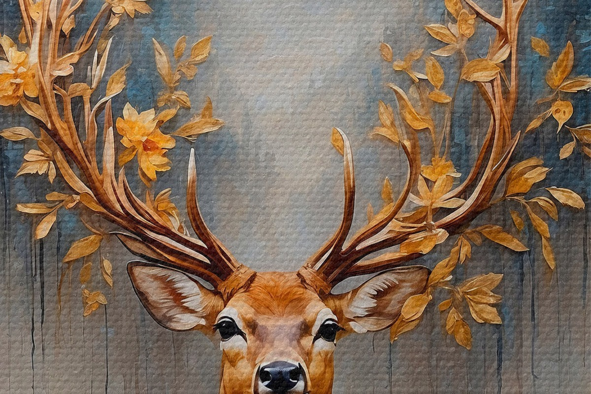 Nuotrauka Elnias su dideliais ragais miško fone Nr r42252