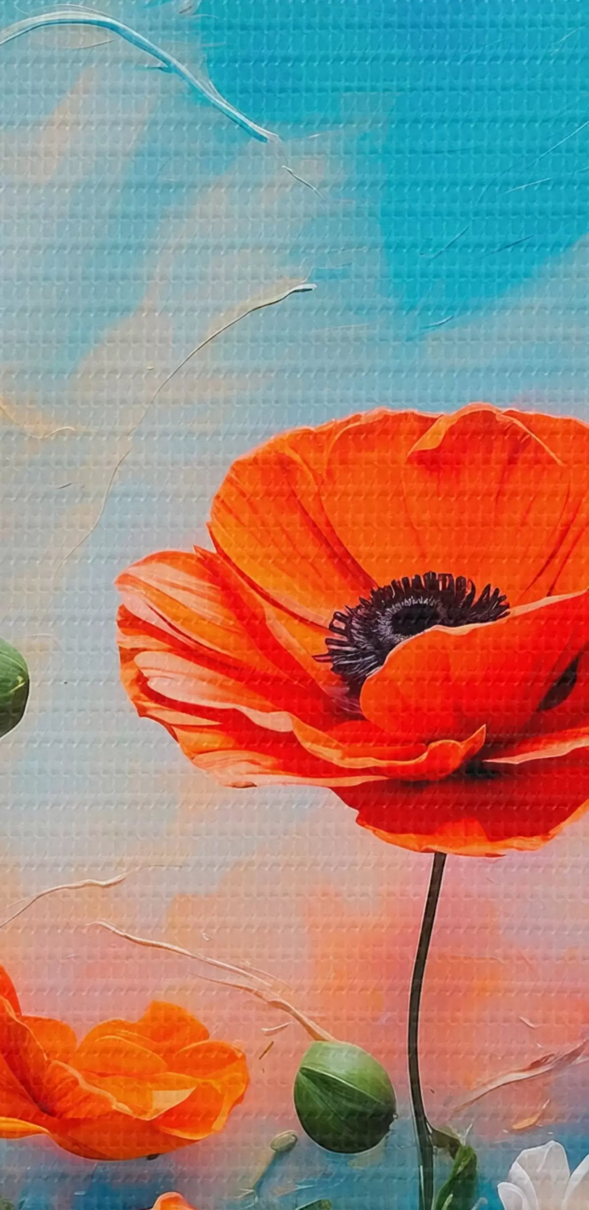 Nuotrauka Margaretės ir aguonos mėlyname fone Nr r42261