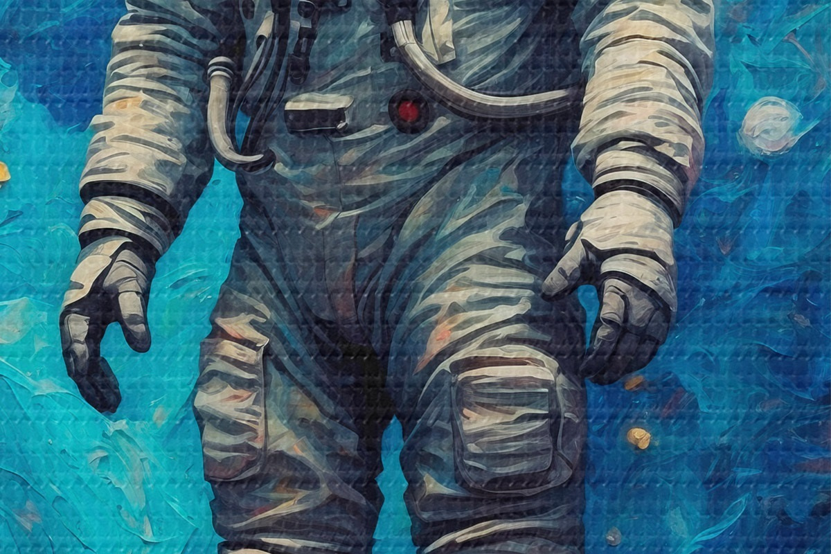 Nuotrauka Astronautas abstrakčiame kosmoso fone aliejinės tapybos stiliumi Nr r42265