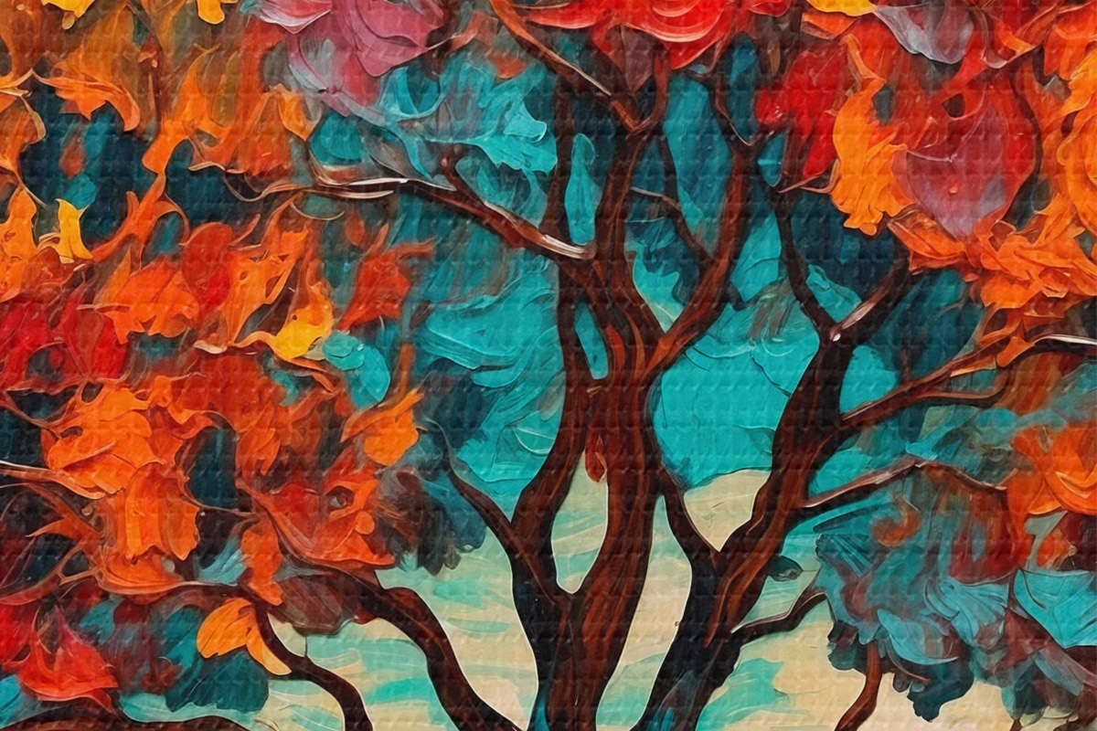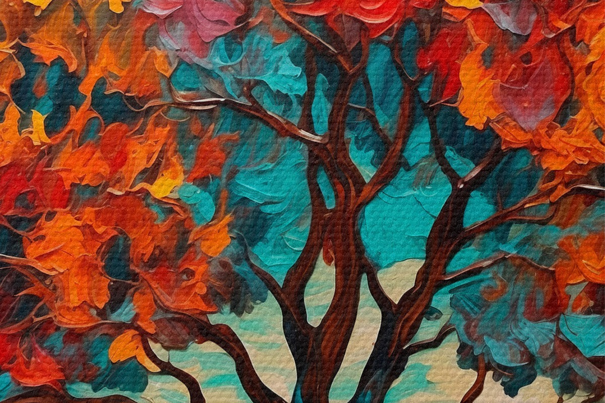 Nuotrauka Medis oranžinės ir mėlynos spalvos fone aliejinės tapybos stiliumi Nr r42267