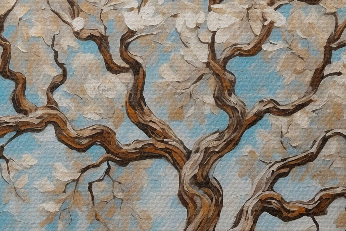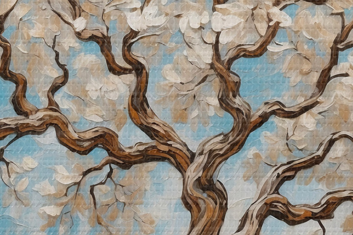 Nuotrauka Baltas medis mėlyname-baltame fone Nr r42275