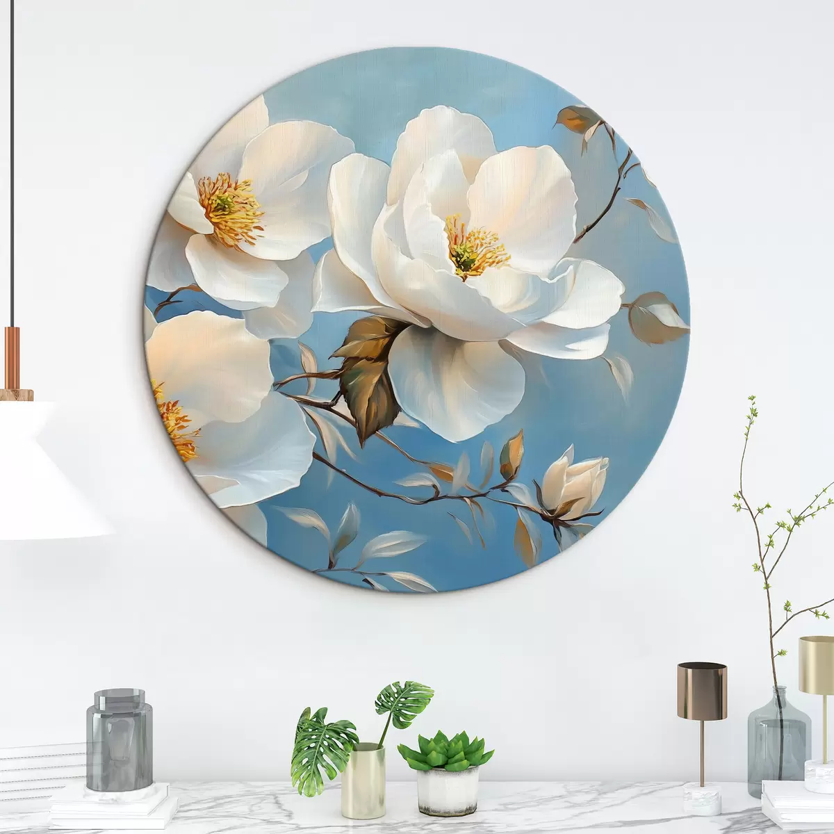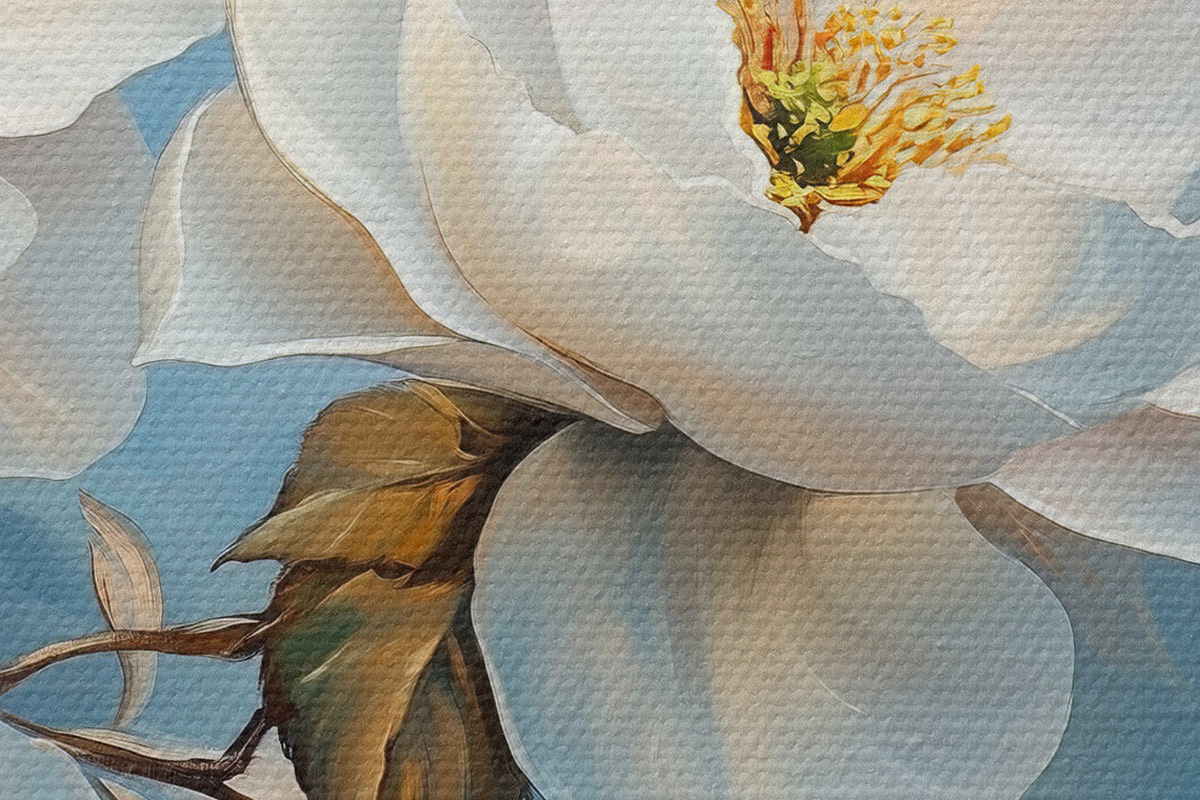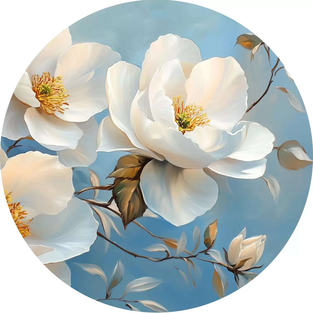 Nuotrauka Didelės baltos gėlės mėlyname fone Nr r42321