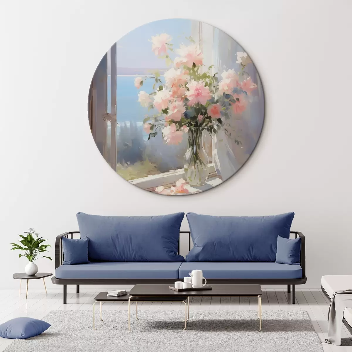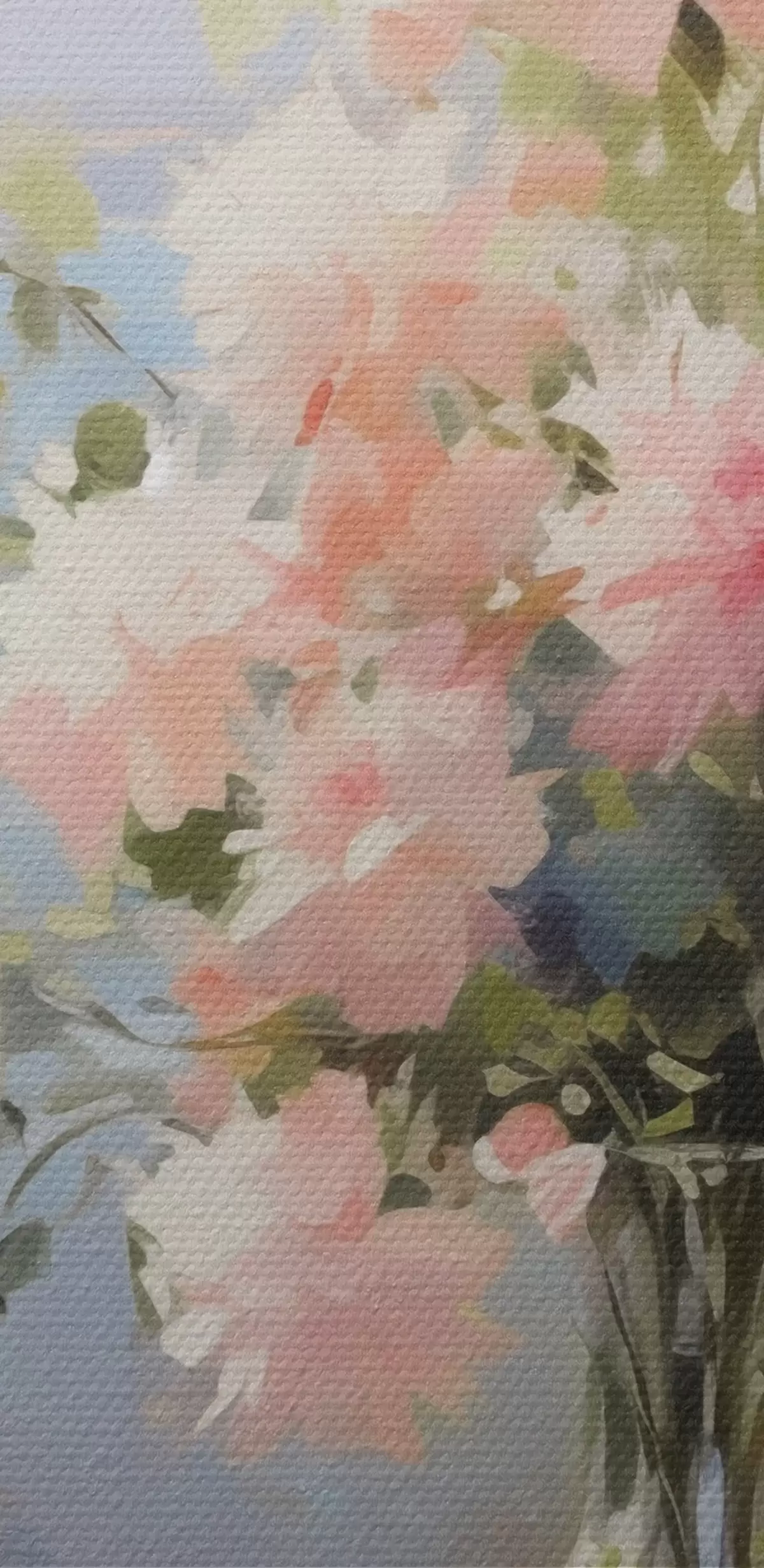 Nuotrauka Švelnių gėlių puokštė stiklinėje vazoje, imituojanti paveikslą Nr r42352