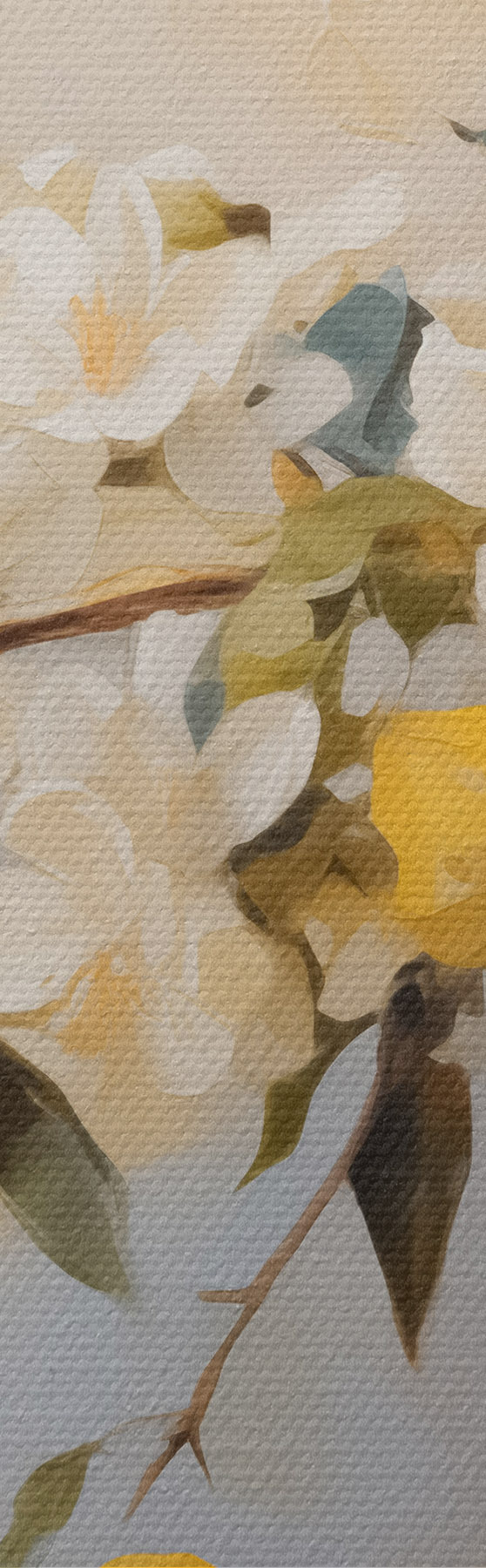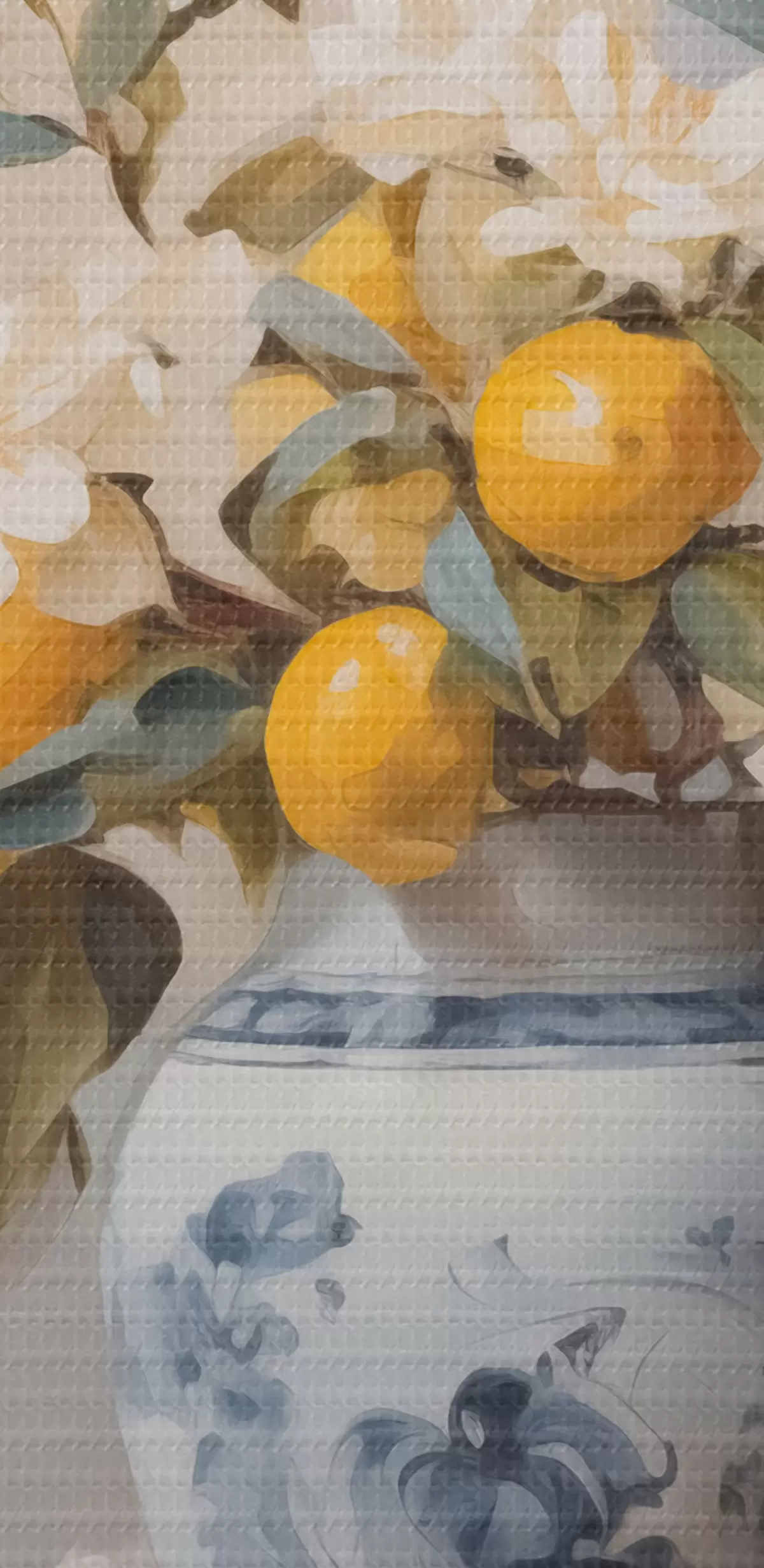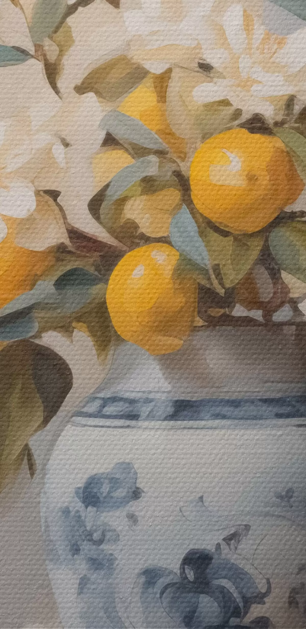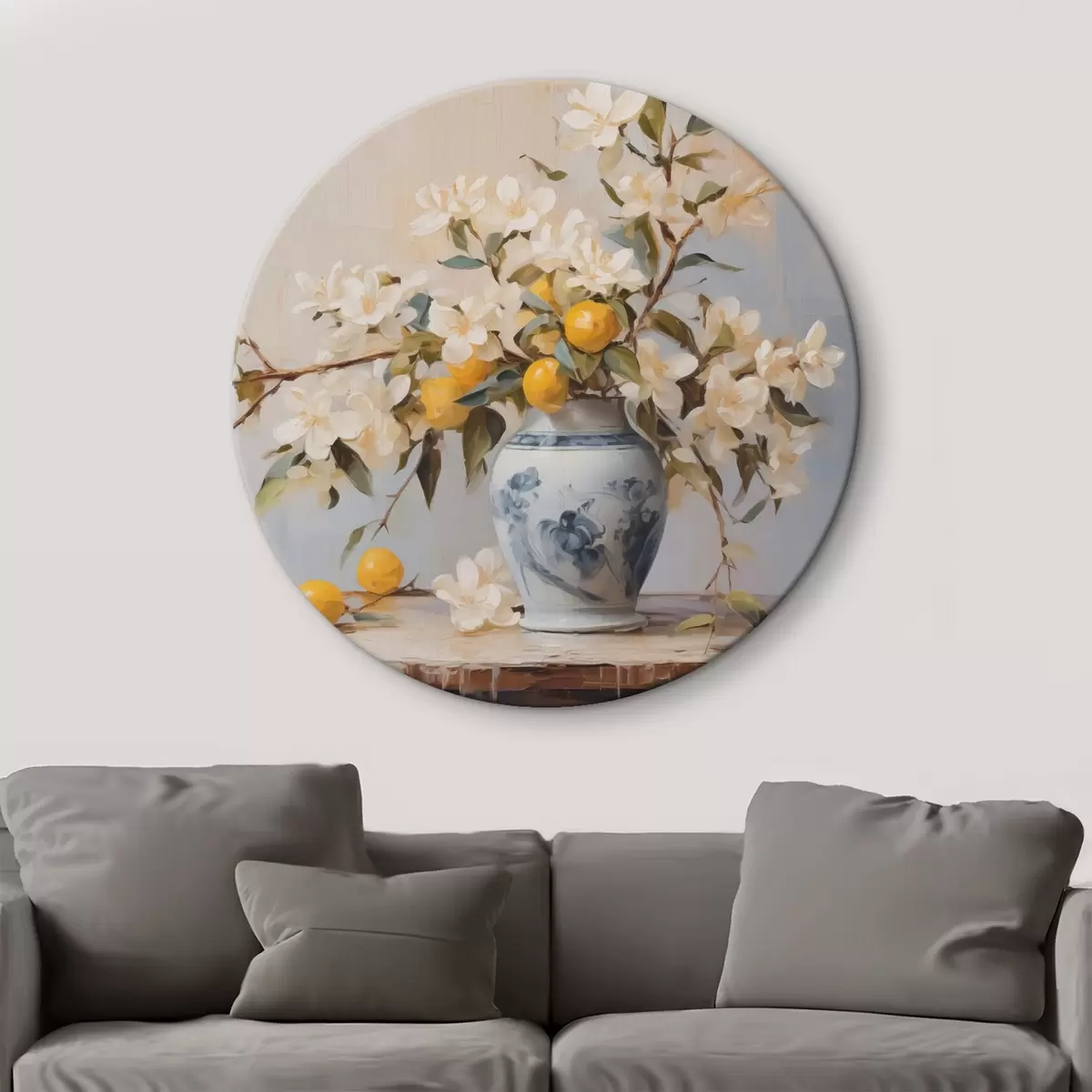 Nuotrauka Vaza su baltų gėlių šakelėmis ir citrinos imitacijos paveikslu Nr r42360
