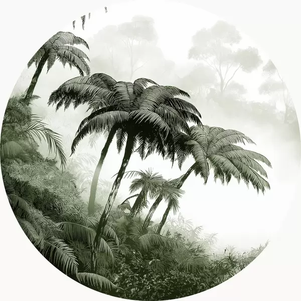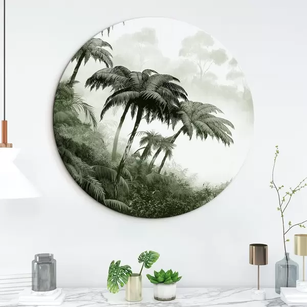 Apvalūs paveikslai Džiunglių miškas rūke, palmės, gamta, žalios spalvos r42372v1