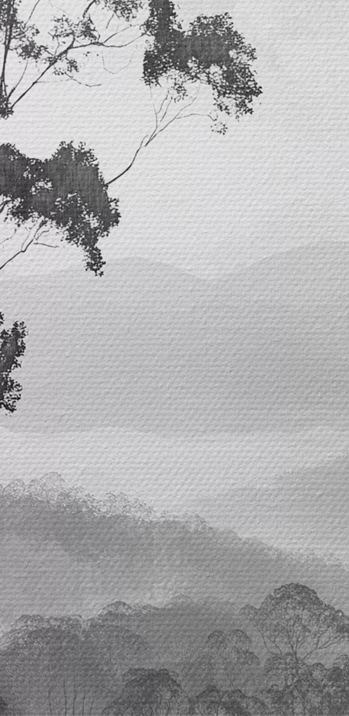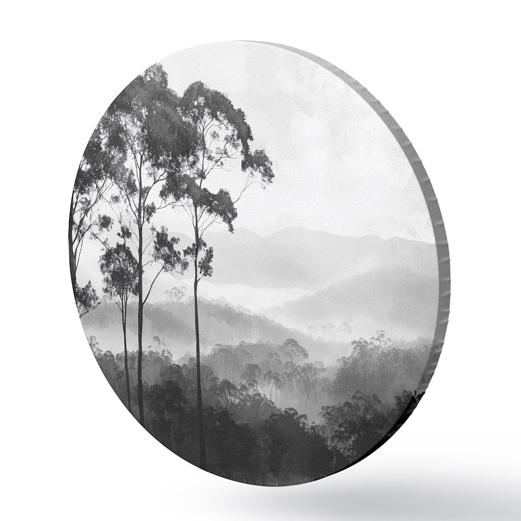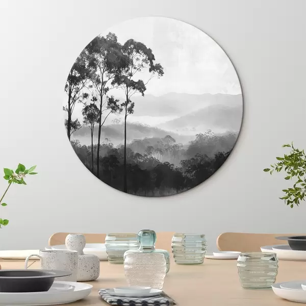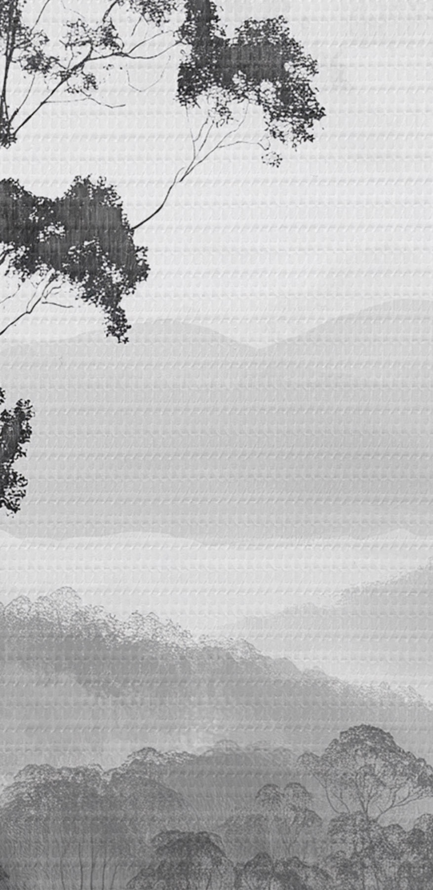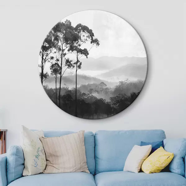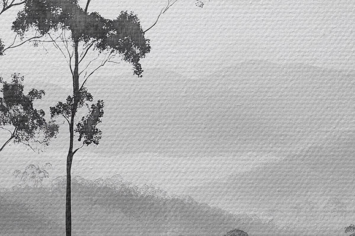 Nuotrauka Mistinis miškas pilkuose tonuose, gamtos peizažas, medžiai Nr r42373