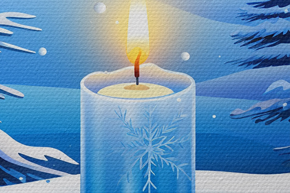 Nuotrauka Žvakė žiemos snieguoto miško fone Nr r42383