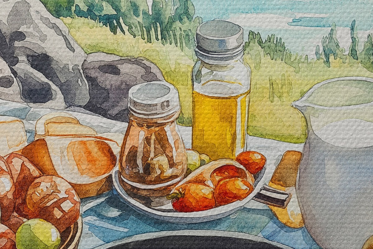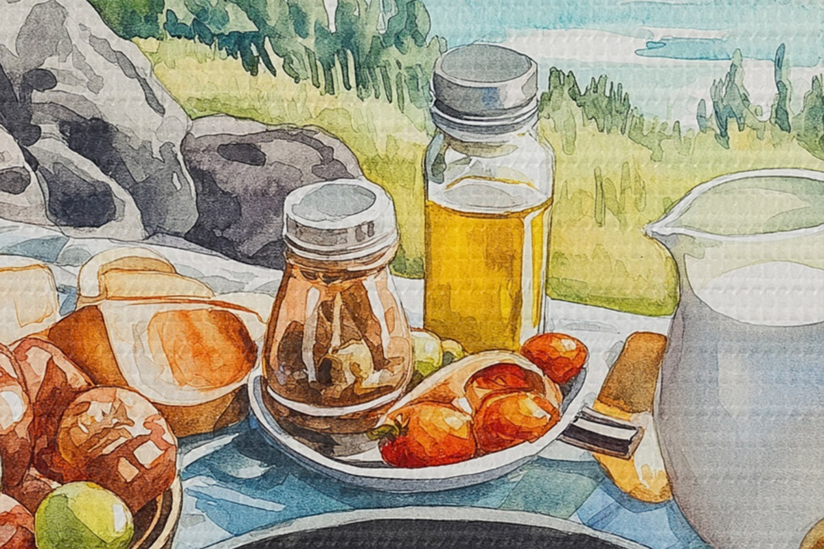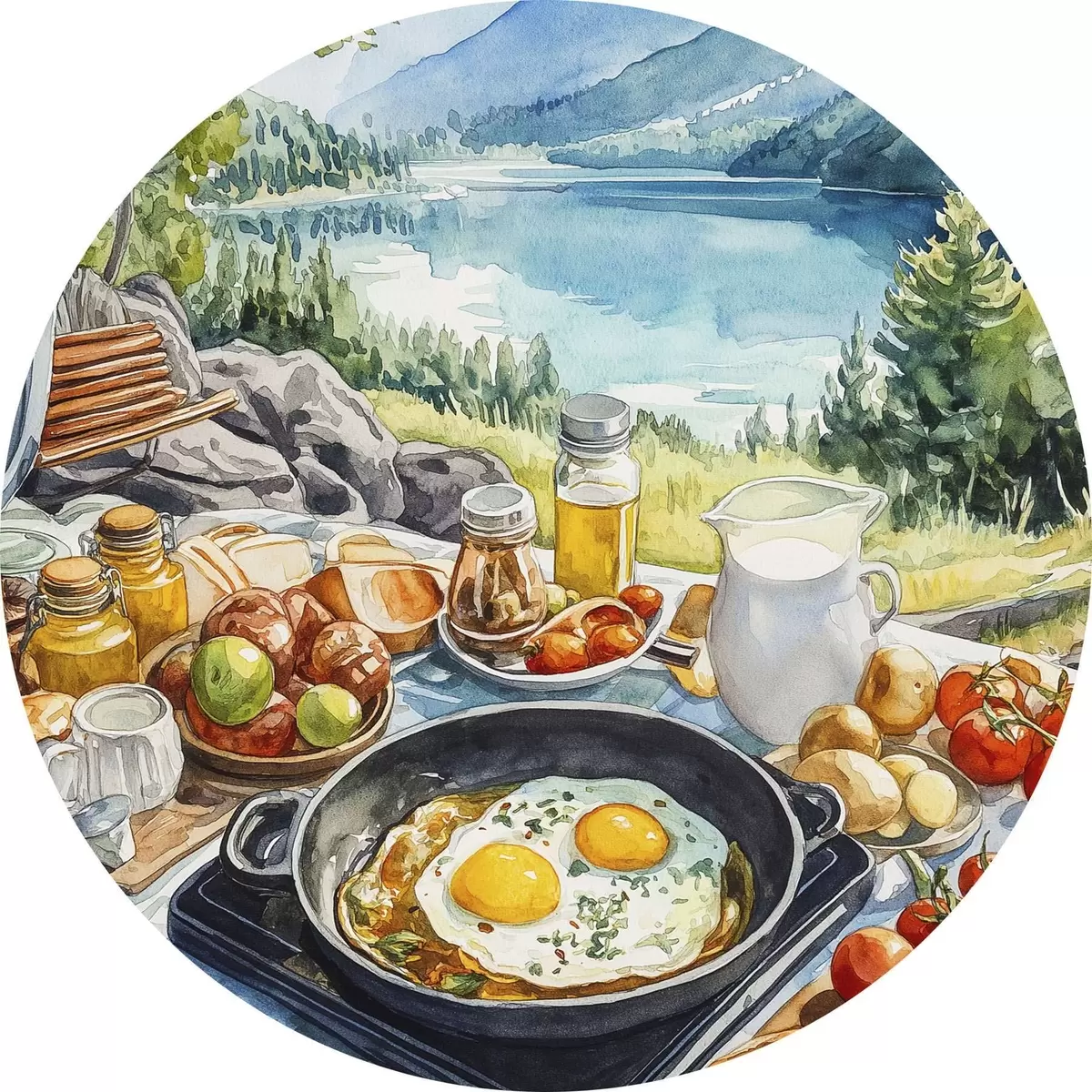 Nuotrauka Estetiški pusryčiai prie ežero, akvarelės stilius Nr r42432