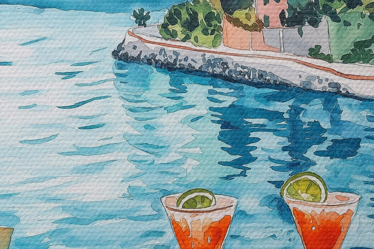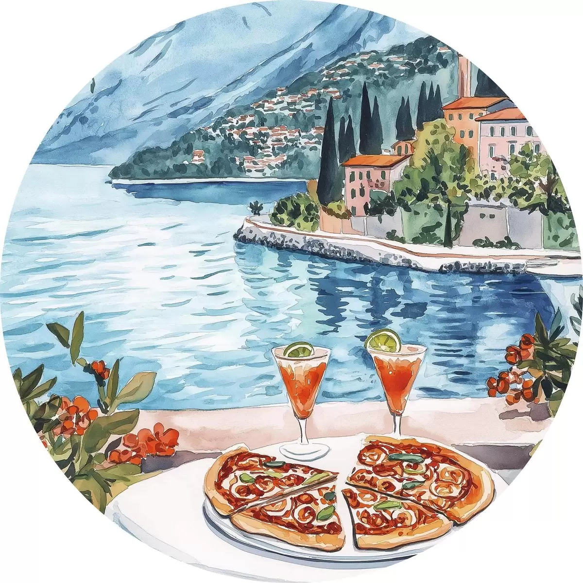 Nuotrauka Komo ežeras, Italija, akvarelės stilius, pica, kokteiliai, senamiestis, kalnai Nr r42437