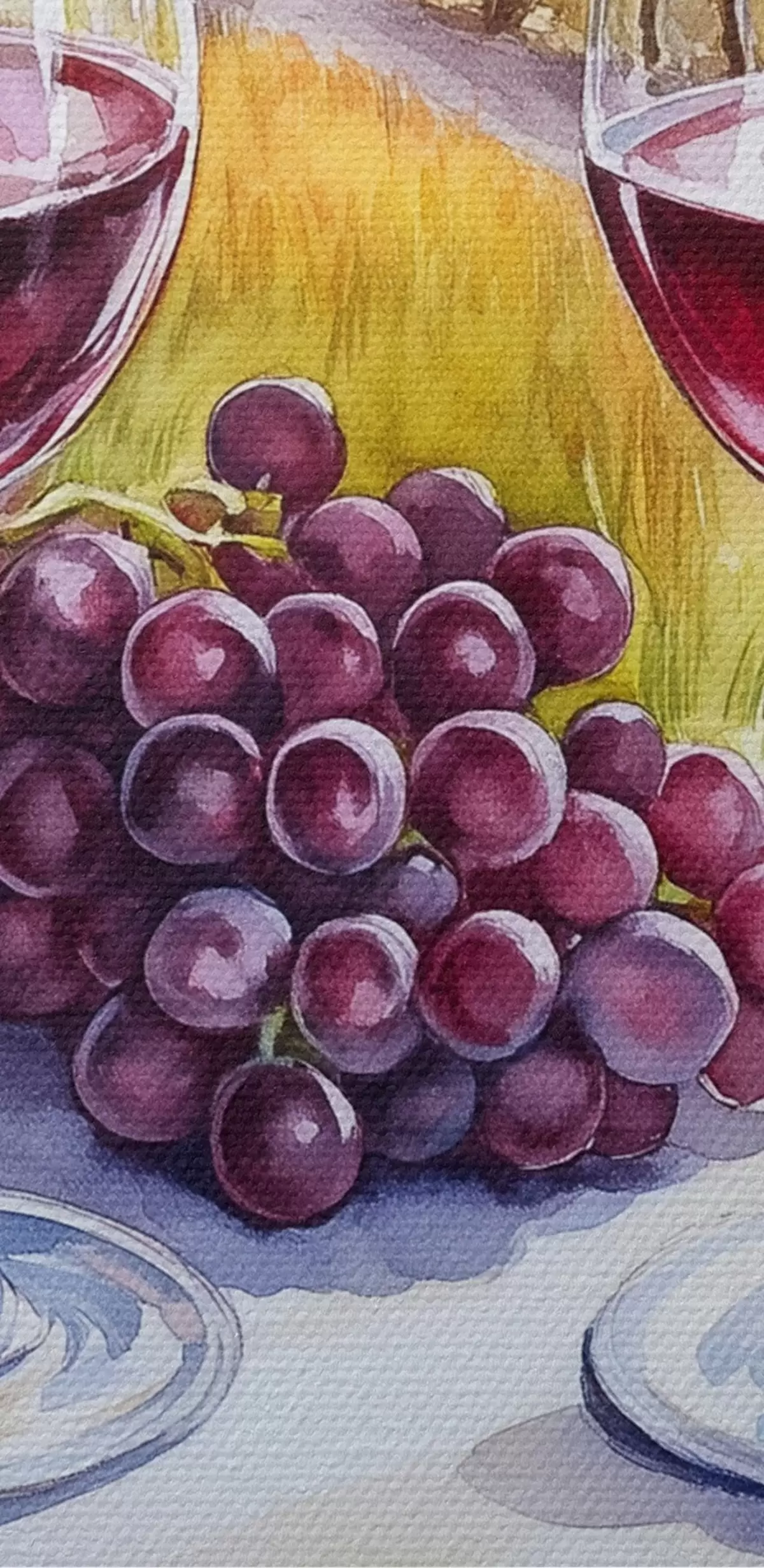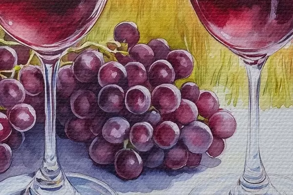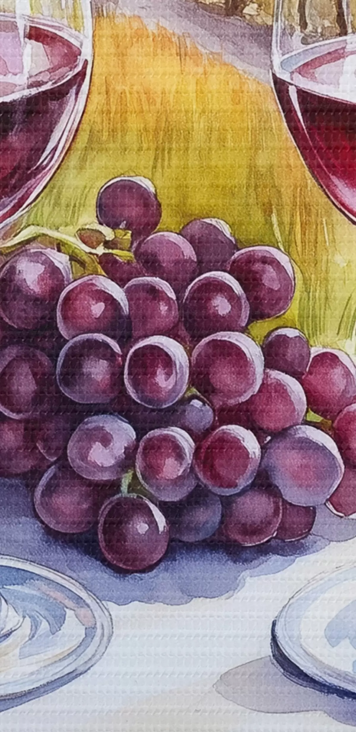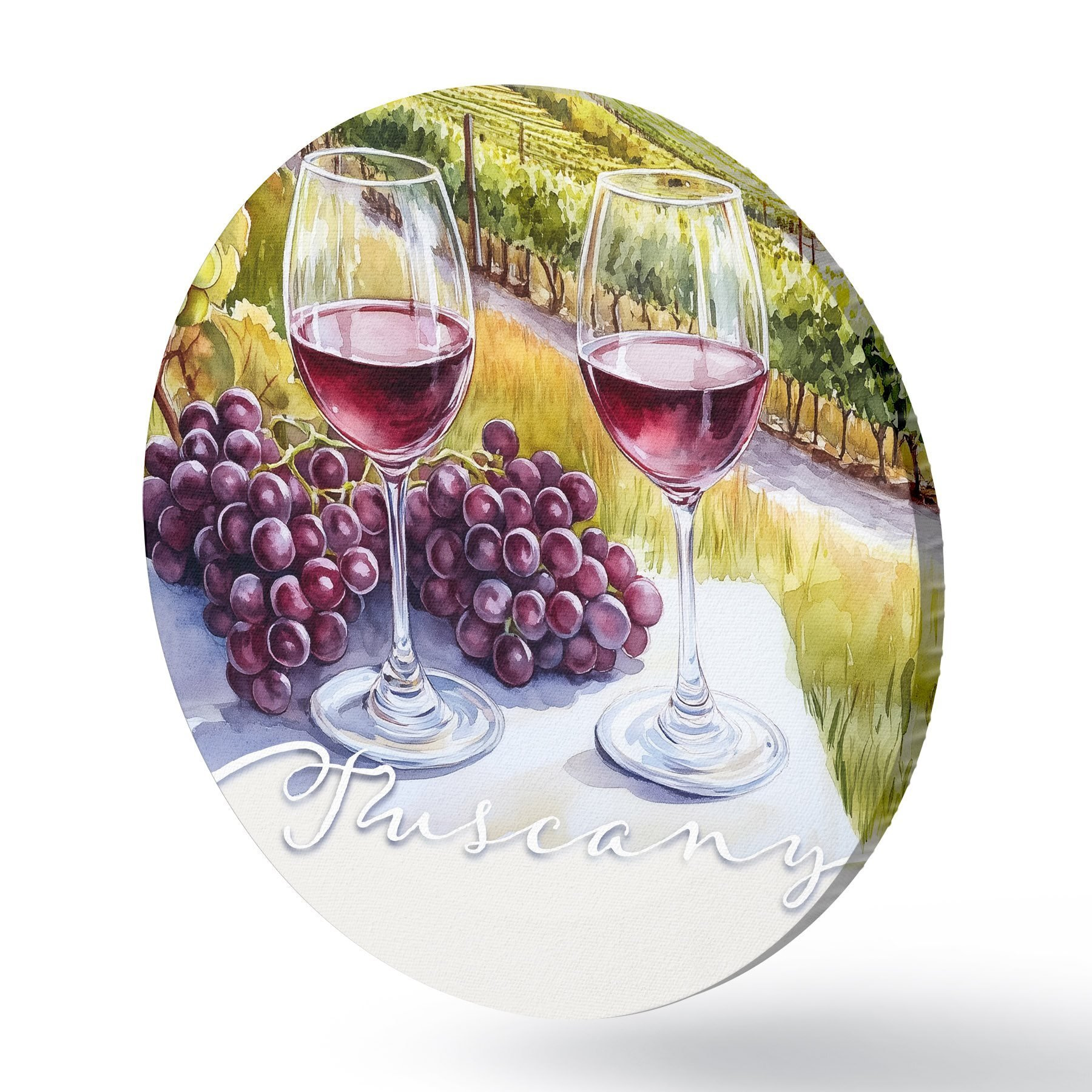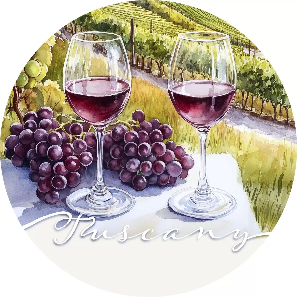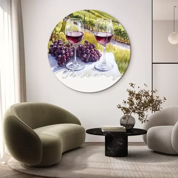 Nuotrauka Toskanos peizažai, akvarelės stilius, vyno taurės, vynuogės, saulėlydis Nr r42439
