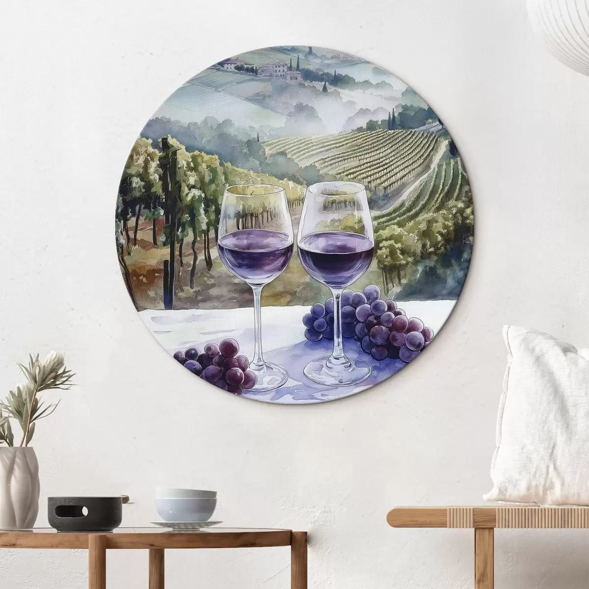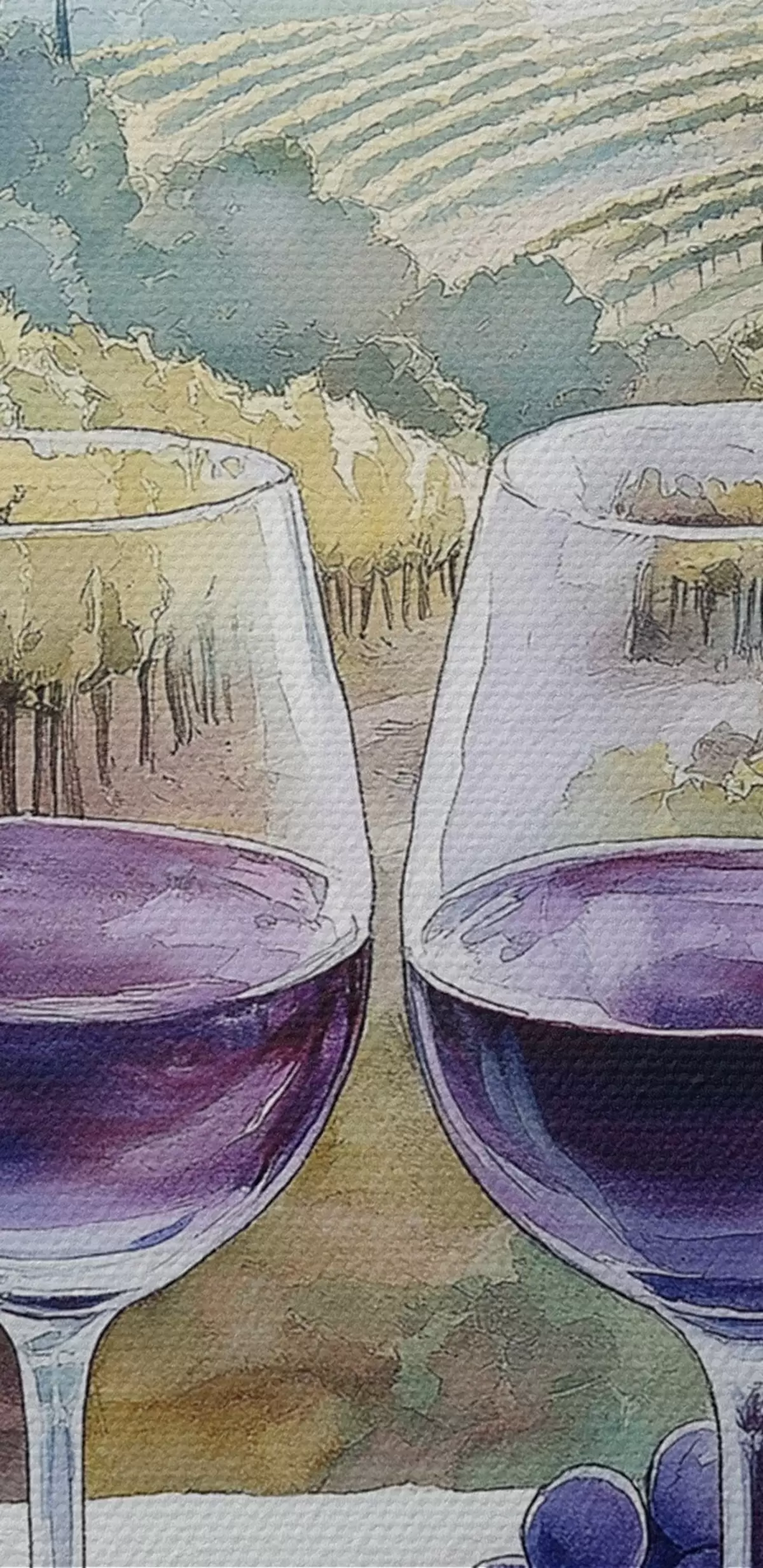 Nuotrauka Akvarelės stiliaus Toskanos peizažai, vyno kiemai, vynuogės Nr r42440