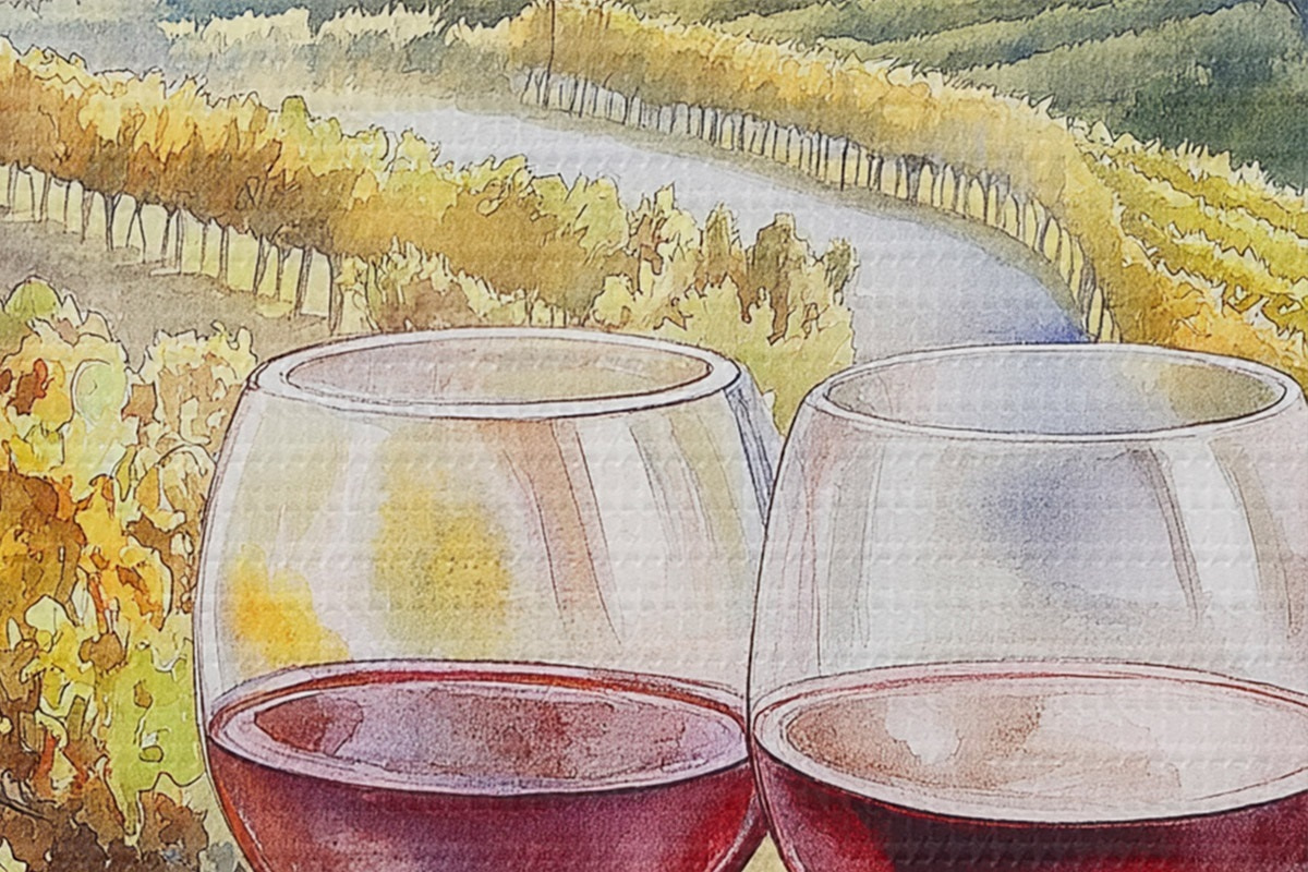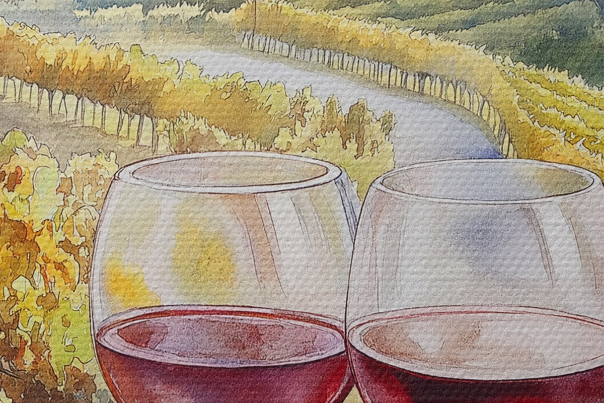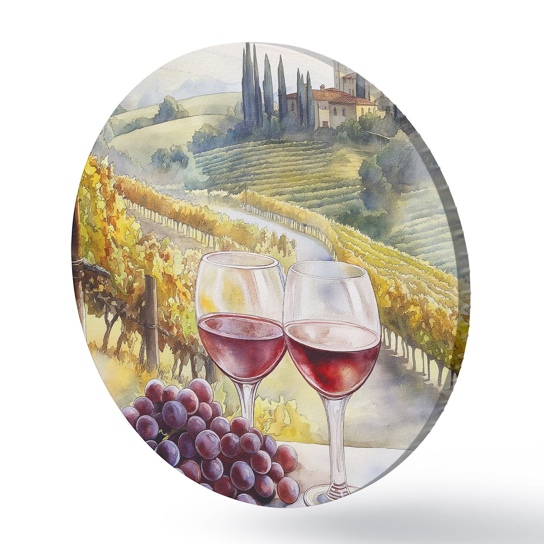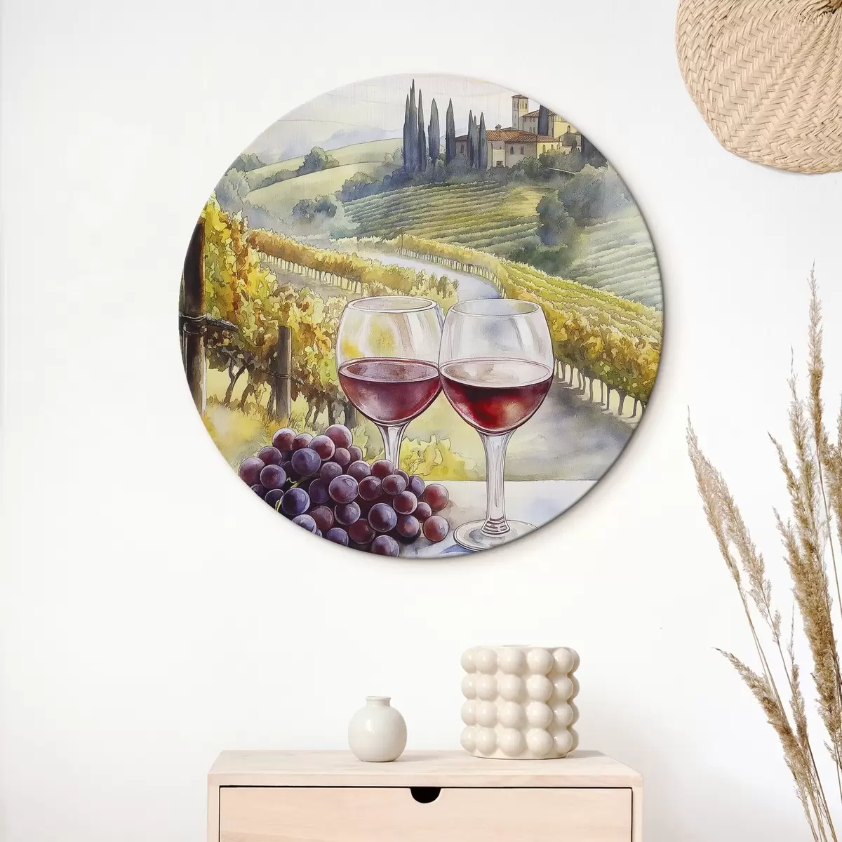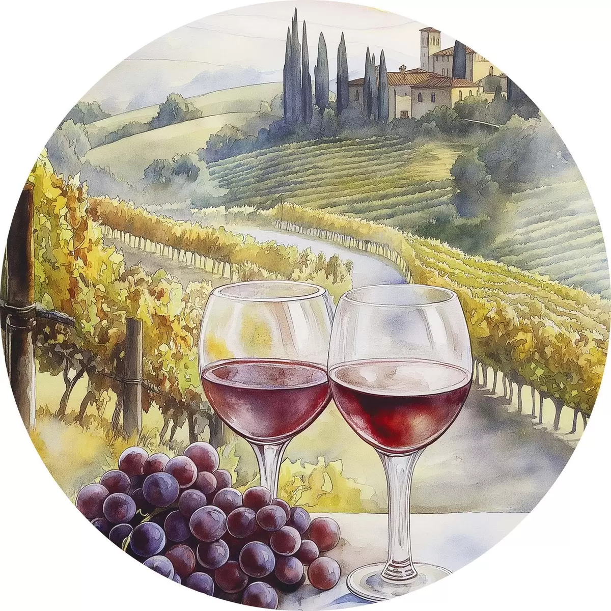 Nuotrauka Saulėlydis Toskanoje, vyno darykla, senoji architektūra, akvarelės stilius, Italija Nr r42446