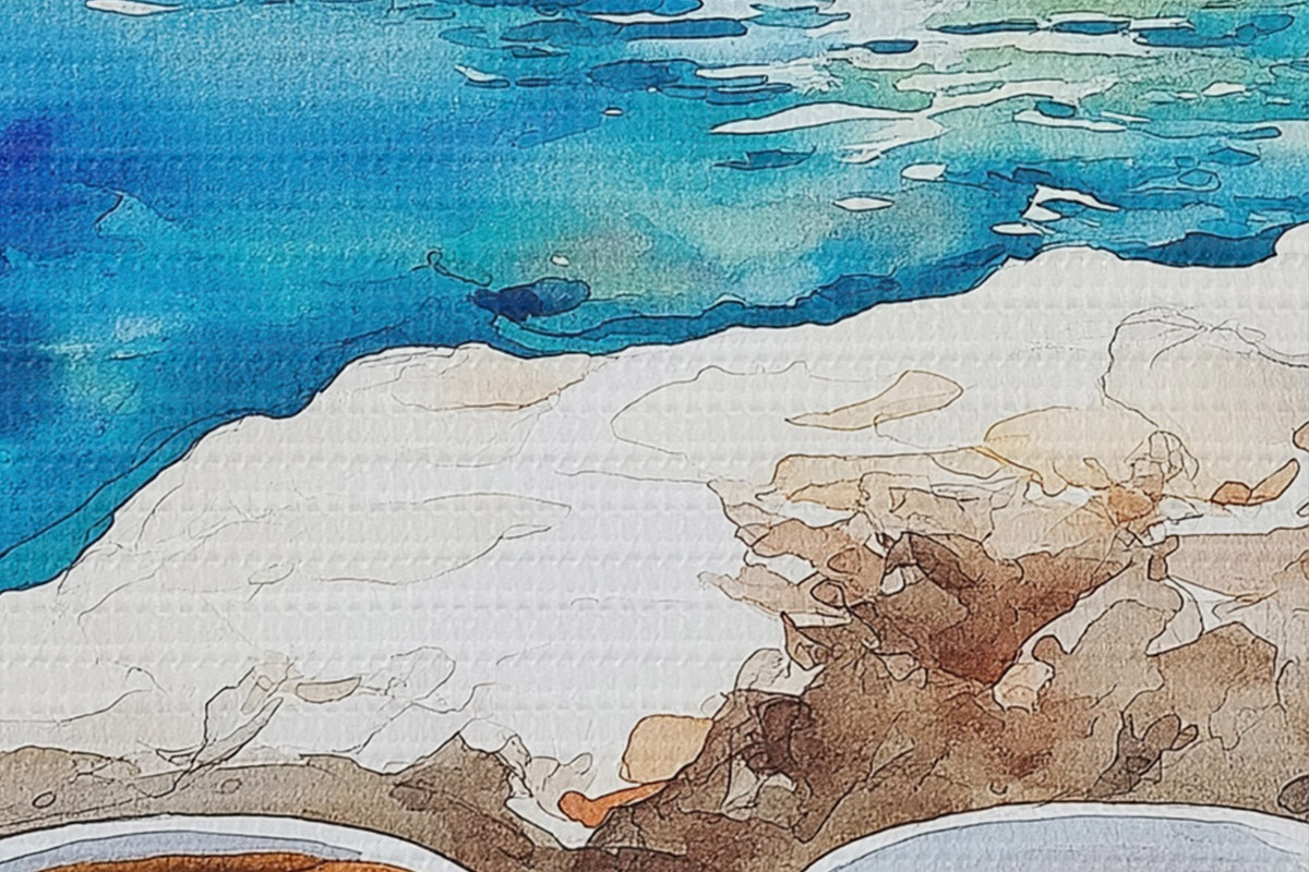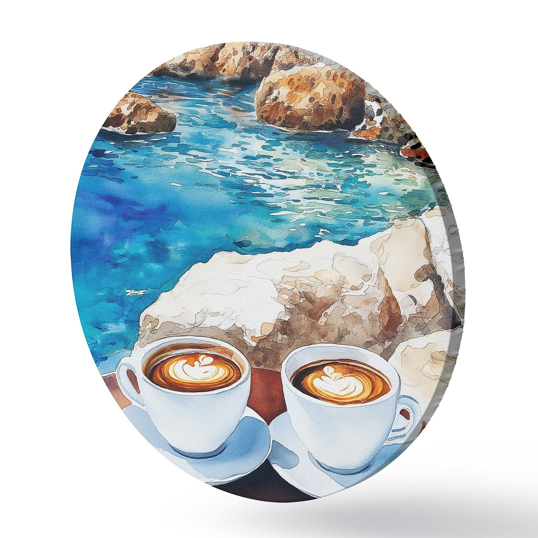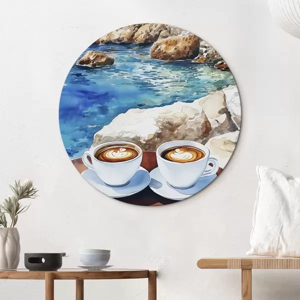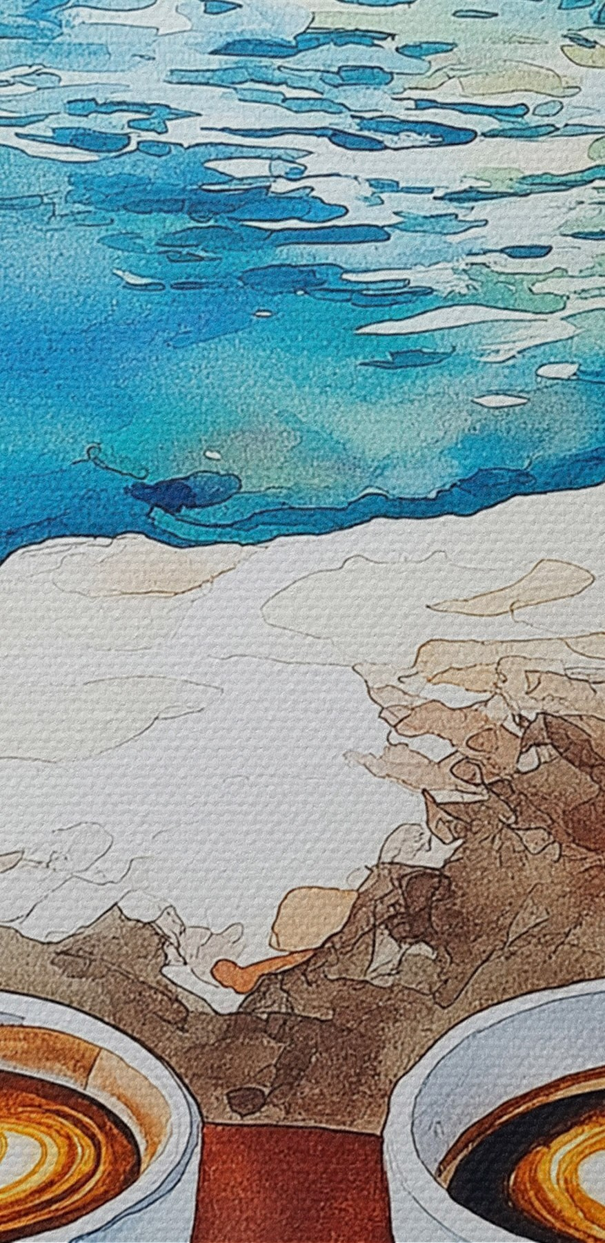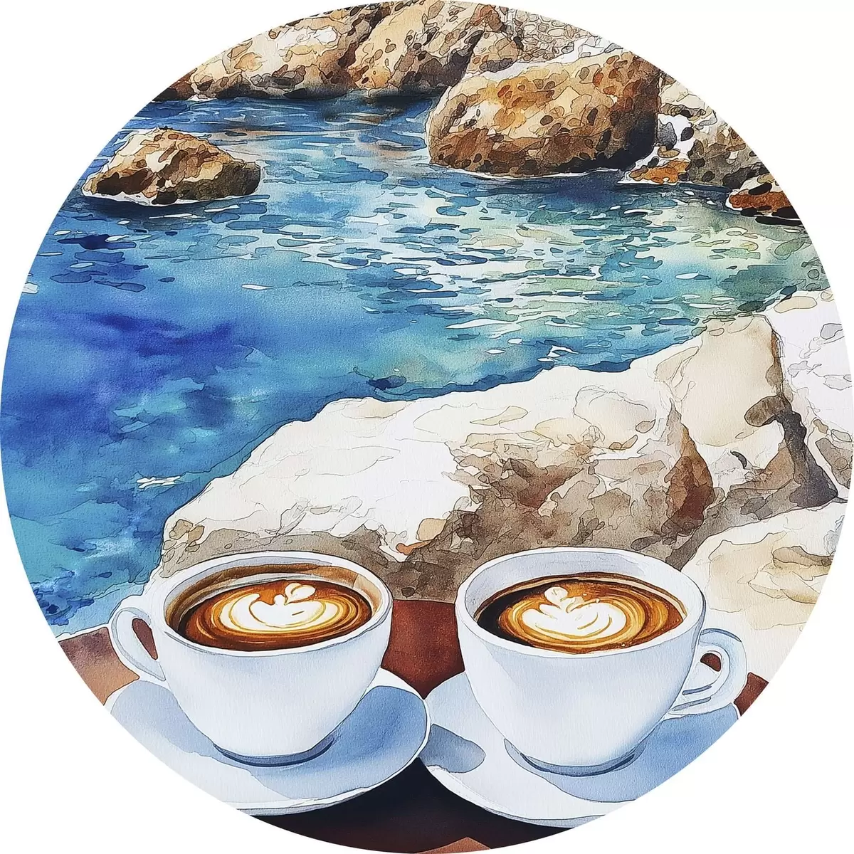 Nuotrauka Akvarelė prie jūros su kavos puodeliais, vasara Nr r42449