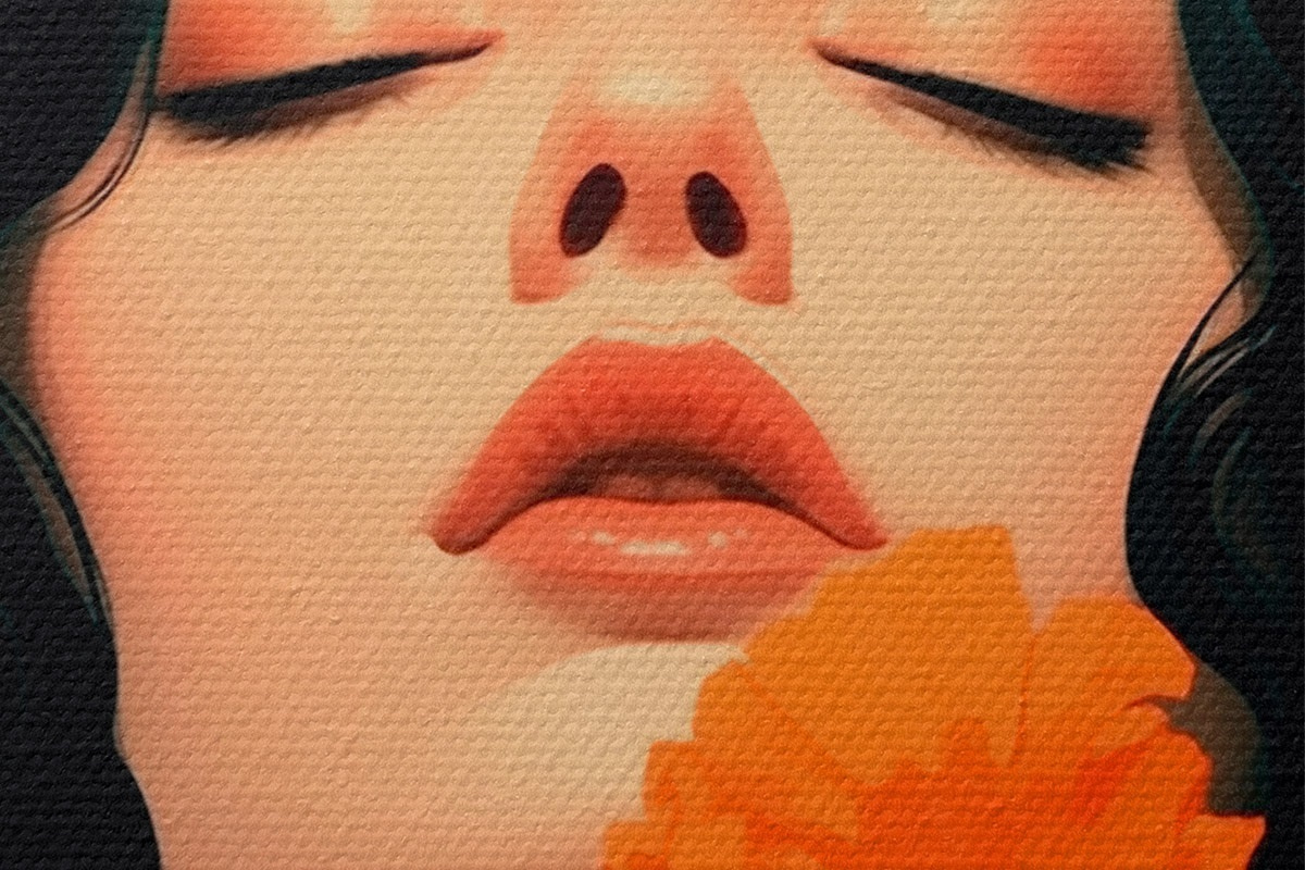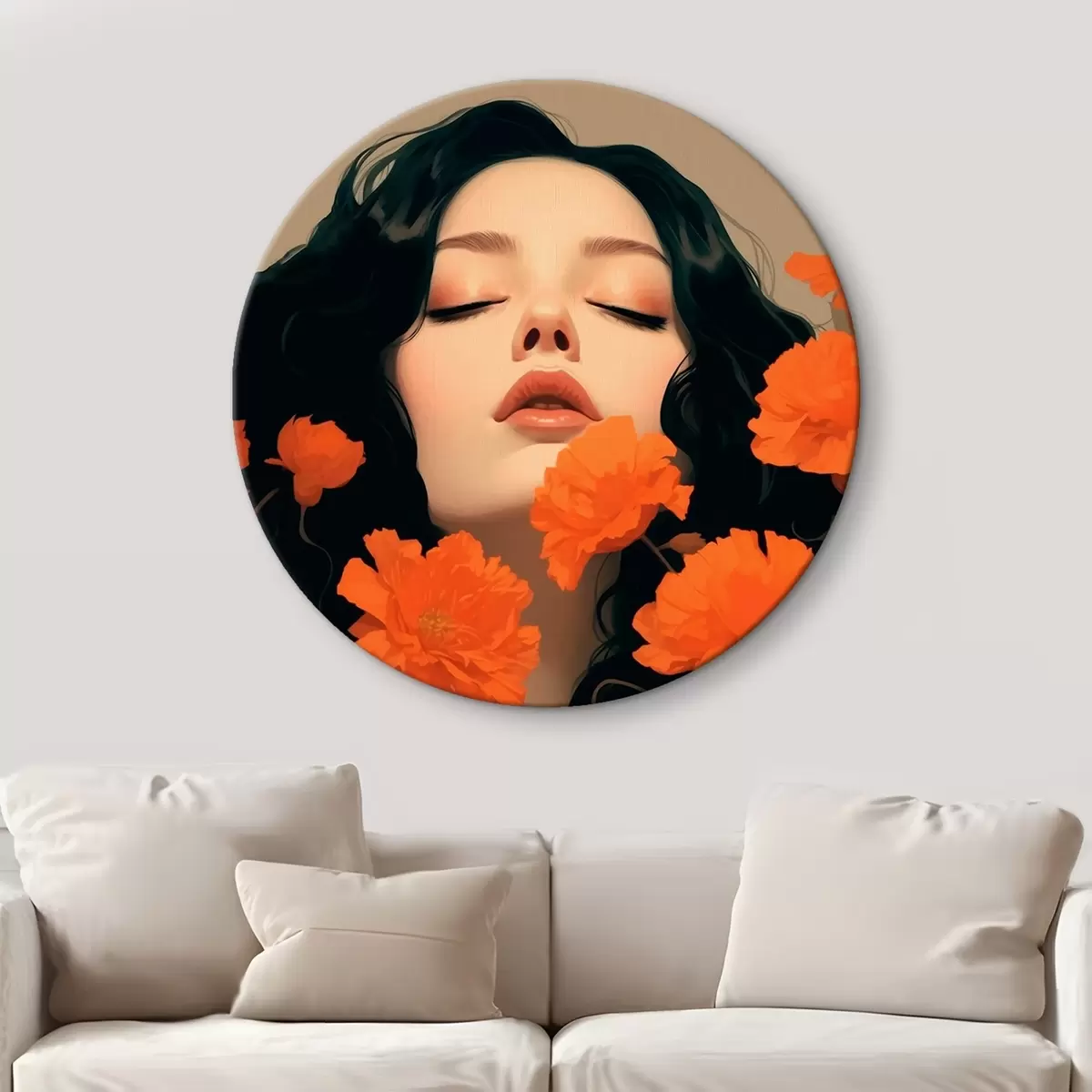 Nuotrauka Moters portretas tarp raudonų gėlių Nr r42478