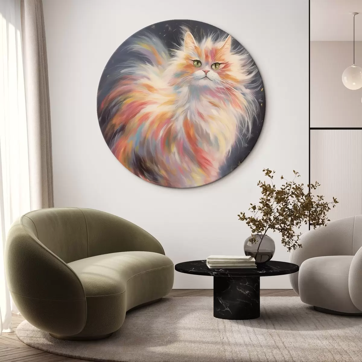 Nuotrauka Pūkuota katė su spalvingu kailiu tamsiame fone Nr r42484