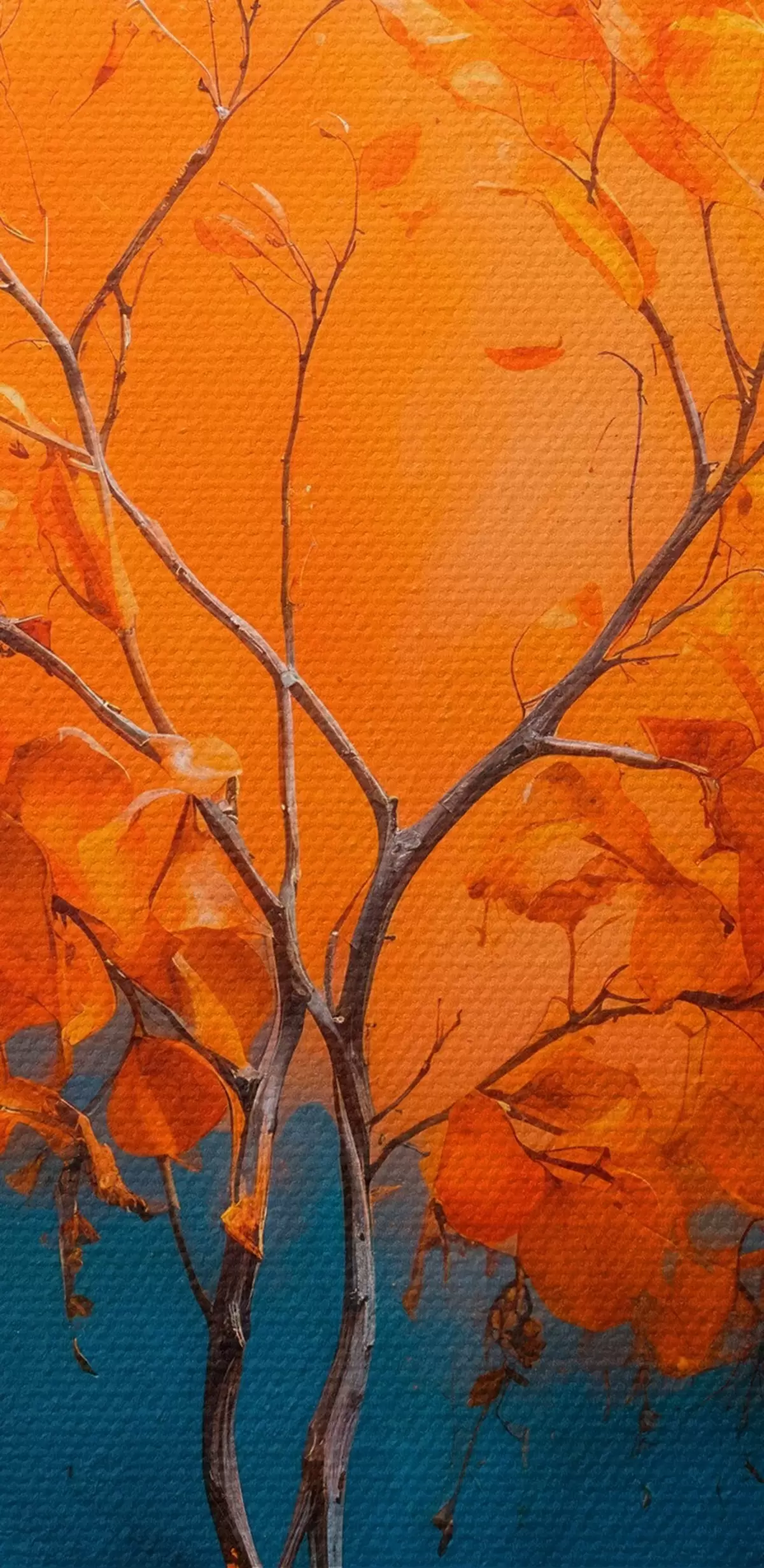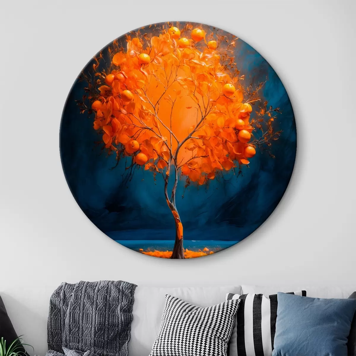 Nuotrauka Oranžinis medis mėlyname fone akrilo tapybos stiliumi Nr r42525