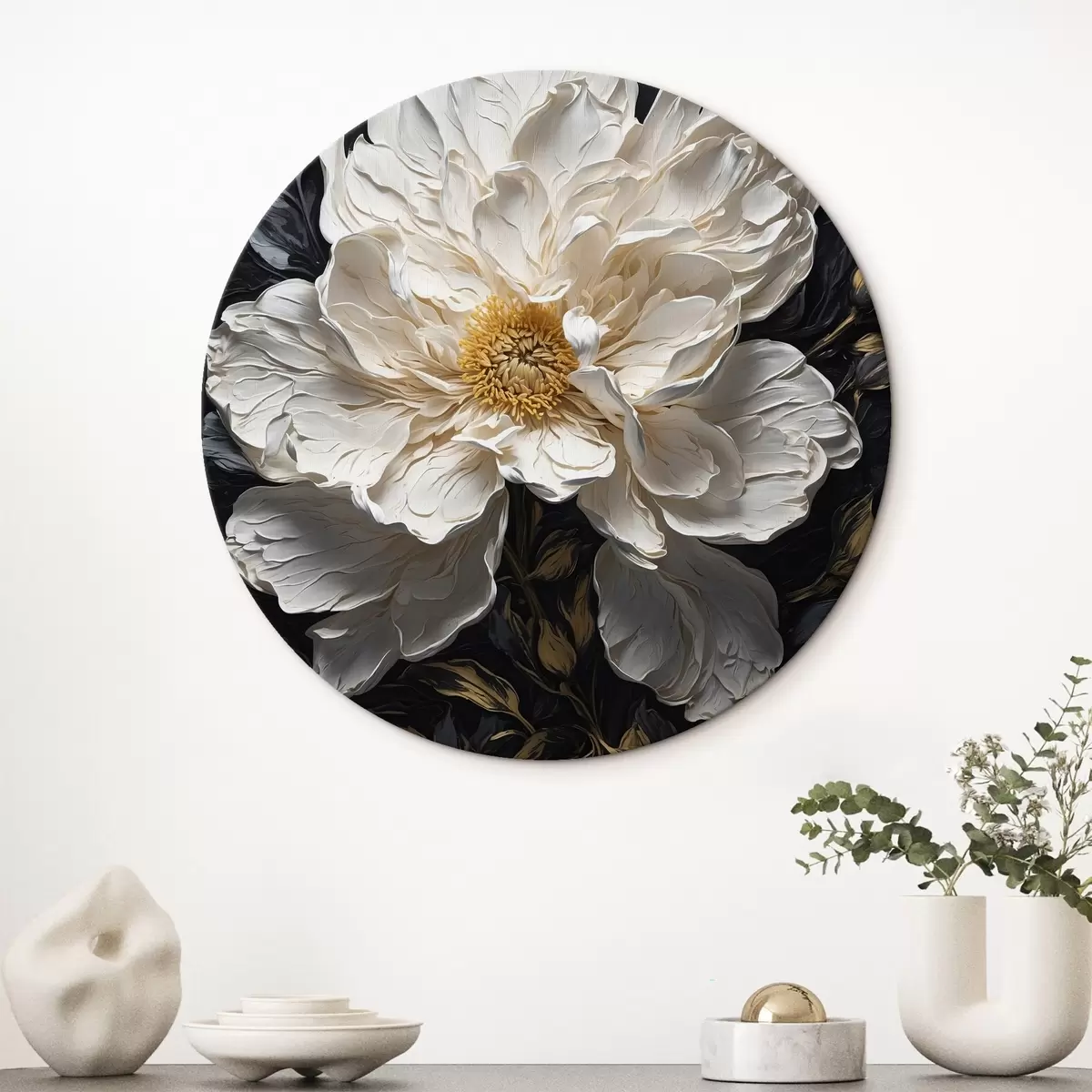 Nuotrauka Balta gėlė juodame fone aliejinės tapybos stiliumi Nr r42544