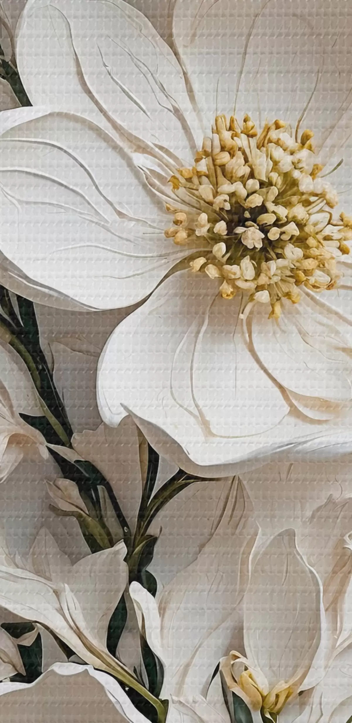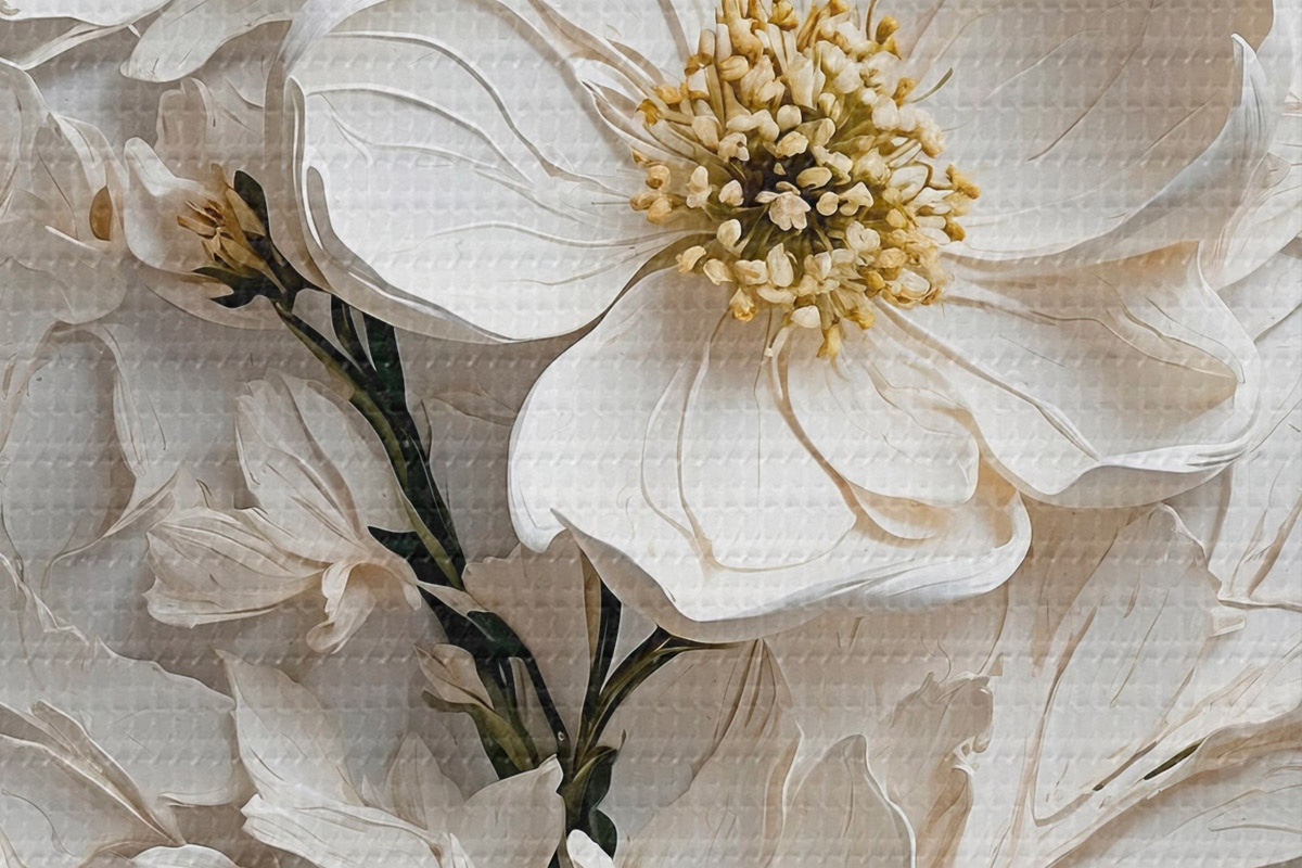 Nuotrauka Baltos gėlės ir stiebai aliejinės tapybos stiliumi Nr r42546