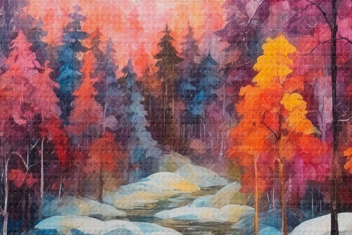 Nuotrauka Miškas žiemos stiliaus tapyba akvarele Nr r42549