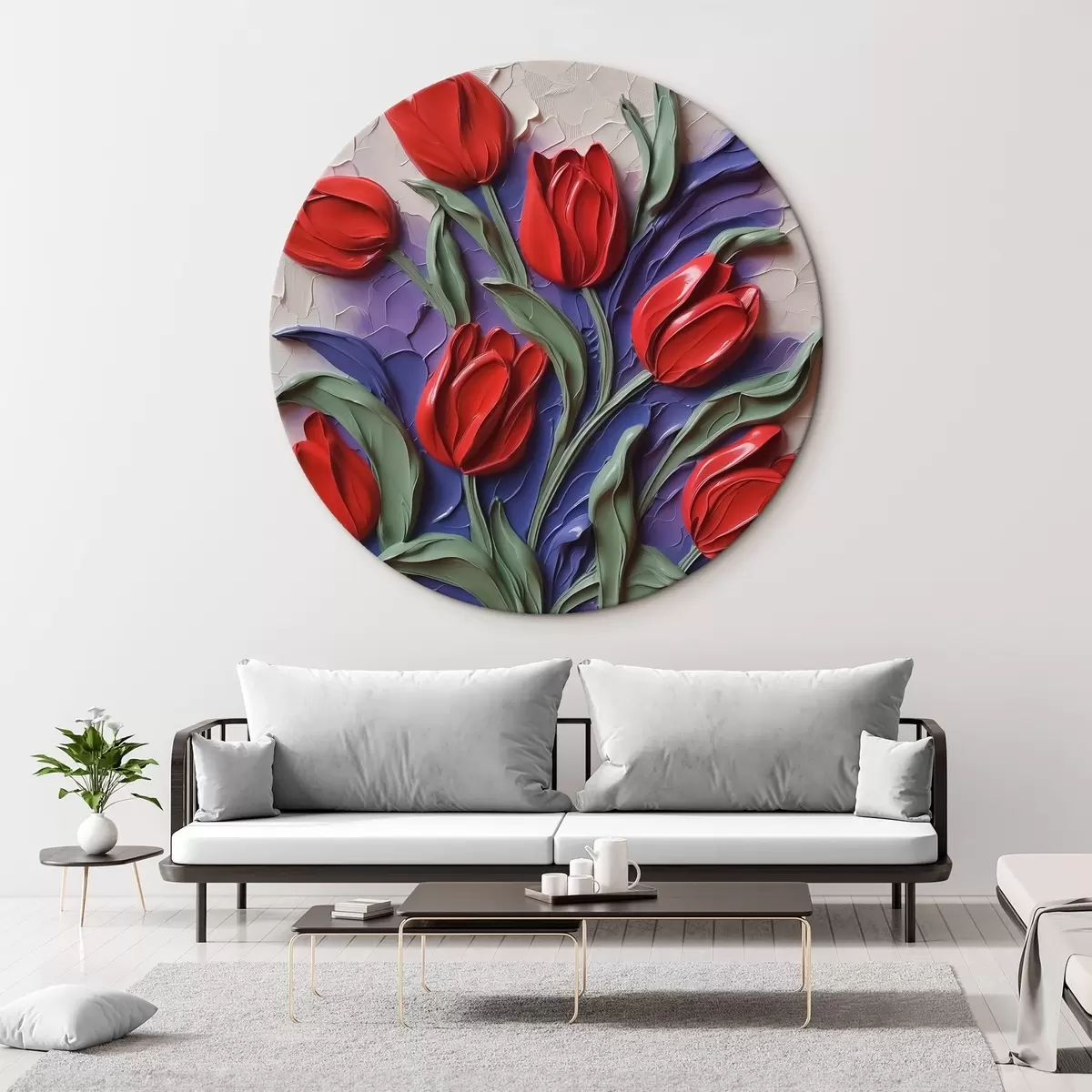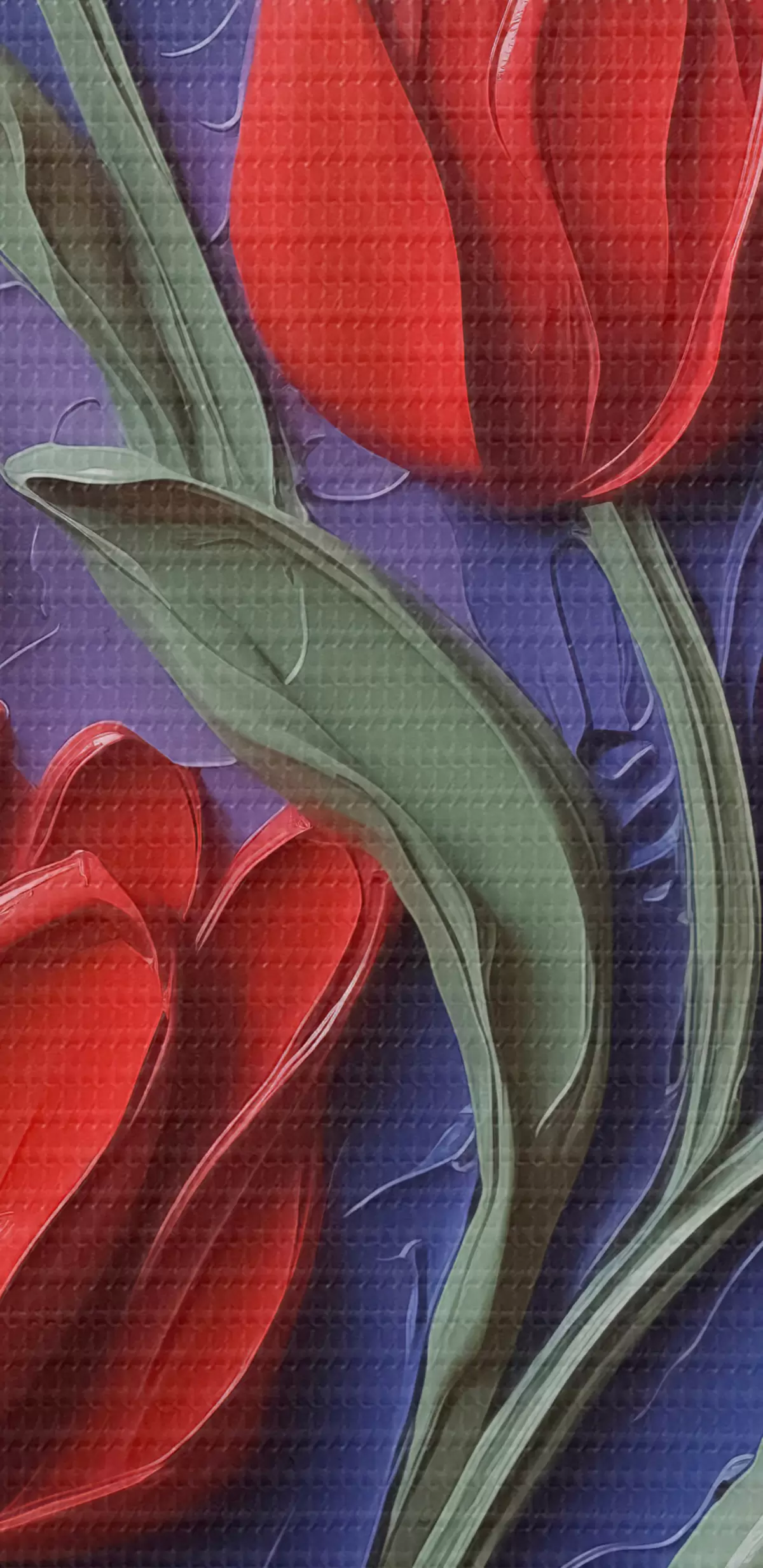 Nuotrauka Raudonos tulpės ant violetinių teptuko potėpių imitacijos Nr r42584