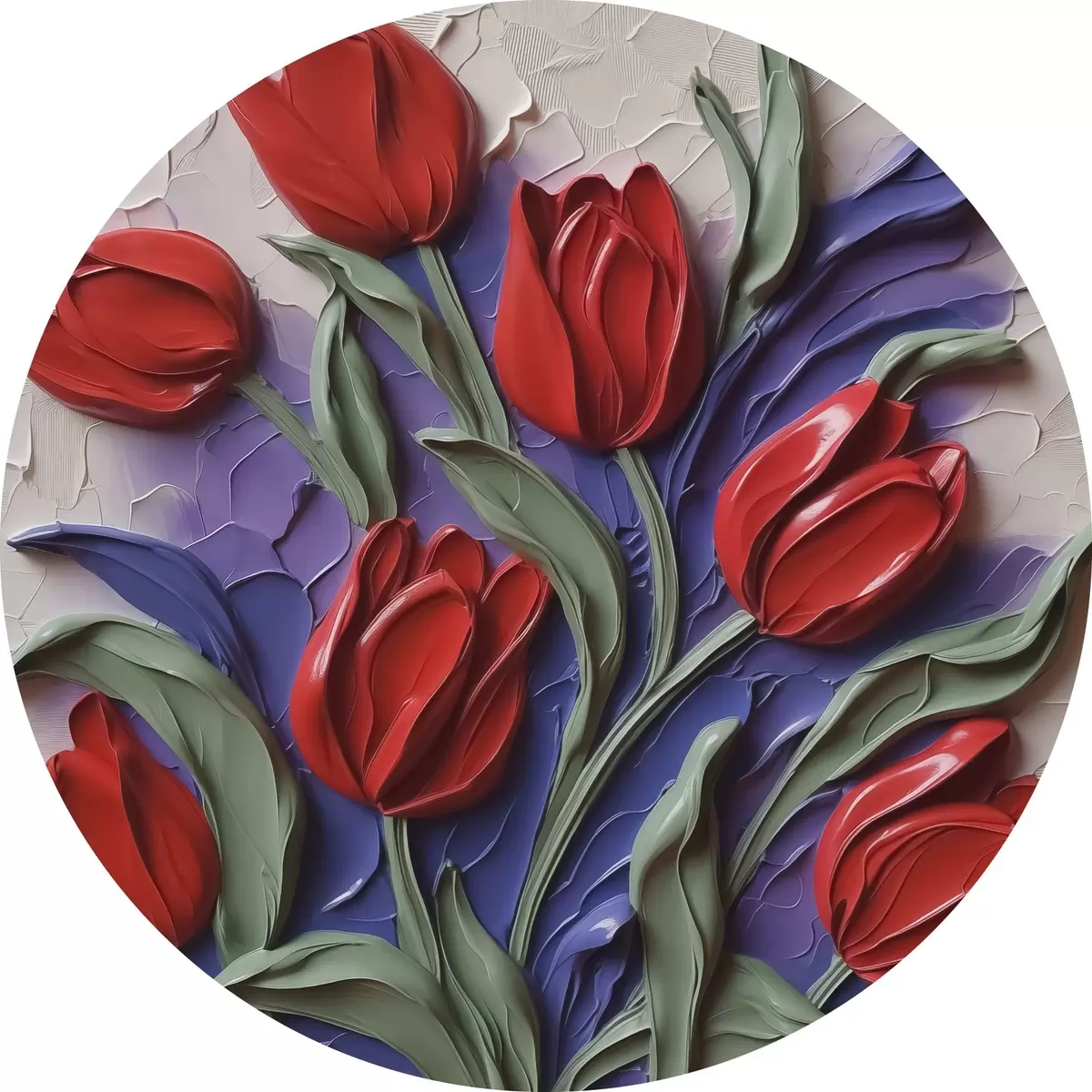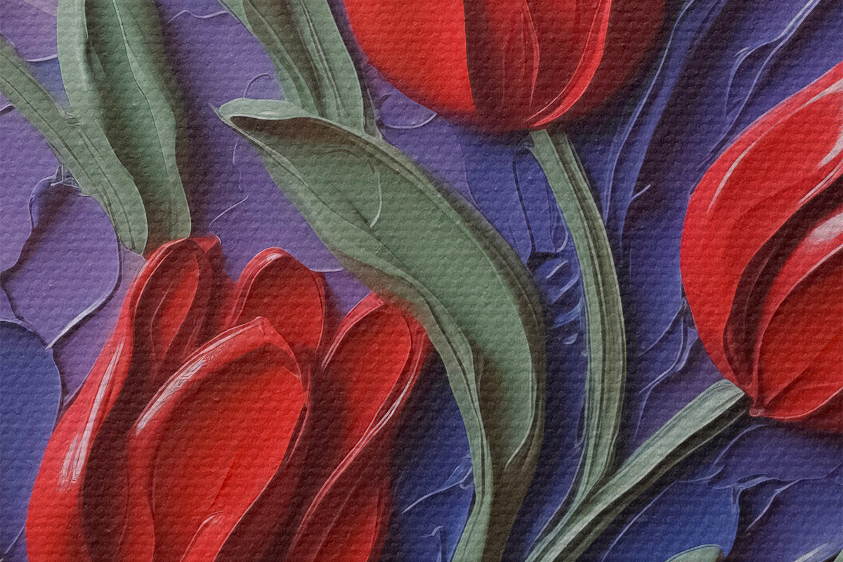 Nuotrauka Raudonos tulpės ant violetinių teptuko potėpių imitacijos Nr r42584