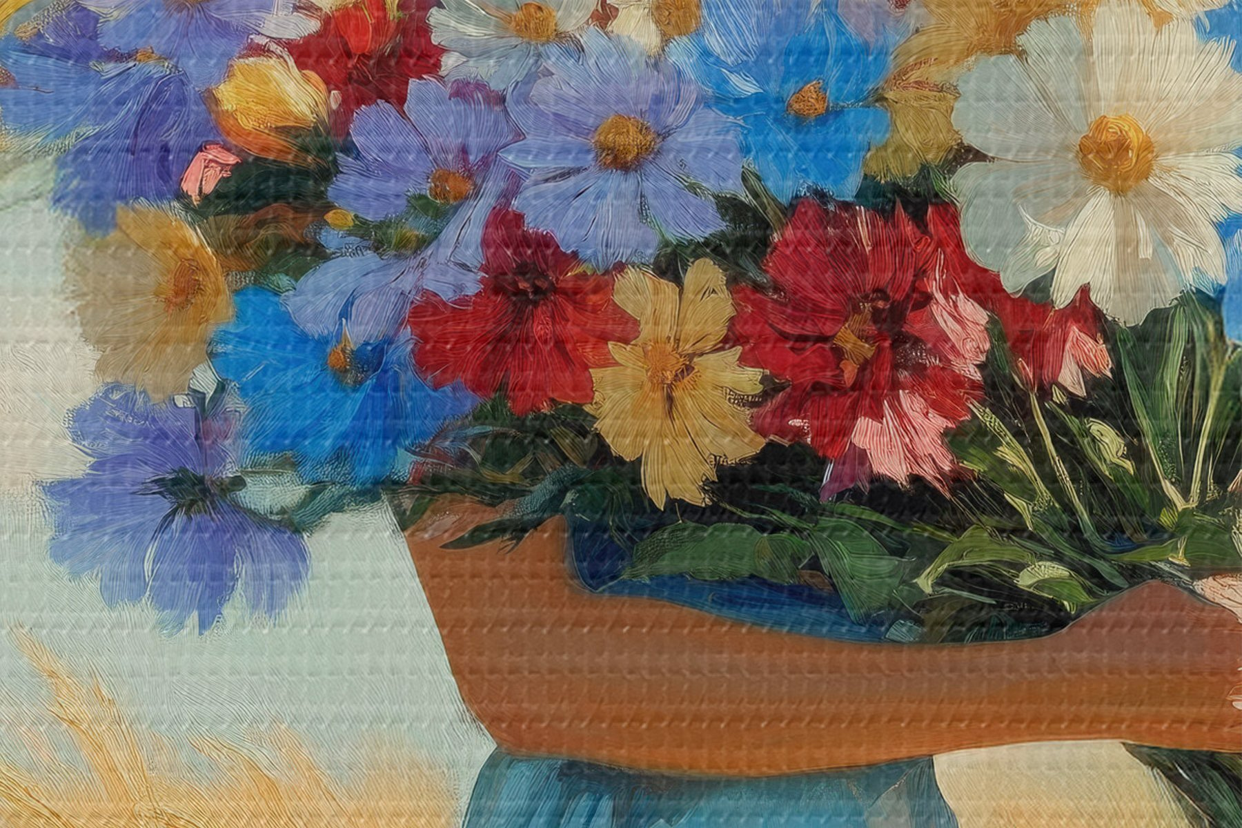 Smulkus siūlų pynimas ant šios drobės primena profesionalių dailininkų drobių paviršių.