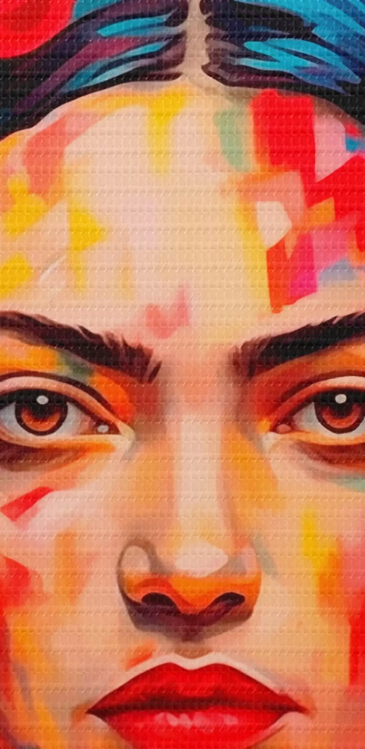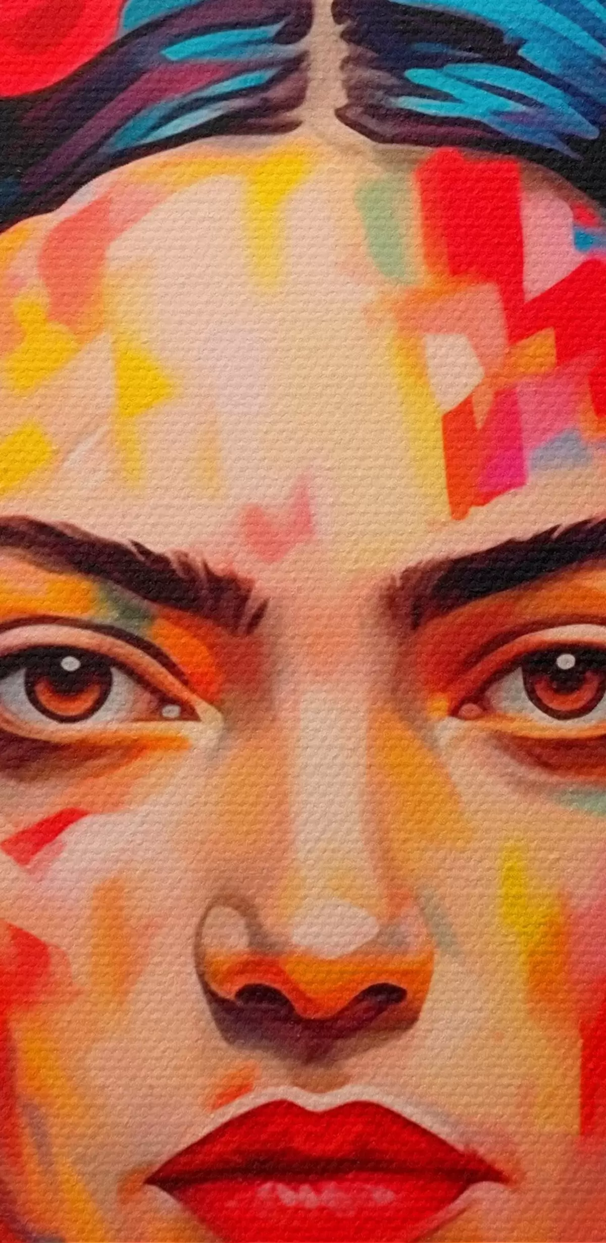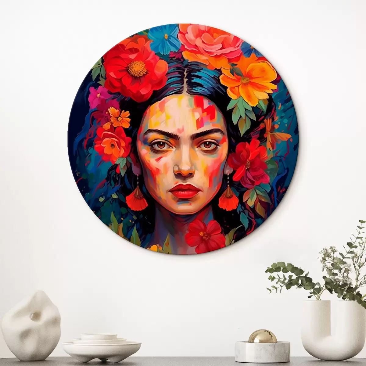 Nuotrauka Ryškus abstraktaus stiliaus moters portretas su gėlių rėmu Nr r42653