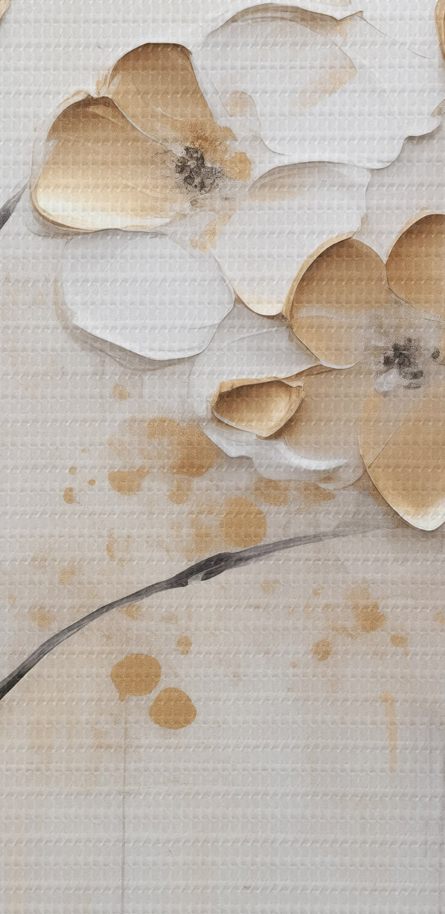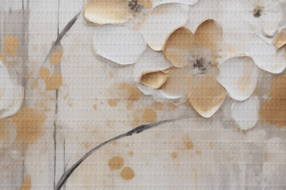 Nuotrauka Gėlės su tekstūriniais žiedlapiais minkštame, prislopintame fone su abstrakčiomis spalvomis ir vertikaliomis linijomis Nr r42713
