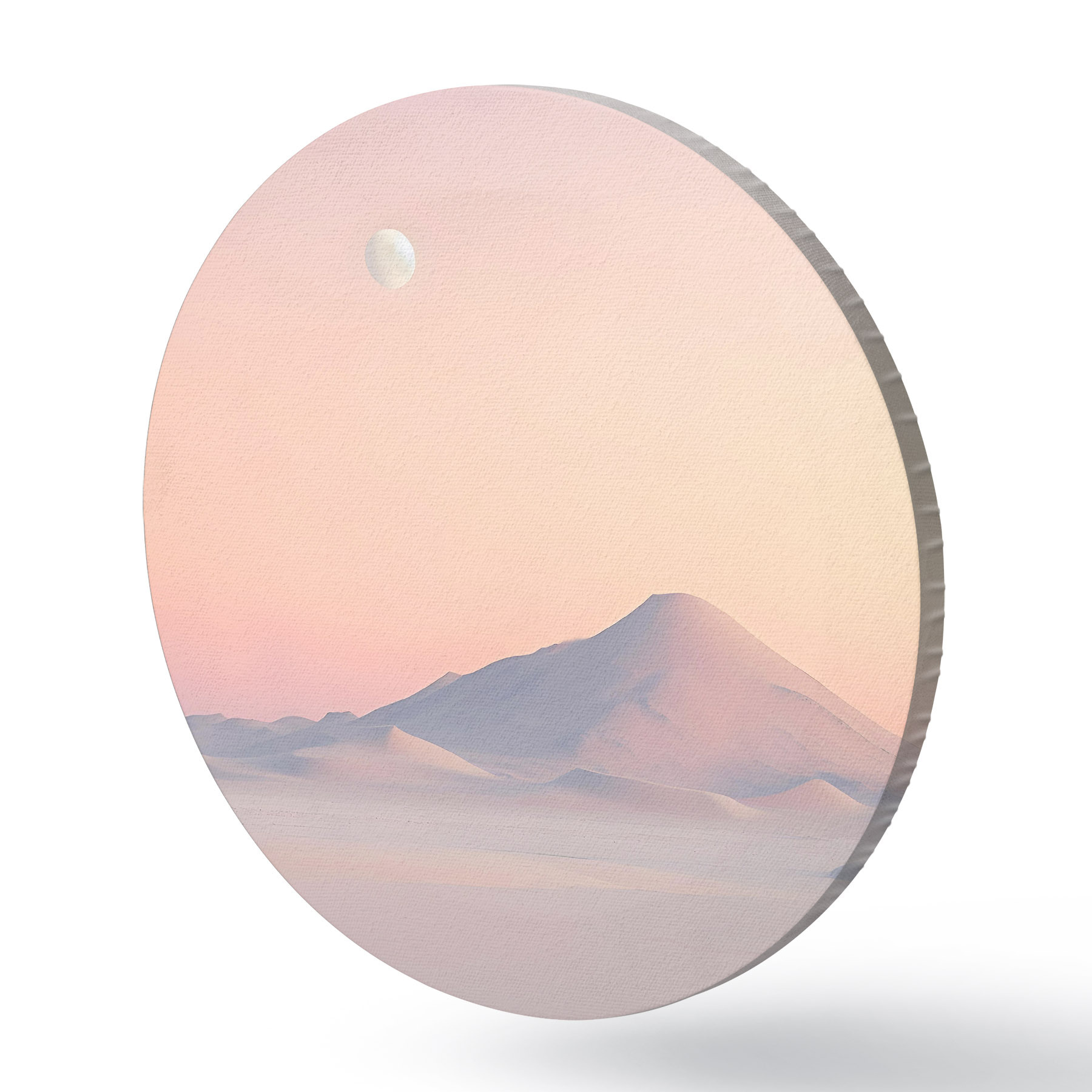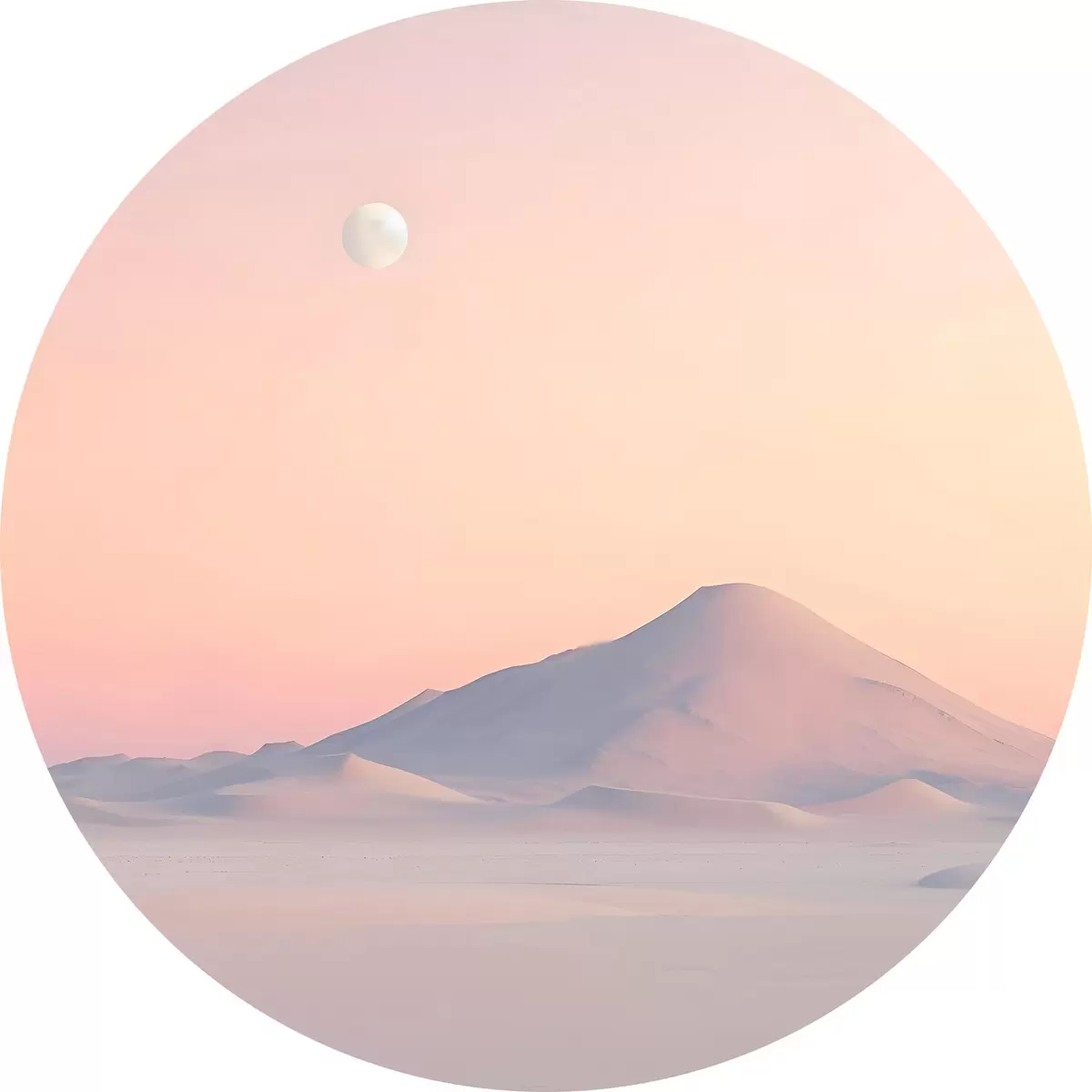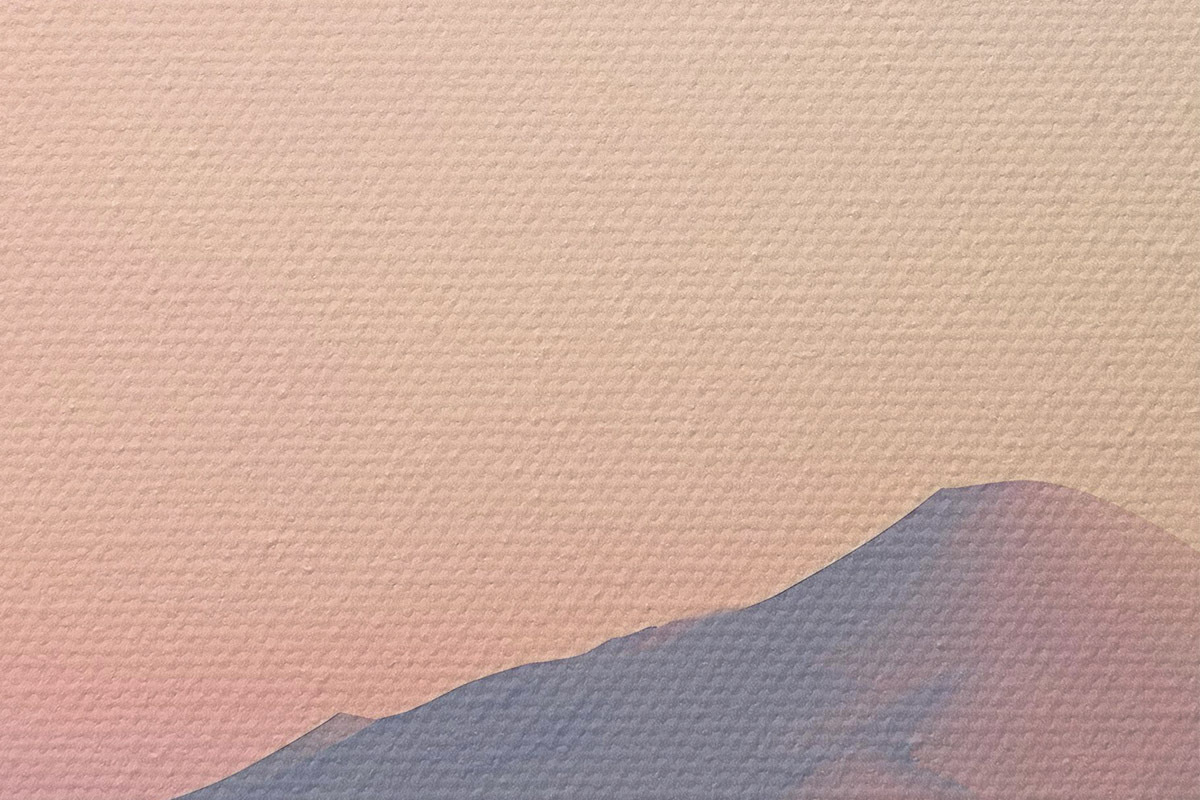 Nuotrauka Didelis kalnas su švelniu nuolydžiu švelniomis pastelinėmis spalvomis, danguje matomas blyškus mėnulis Nr r42718