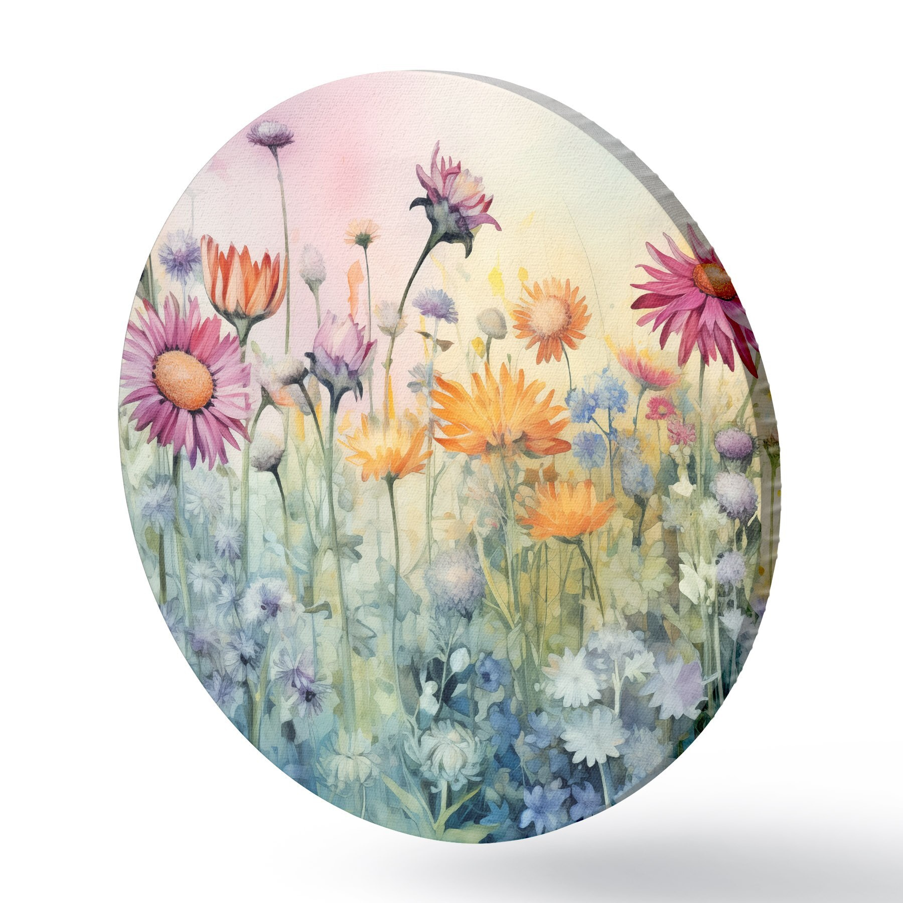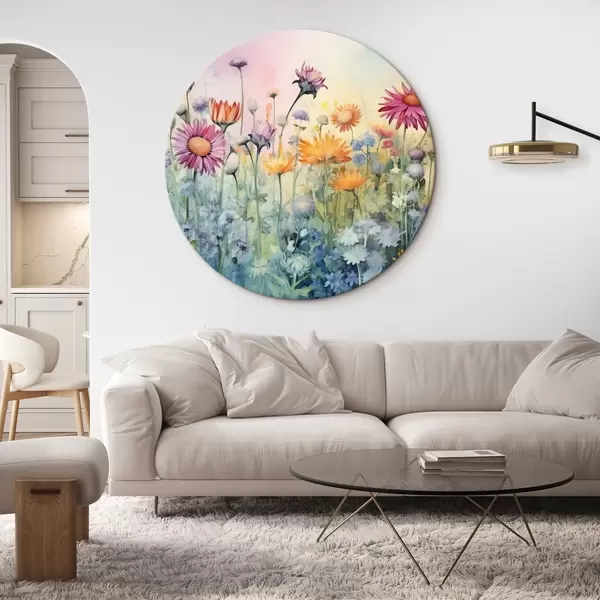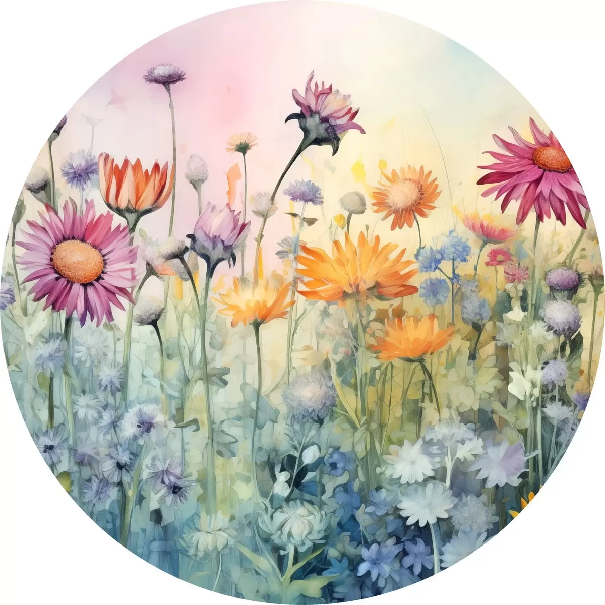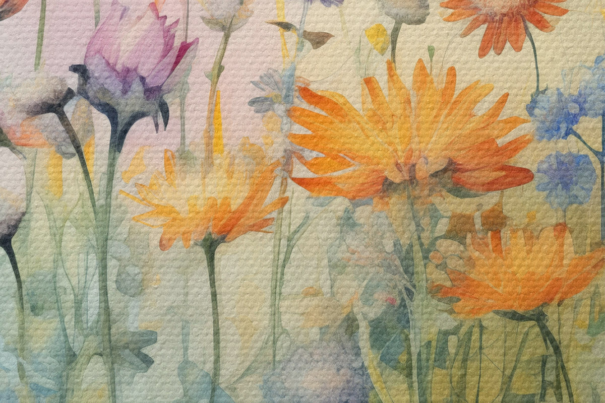 Nuotrauka Ryškus aukštų ir vešlių lauko gėlių laukas švelniame pasteliniame akvarelės fone Nr r42726
