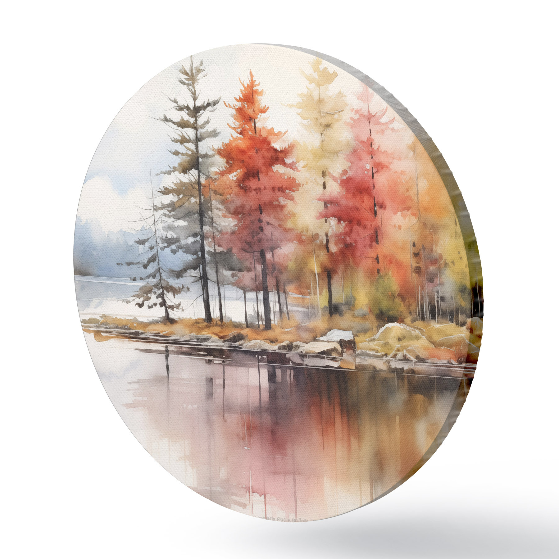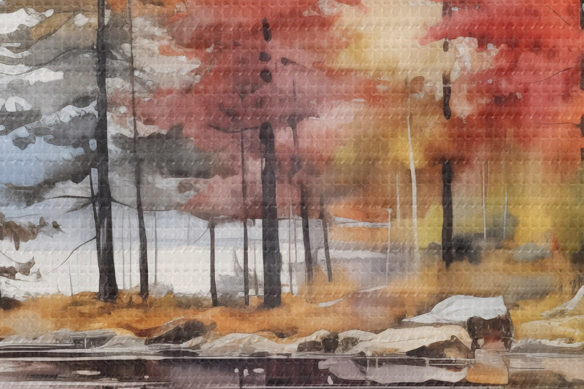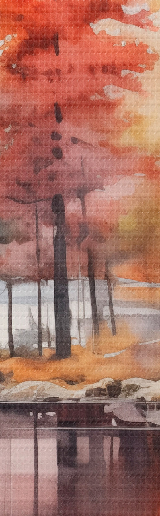Nuotrauka Akvarelinis kraštovaizdis su ežeru, apsuptu ryškiomis rudens spalvomis nusidažiusių medžių Nr r42727