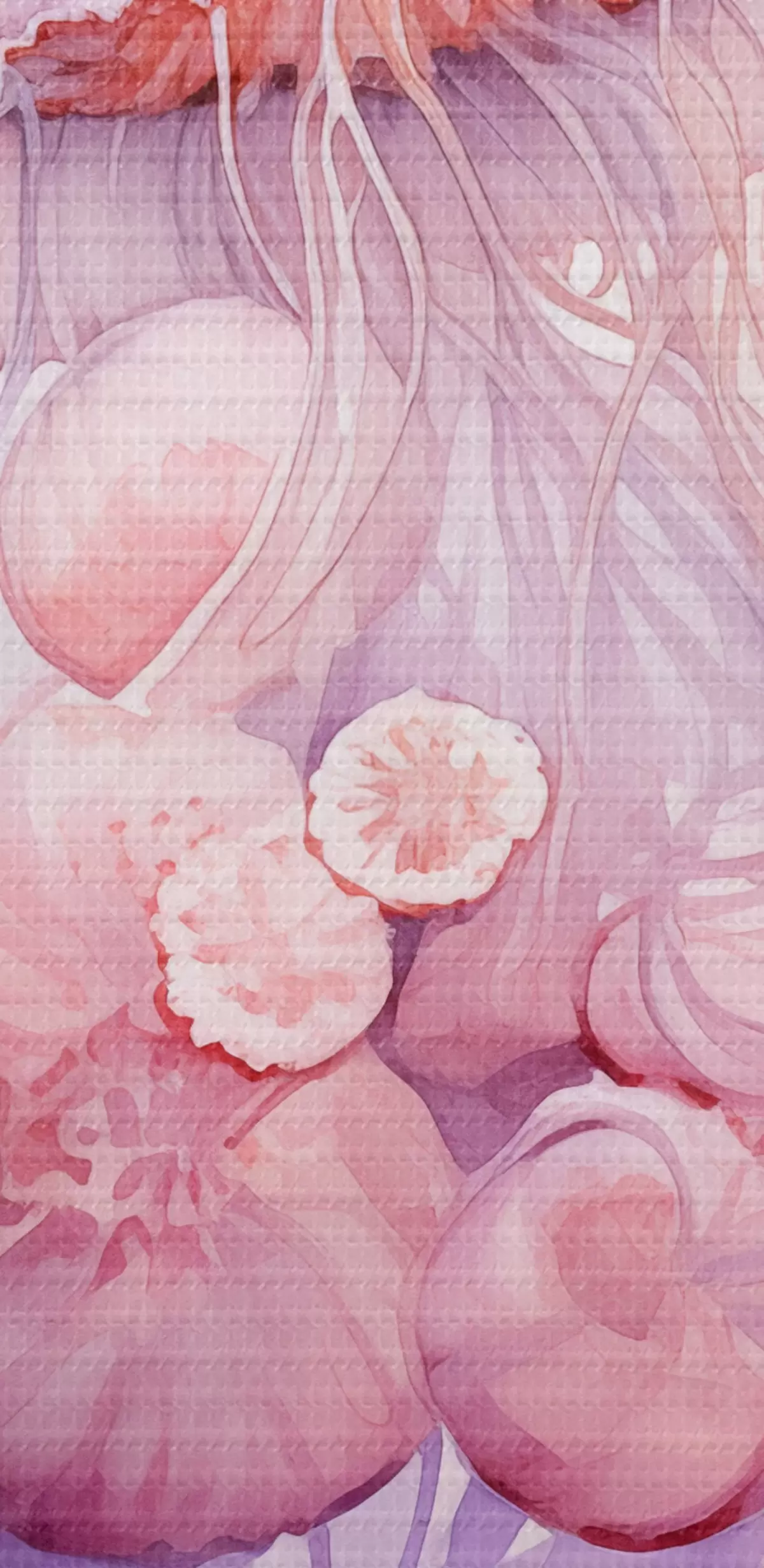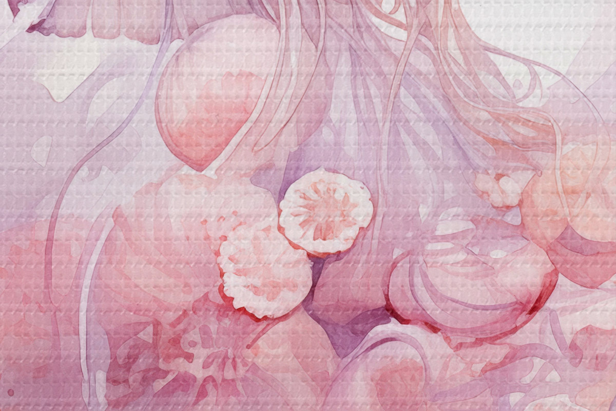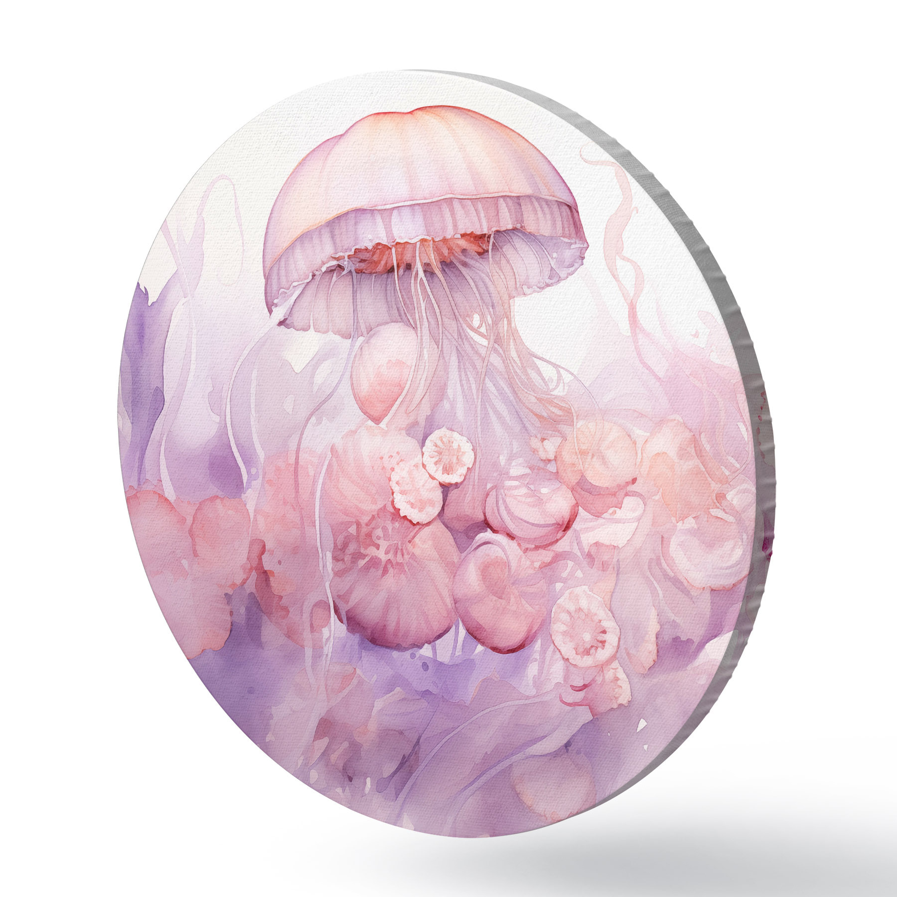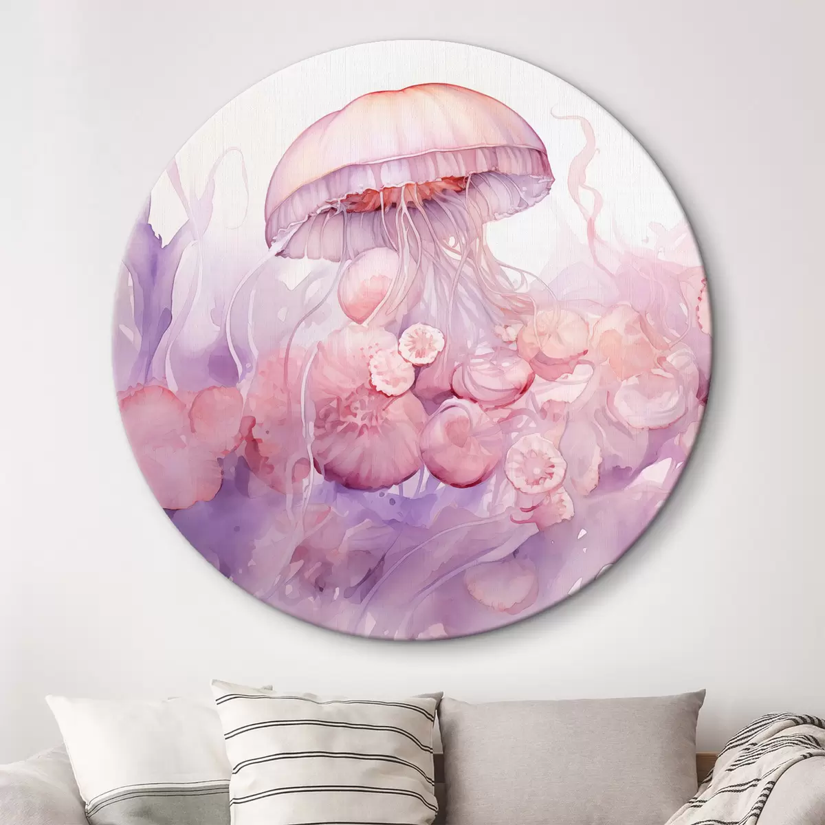 Nuotrauka Rausvos medūzos, plaukiojančios švelnių rausvų ir violetinių atspalvių sūkuryje, apsuptos abstrakčių formų Nr r42730