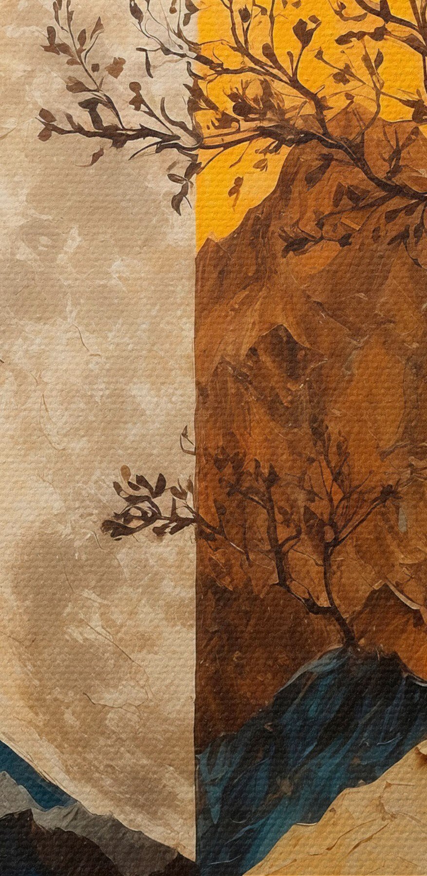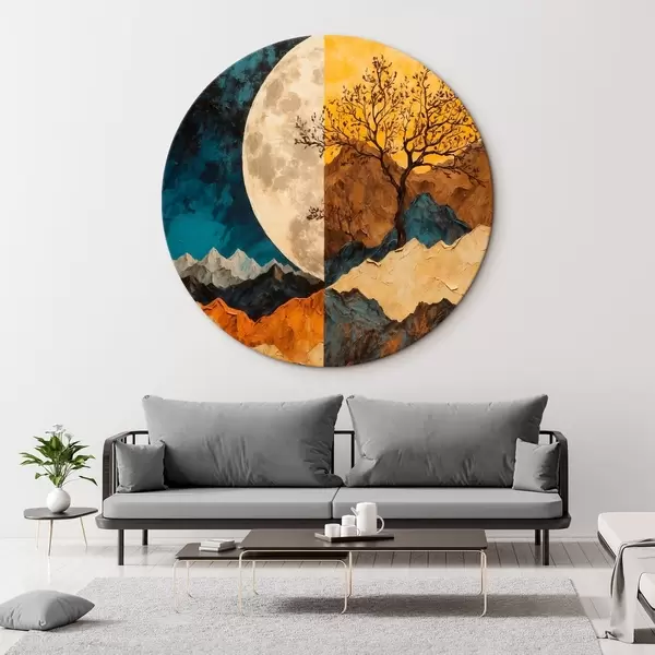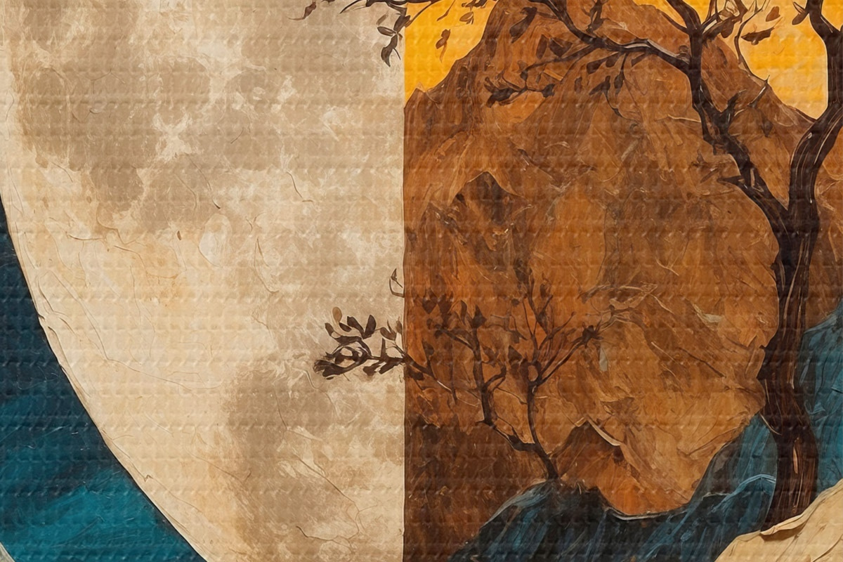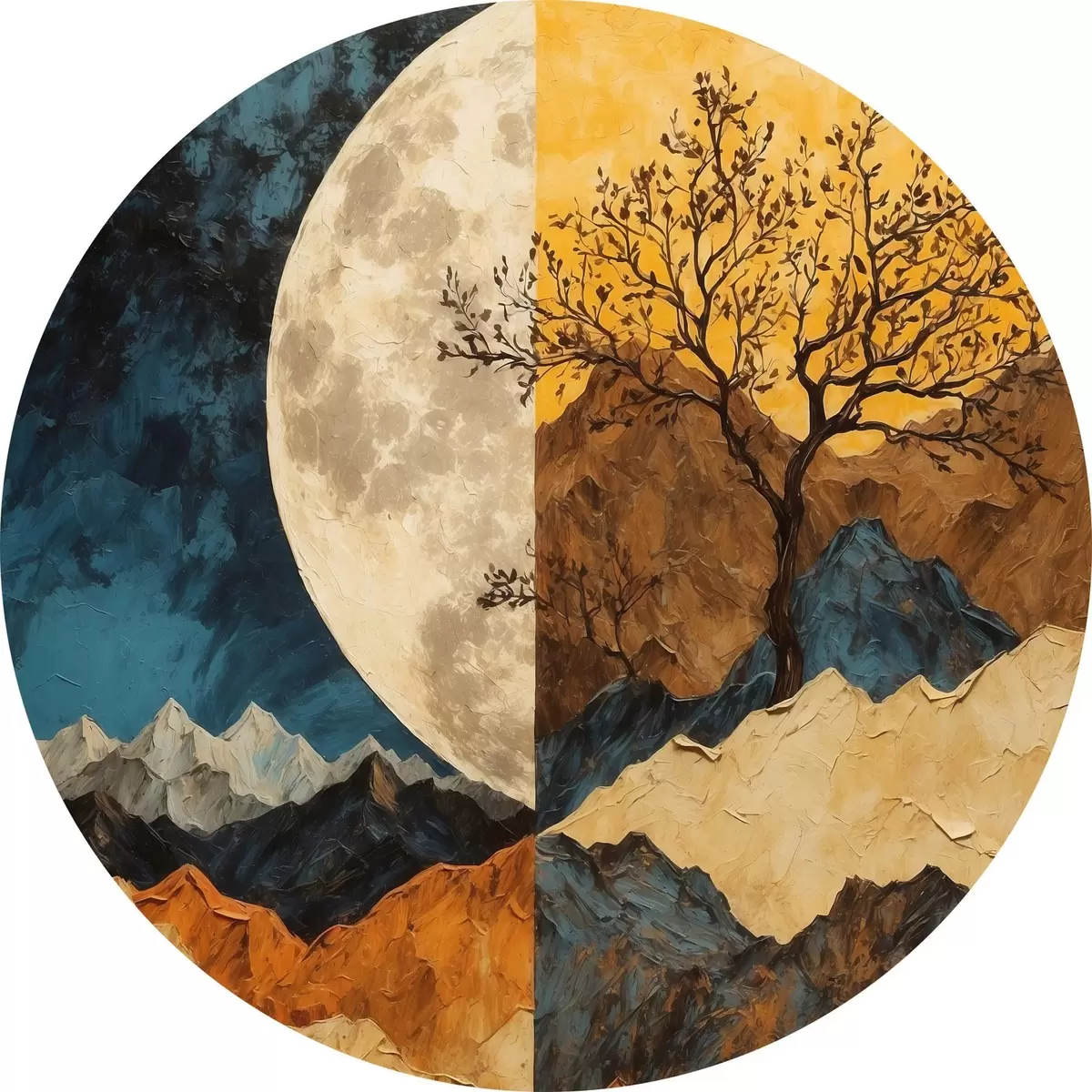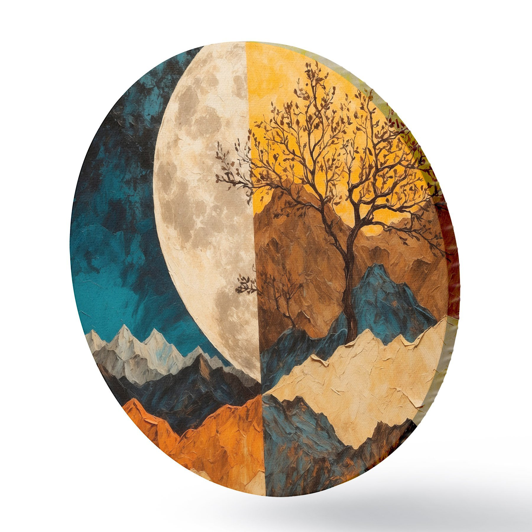 Nuotrauka Įvairiaspalviai kalnai mėnulio fone akrilo tapybos stiliumi Nr r42770