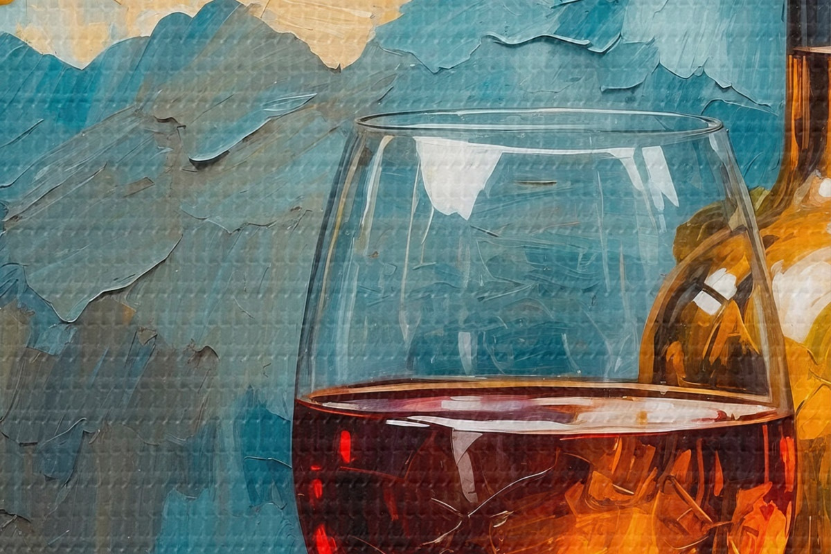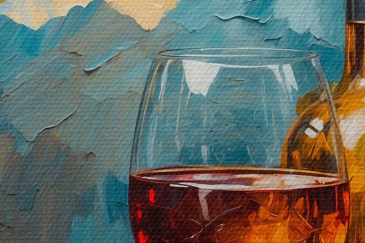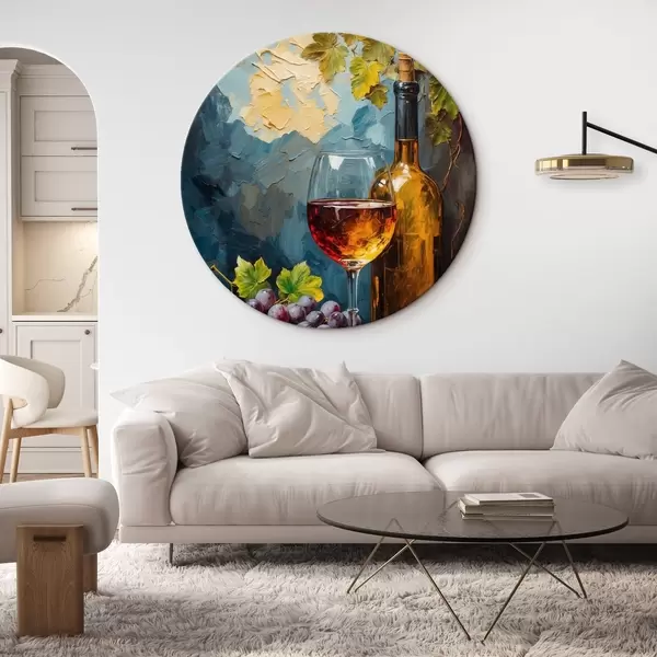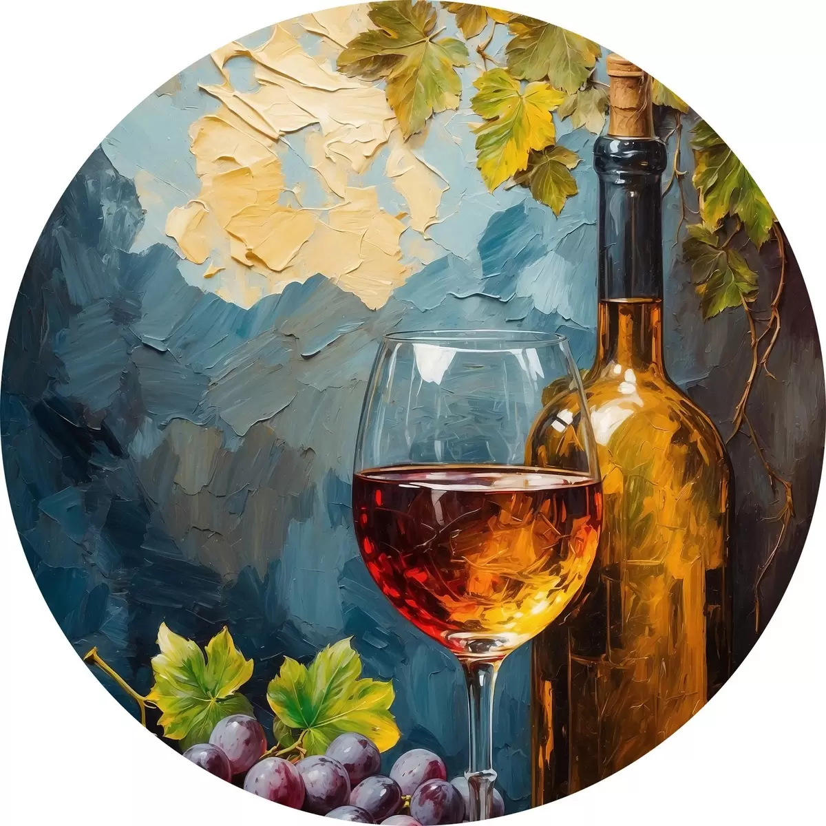 Nuotrauka Graperis, glarr ir vyno butelis ant abrtrakto akrilo fono Nr r42772