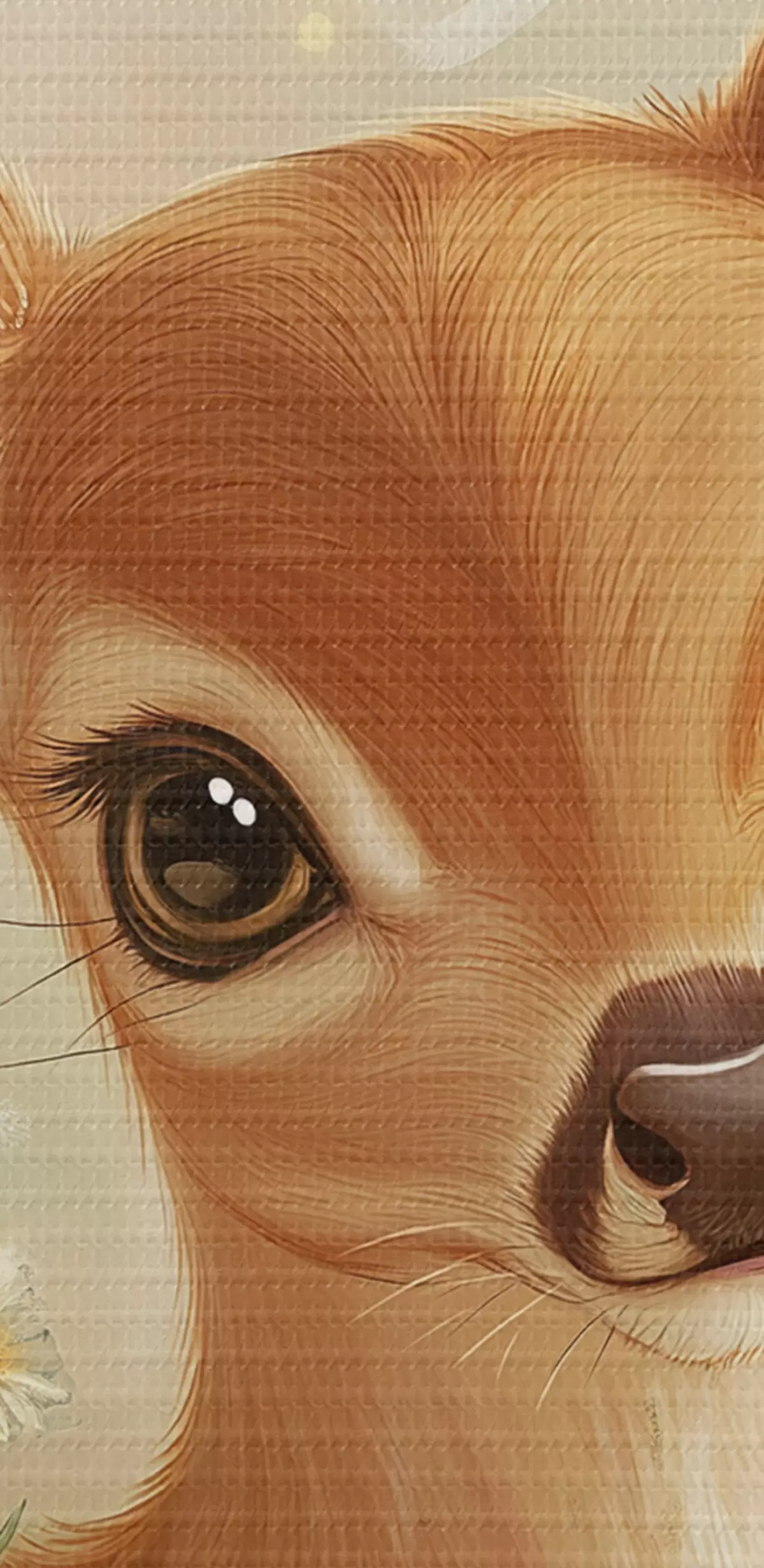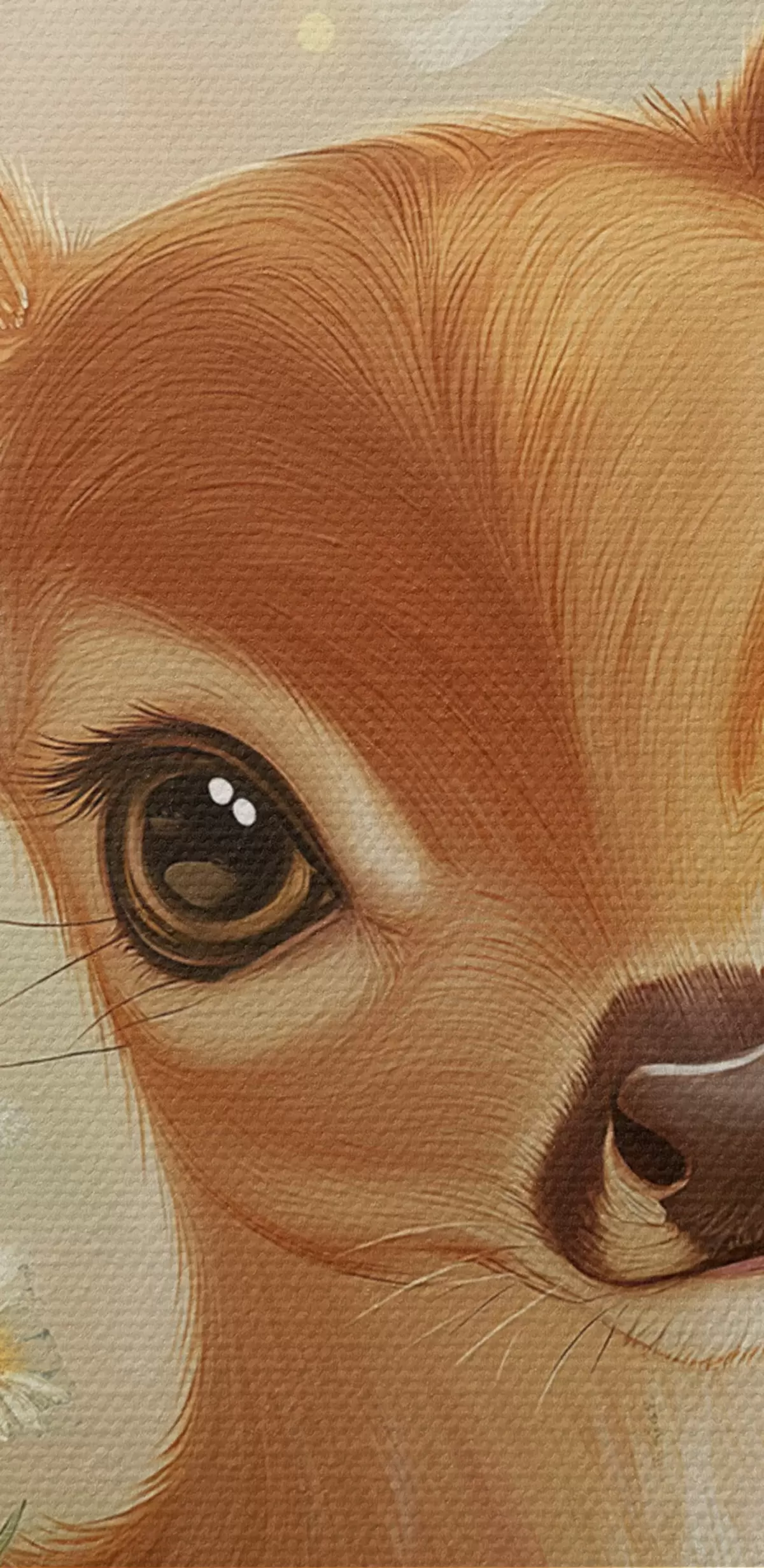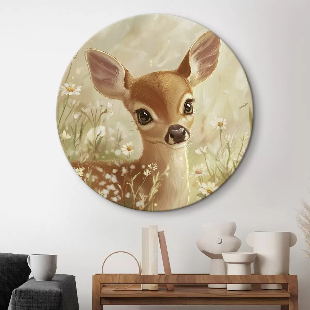 Nuotrauka Mielas elnias pievoje su margais žiedais, piešinys aliejiniais dažais Nr r42780