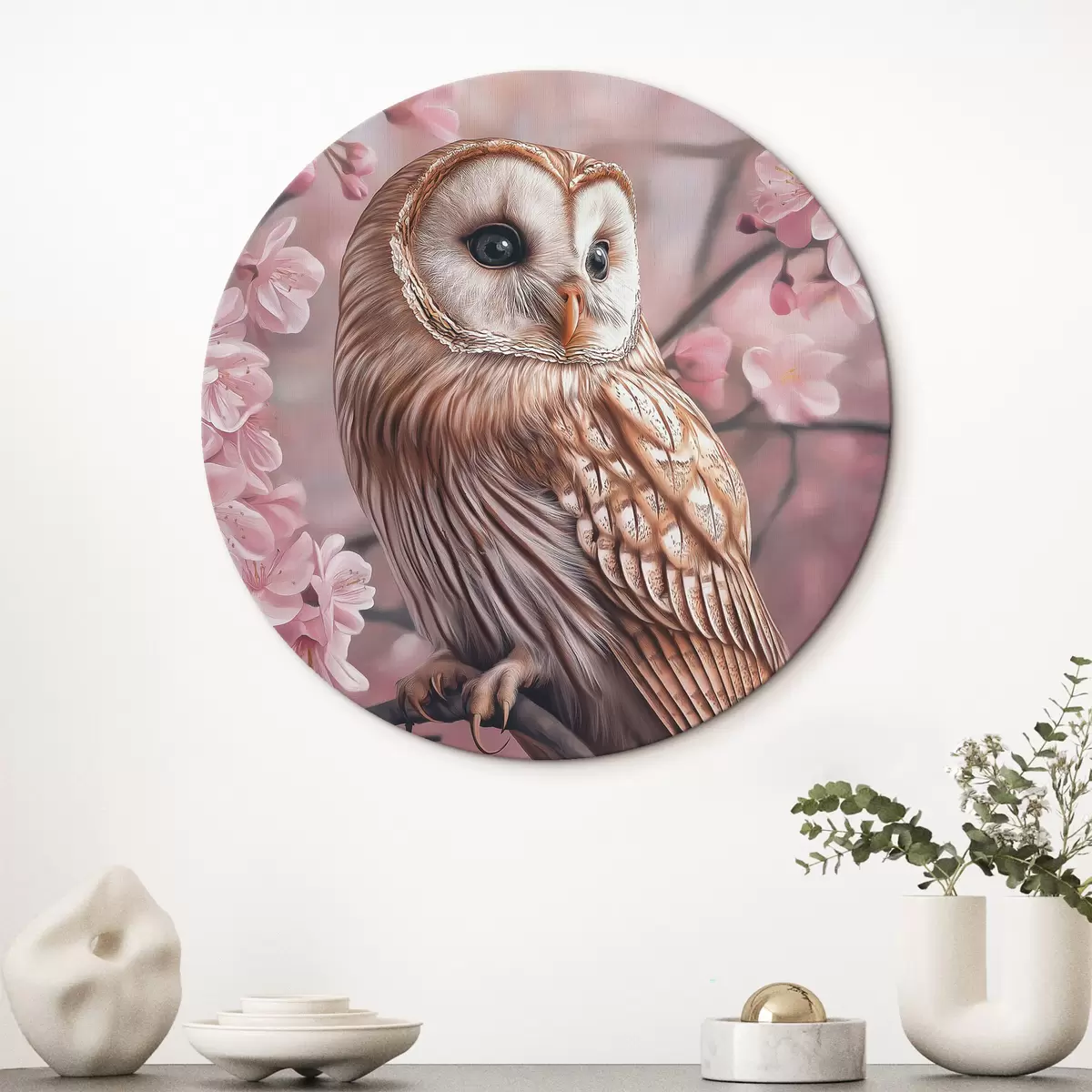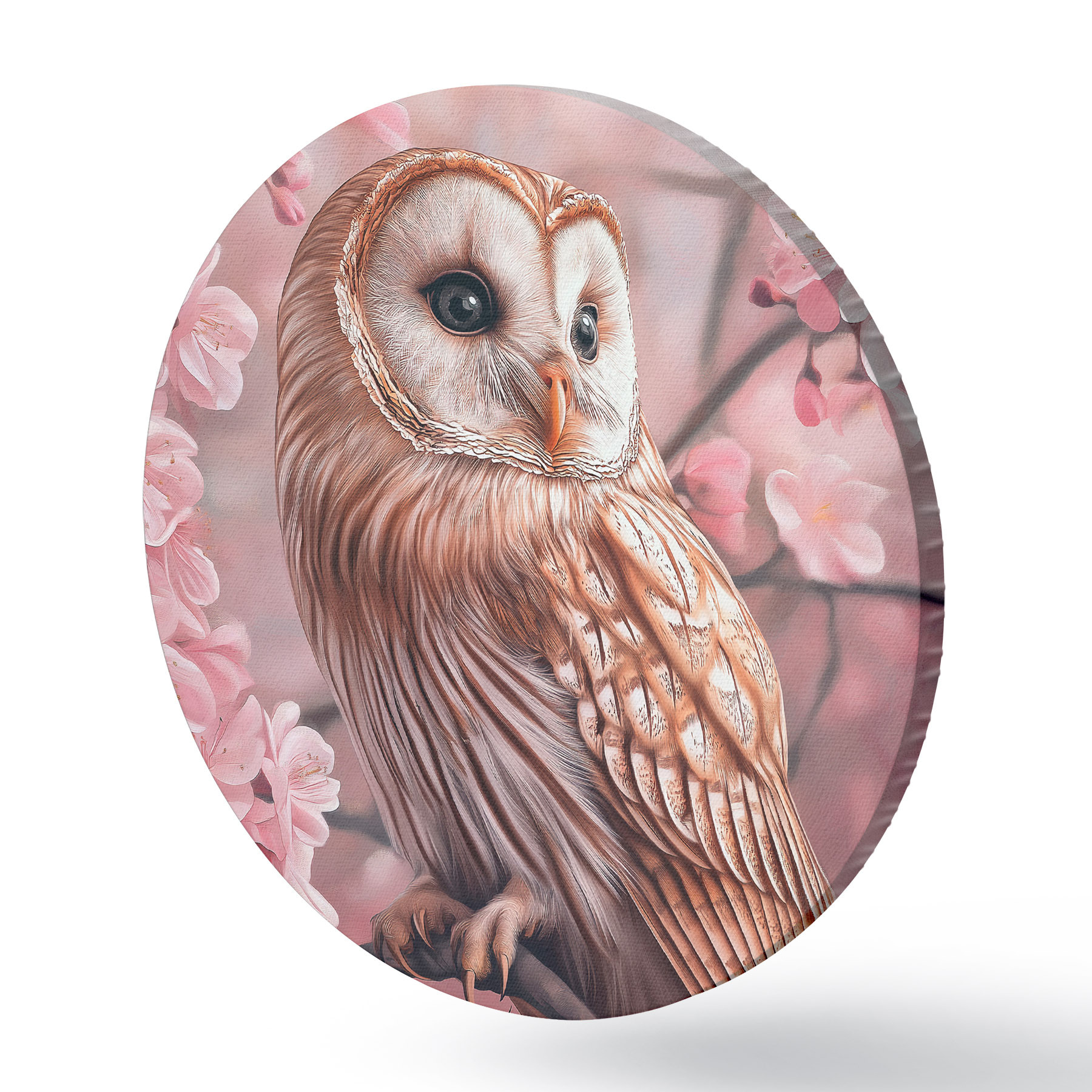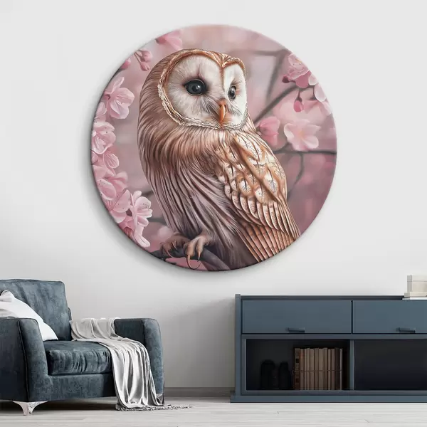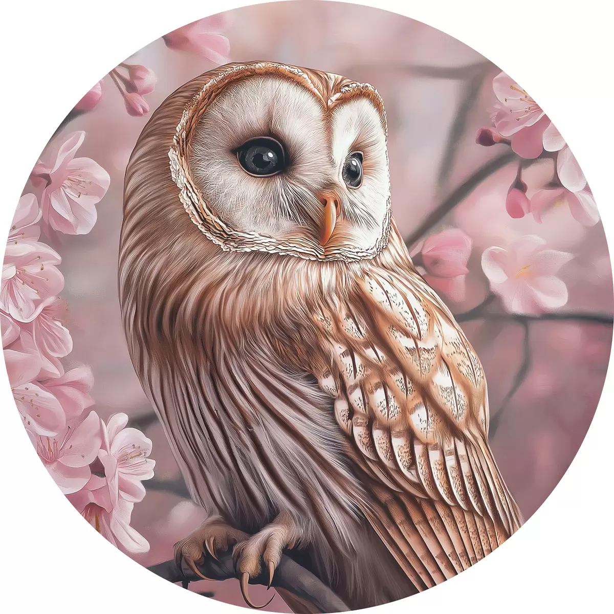 Nuotrauka Pelėda ant vyšnios, rožinės gėlės, realizmas, gamta Nr r42785