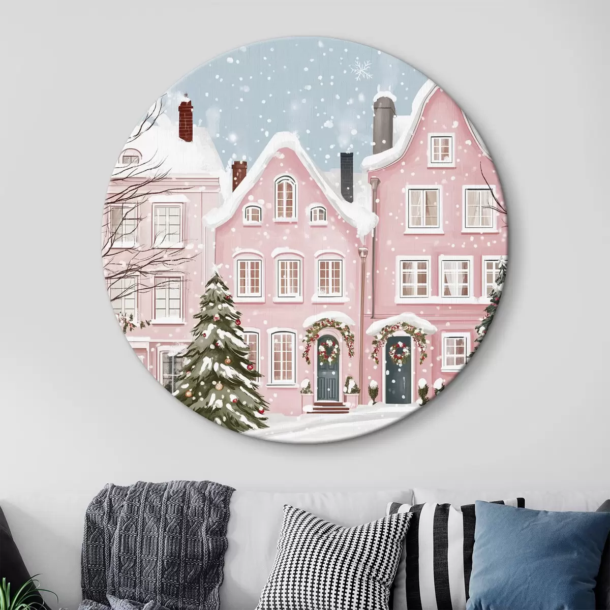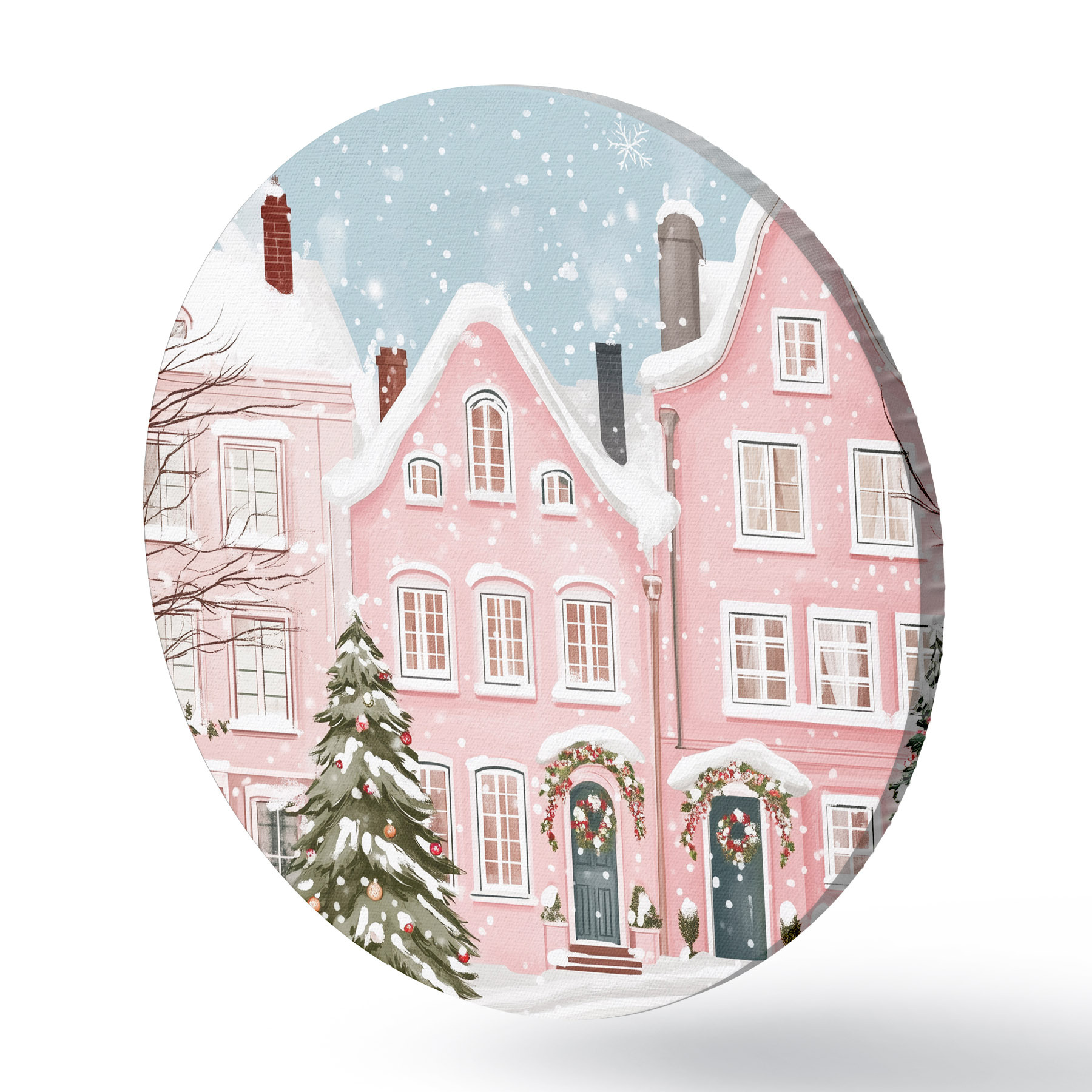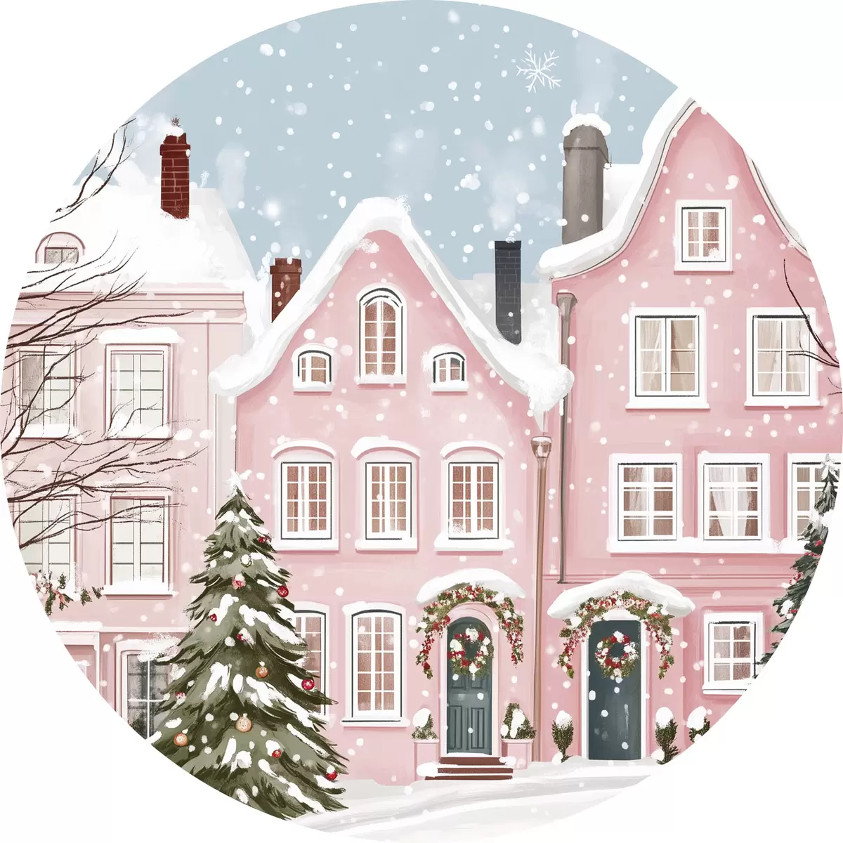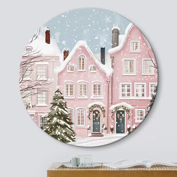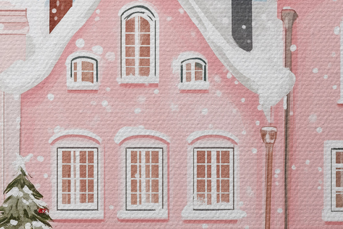 Nuotrauka Gražus miestelis su mielais rožiniais namukais, žiemos estetika, snaigėmis Nr r42793