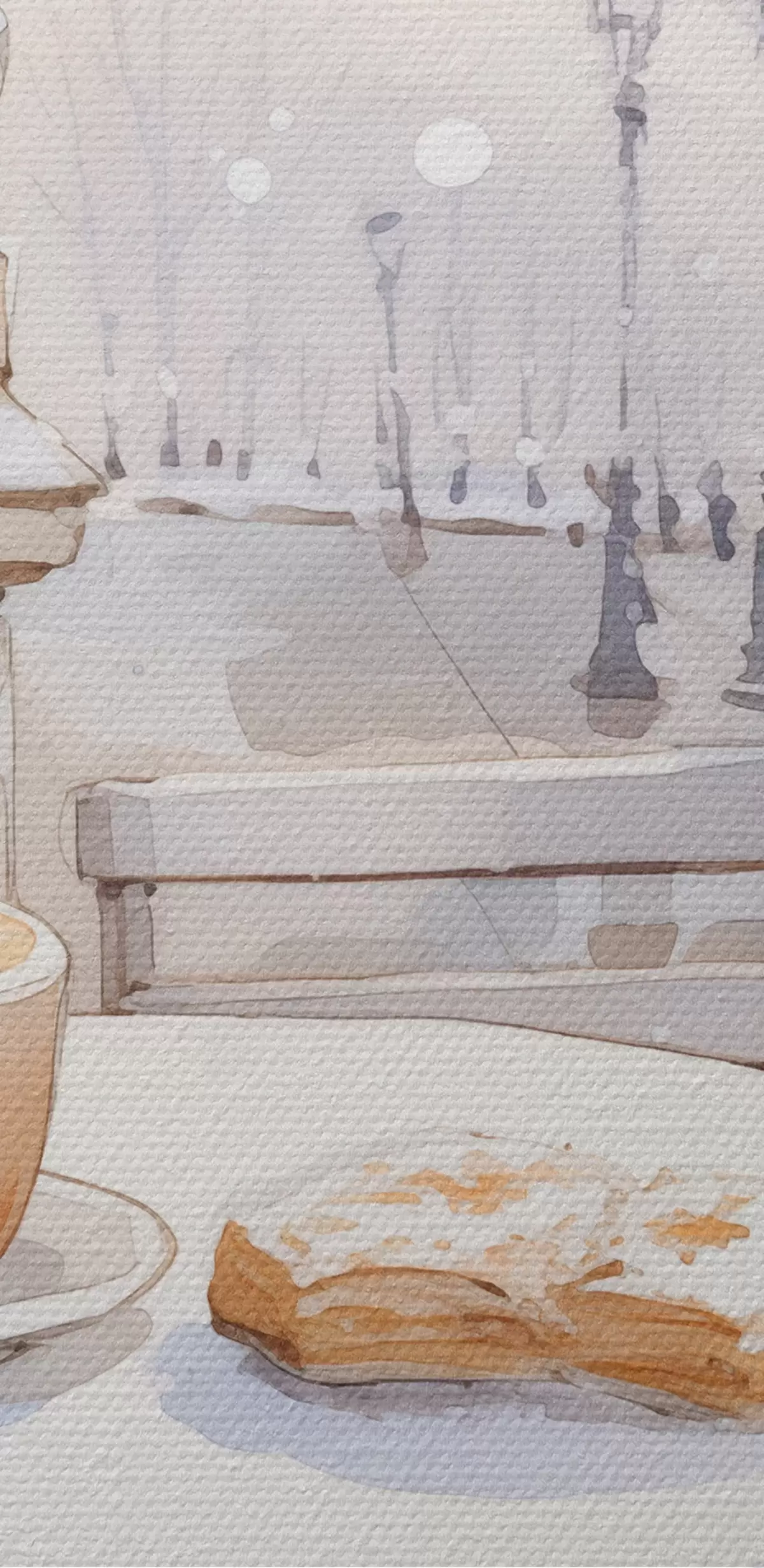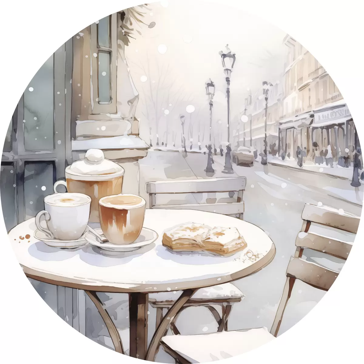 Nuotrauka Estetiška gatvės kavinė, Prancūzija, šviežia kepykla, akvarelės stiliaus piešinys Nr r42798