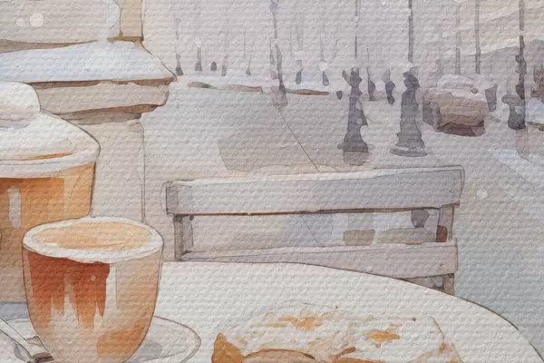 Nuotrauka Estetiška gatvės kavinė, Prancūzija, šviežia kepykla, akvarelės stiliaus piešinys Nr r42798