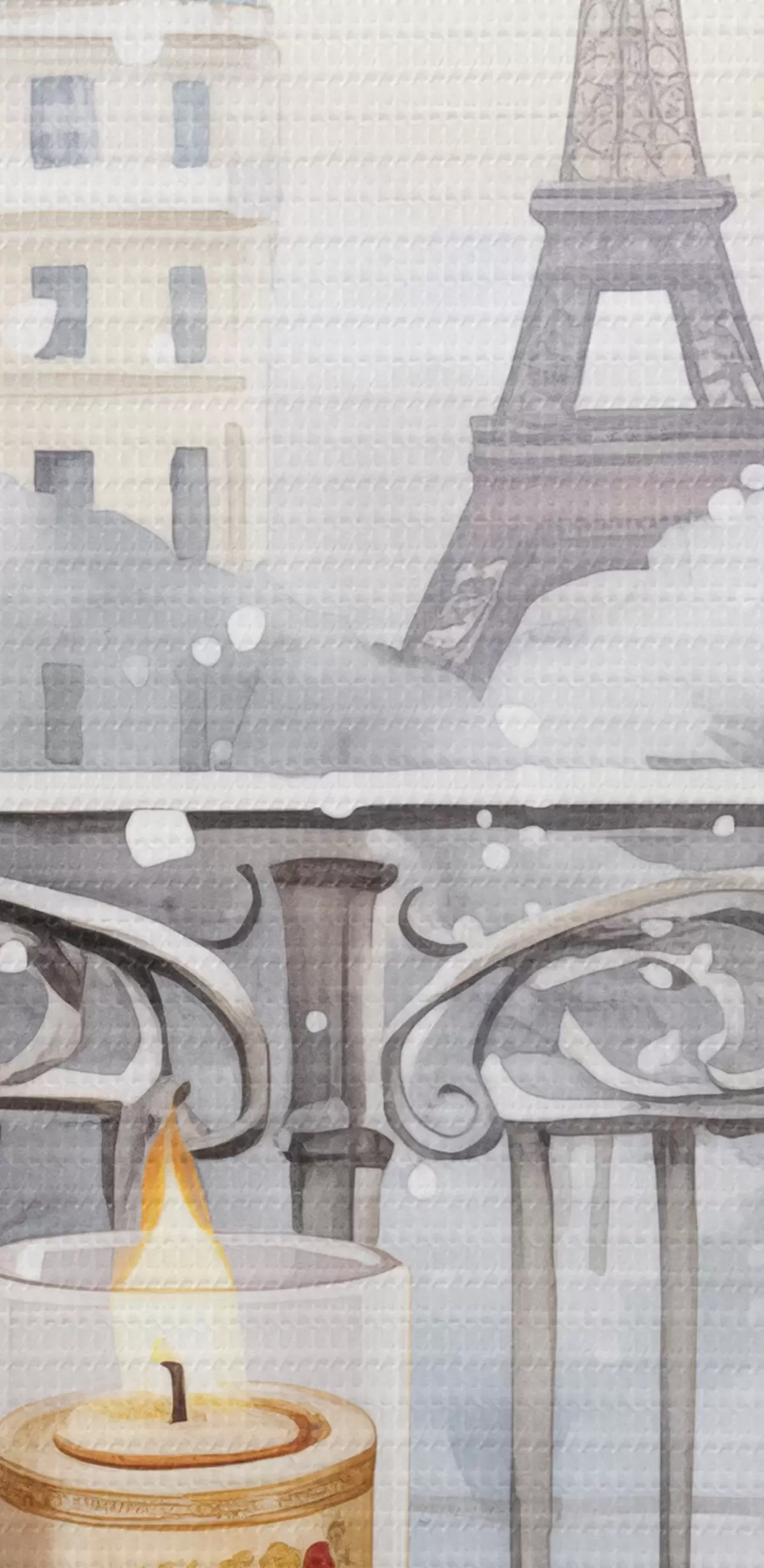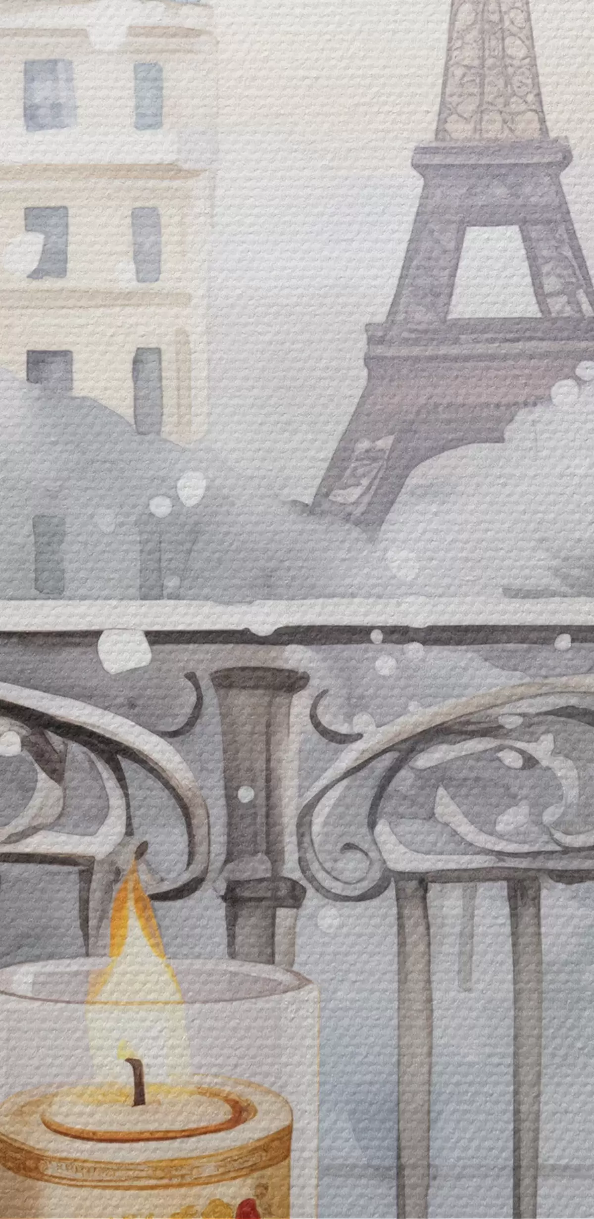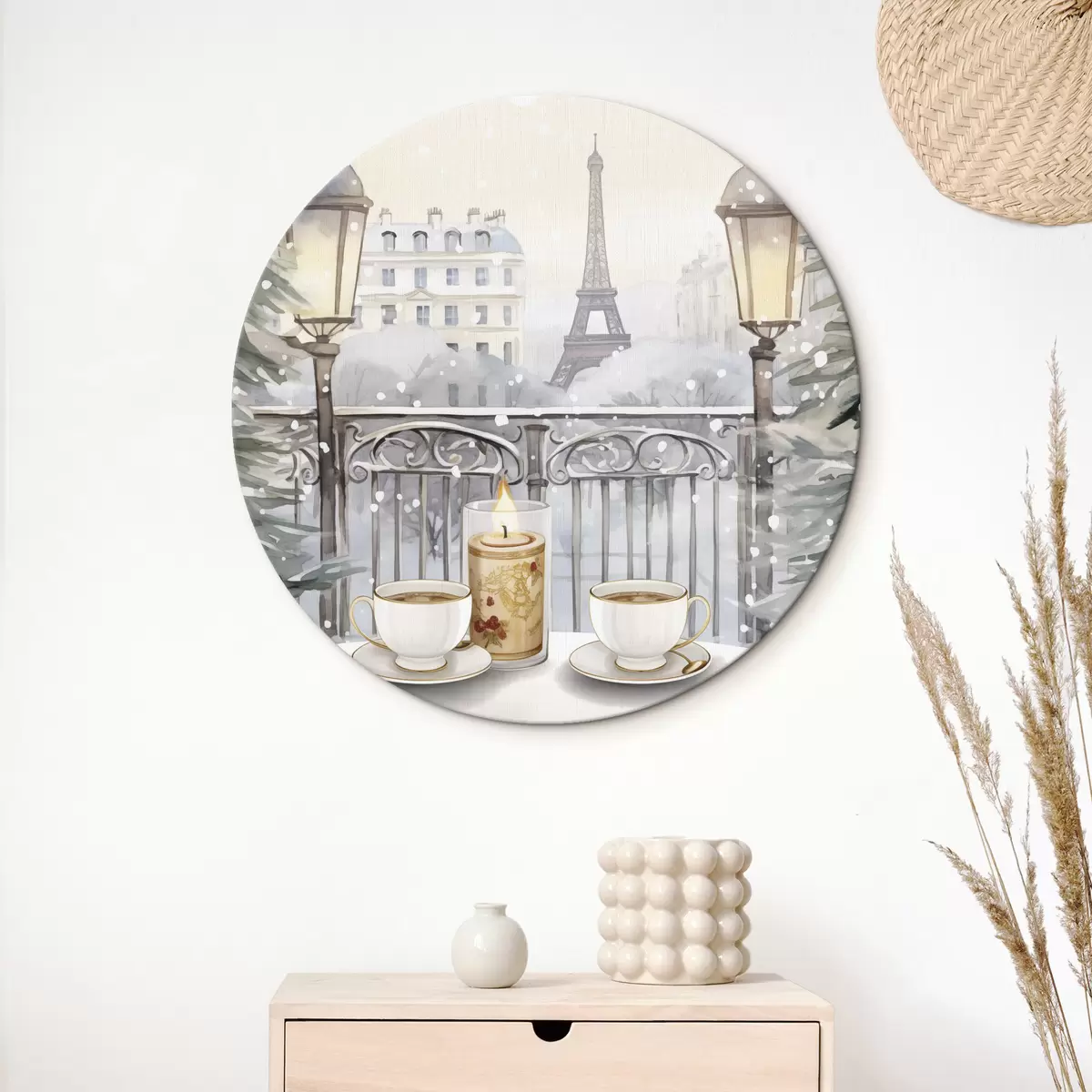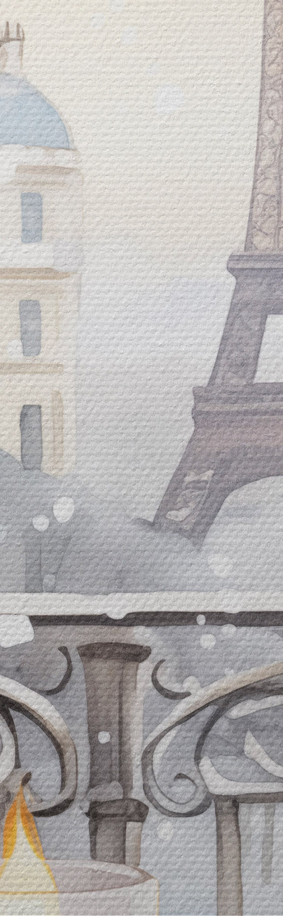 Nuotrauka Graži kavinė Paryžiuje, arbatos puodeliai, romantiškas vaizdas, žiema, akvarelės stilius Nr r42799