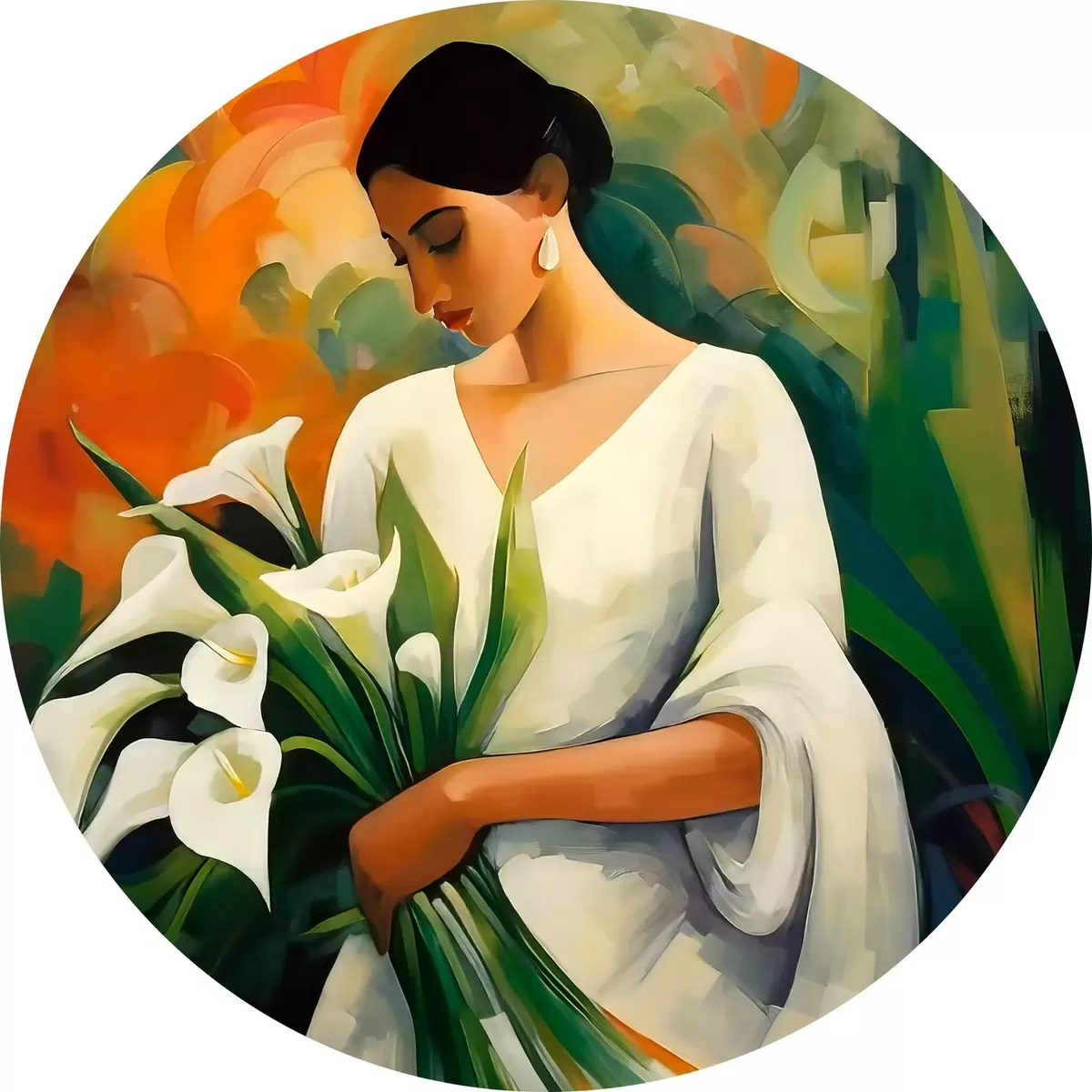 Nuotrauka Moteris su kalijų puokšte Nr r42818