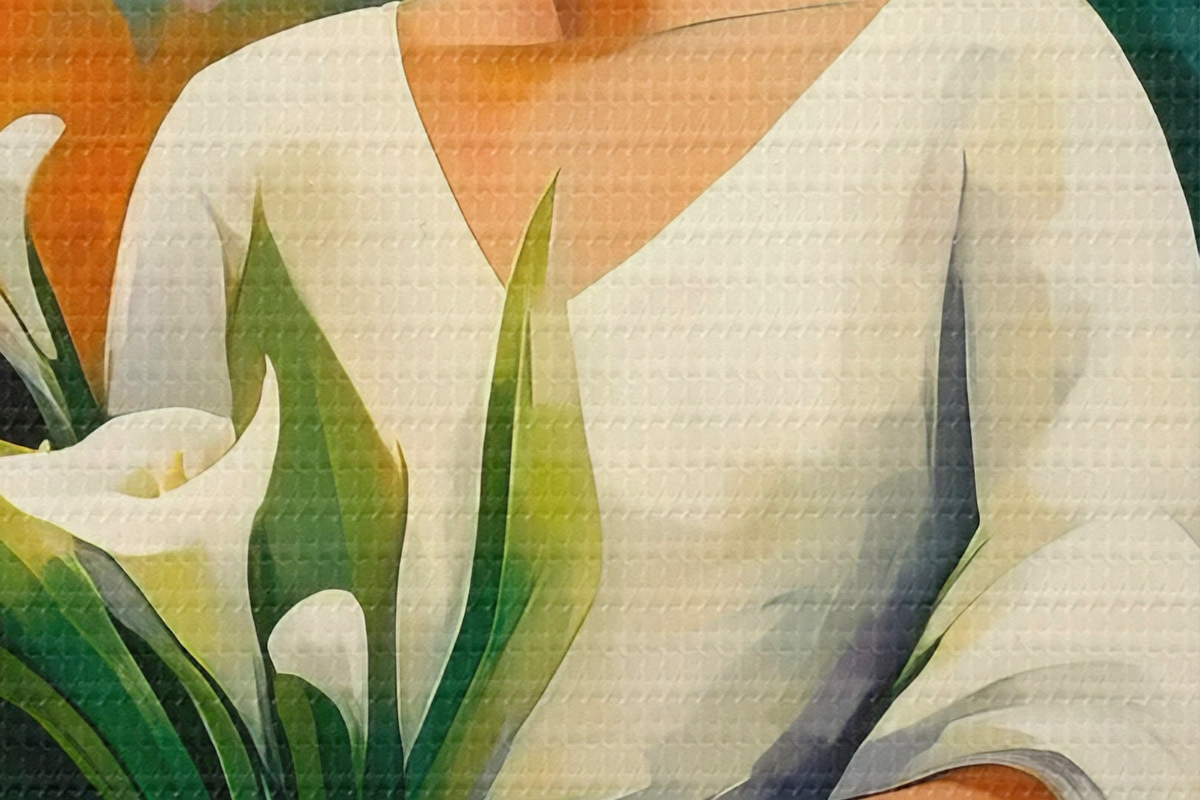 Galima užsakyti trijų rūšių medžiagą: "Economic Canvas" - tanki ir patvari medžiaga skaitmeninei spaudai, identiška dailininko drobės medžiagai, vandeniui atsparus paviršius, tikroviškas detalių atkūrimas, vidutinio grūdėtumo medžiaga. Premium Canvas - tekstūra primena dailininko drobę (susipynę smulkūs siūlai). Minkštas, detalus vaizdo atkūrimas ant matinio paviršiaus. Eco-Premium - aukštos kokybės 100 % medvilninis audinys. Dėl natūralių medvilnės pluoštų medžiaga yra patvari ir atspari nusidėvėjimui. Puikus spalvų atkūrimas ir detalumas.