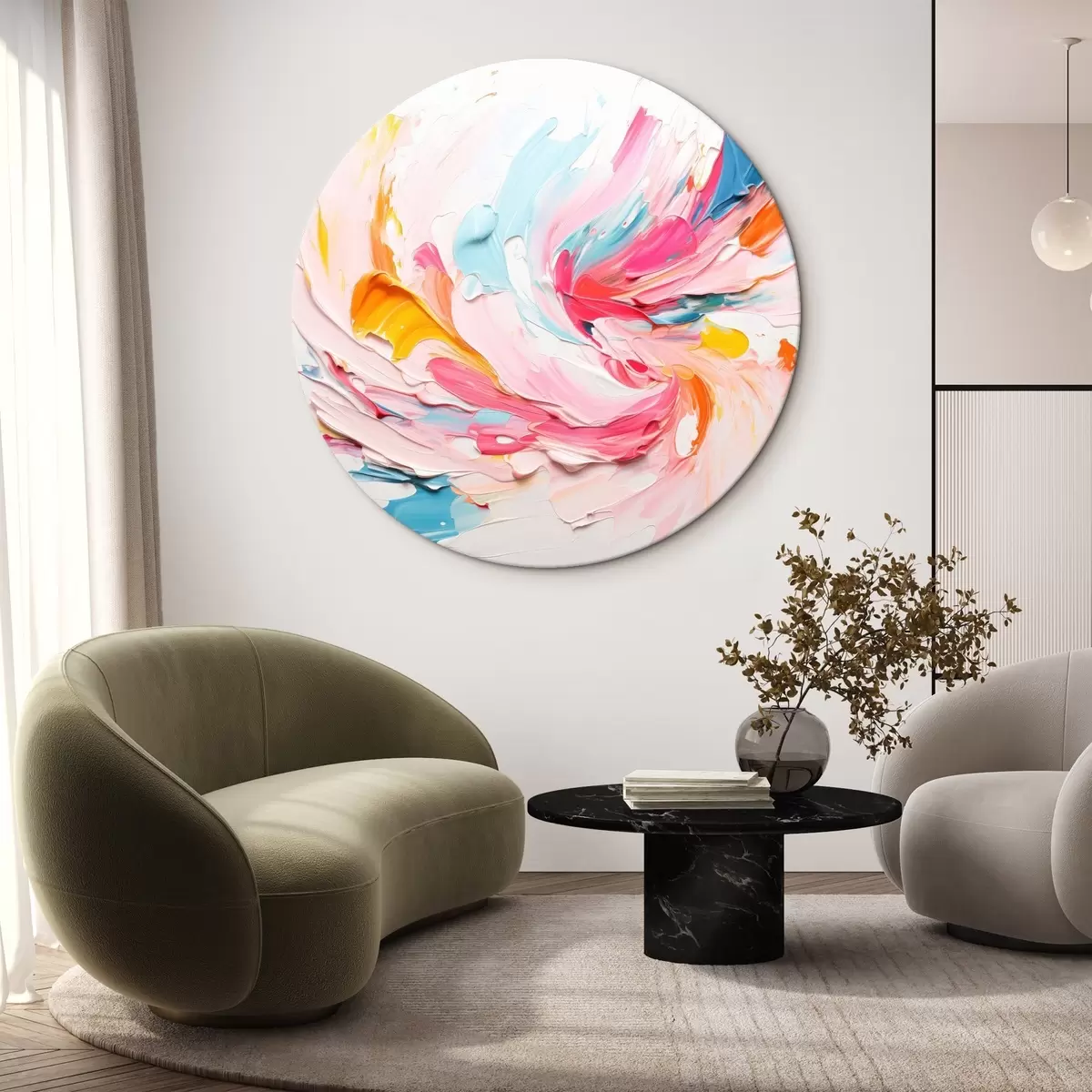 Paveikslą galima pakabinti iš karto jį gavus. Paveikslas bus ištemptas ant 2 cm pločio medinių neštuvų.