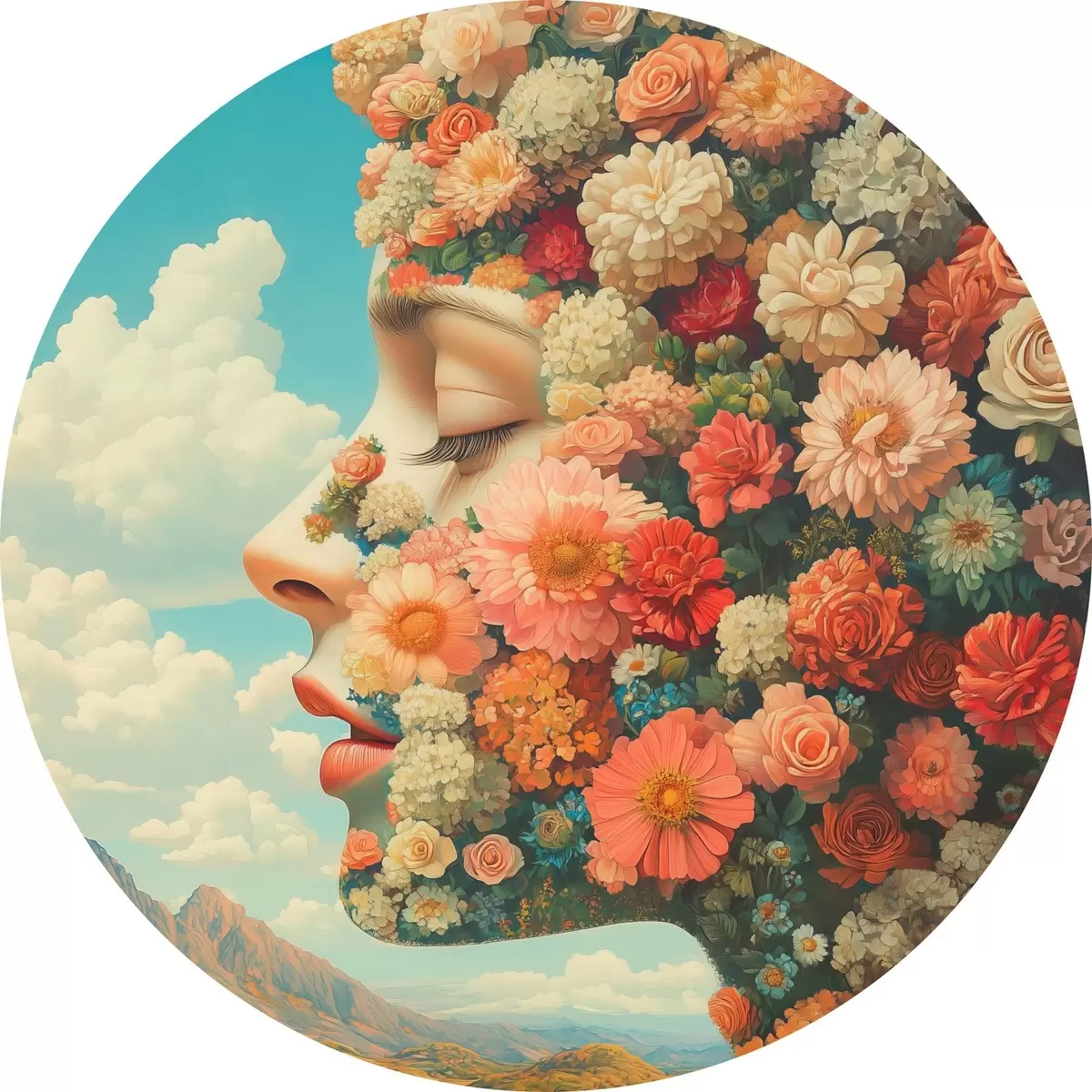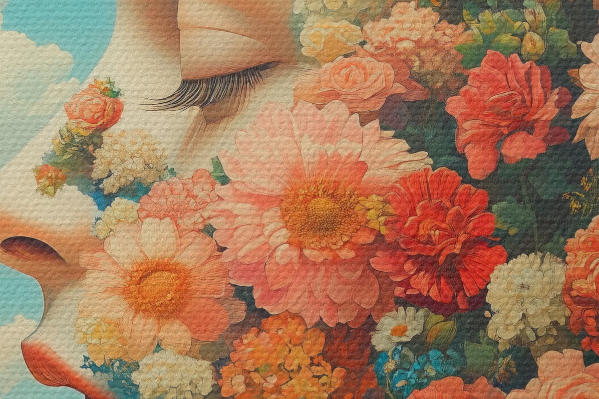 Nuotrauka Veidas iš profilio su gėlėmis Nr r42861