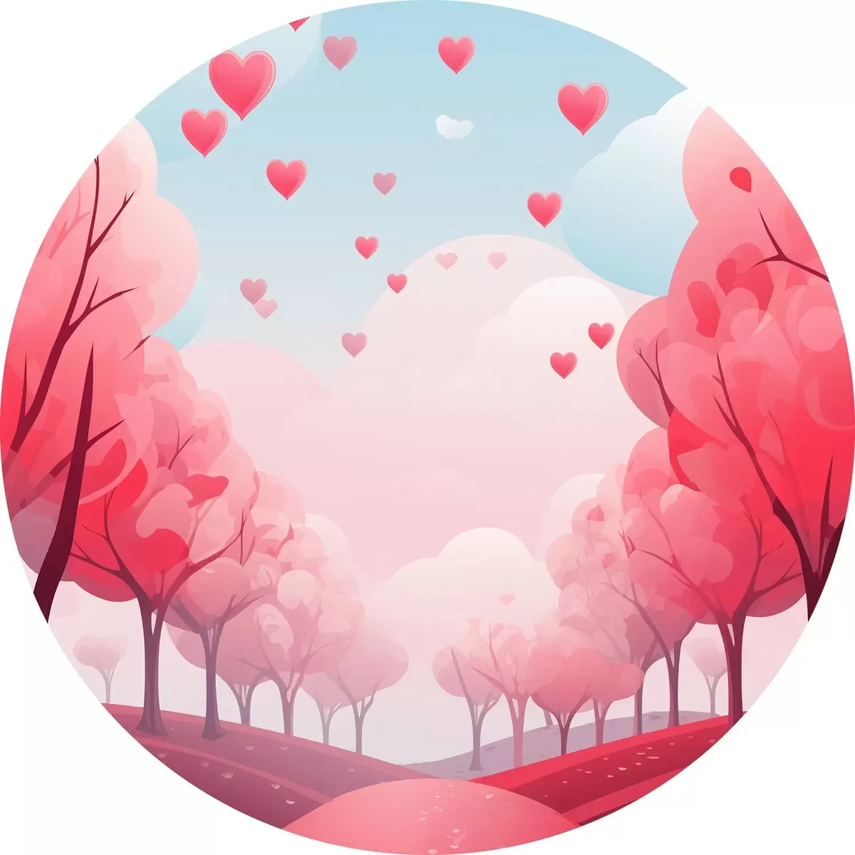 Nuotrauka Meilės alėja, rožiniai medžiai ir širdys Nr r42876