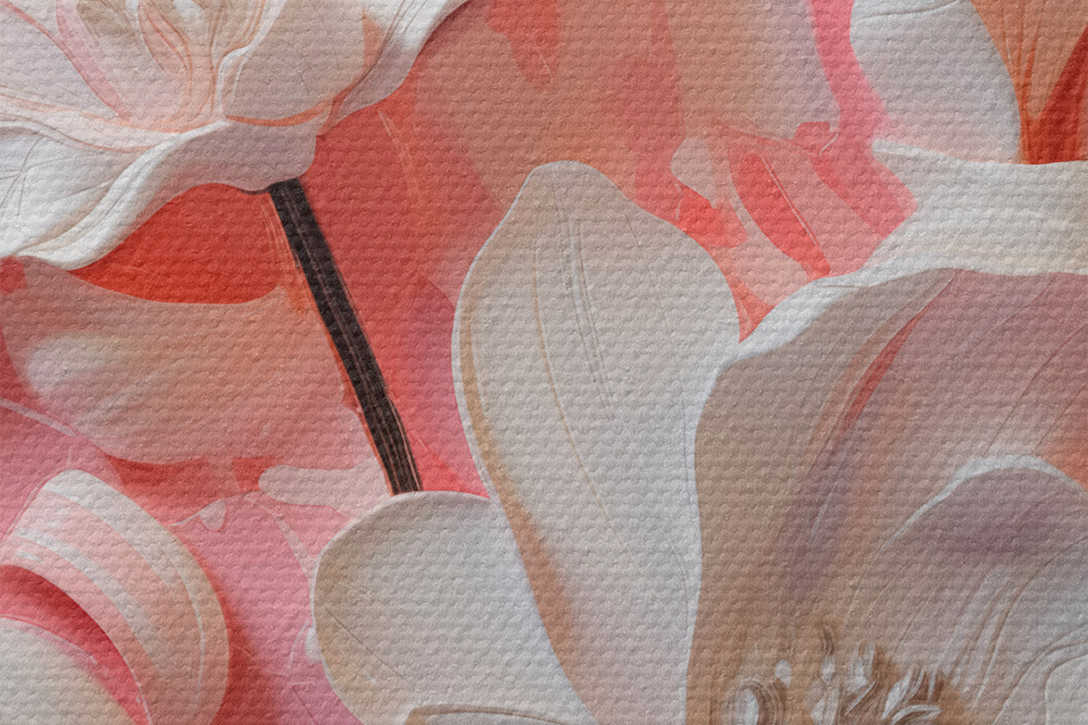 Galima užsakyti trijų rūšių medžiagą: "Economic Canvas" - tanki ir patvari medžiaga skaitmeninei spaudai, identiška dailininko drobės medžiagai, vandeniui atsparus paviršius, tikroviškas detalių atkūrimas, vidutinio grūdėtumo medžiaga. Premium Canvas - tekstūra primena dailininko drobę (susipynę smulkūs siūlai). Minkštas, detalus vaizdo atkūrimas ant matinio paviršiaus. Eco-Premium - aukštos kokybės 100 % medvilninis audinys. Dėl natūralių medvilnės pluoštų medžiaga yra patvari ir atspari nusidėvėjimui. Puikus spalvų atkūrimas ir detalumas.