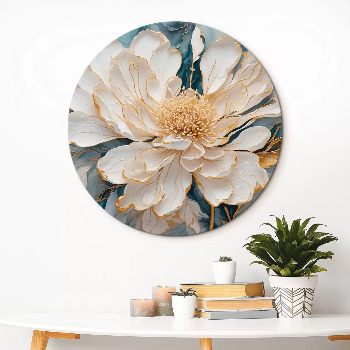 Nuotrauka Balta gėlė su kontūrais mėlyname ir baltame fone Nr r42923